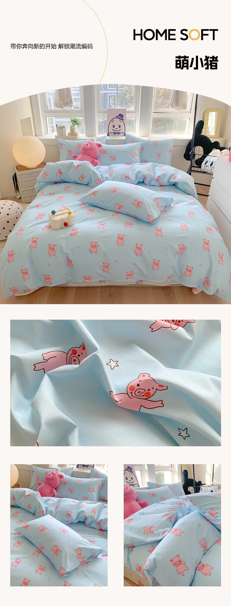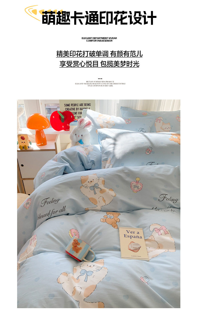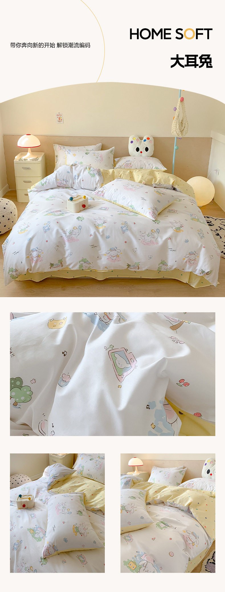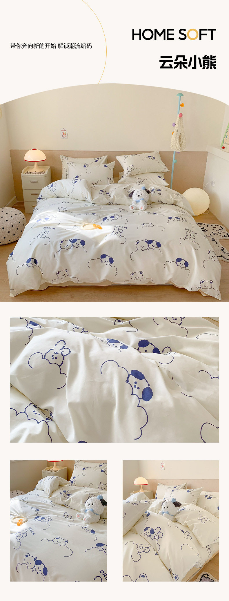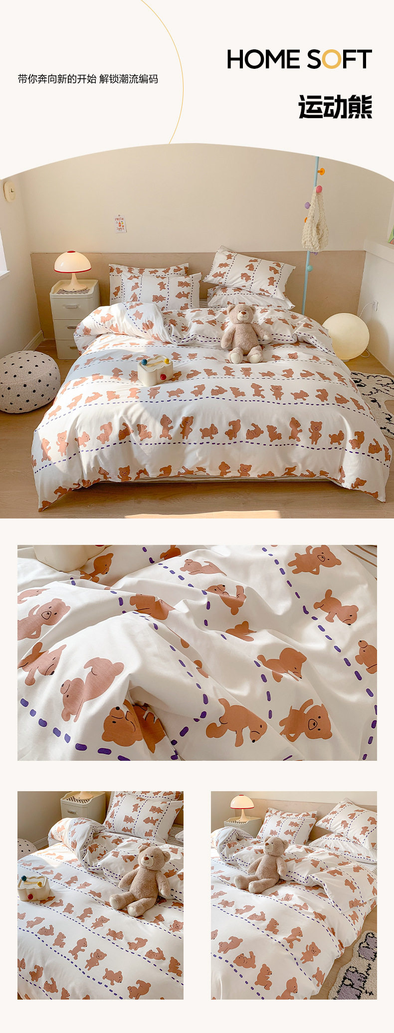2025 Spring All-Cotton Four-Piece Set with Cartoon Print, Pure Cotton Bedding Set, Duvet Cover, Bed Sheet for 1.2m Bed, Three-Piece Set Wholesale