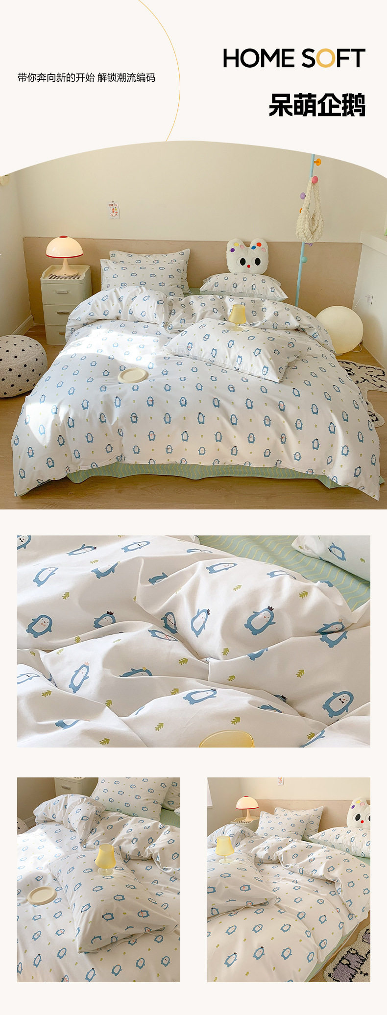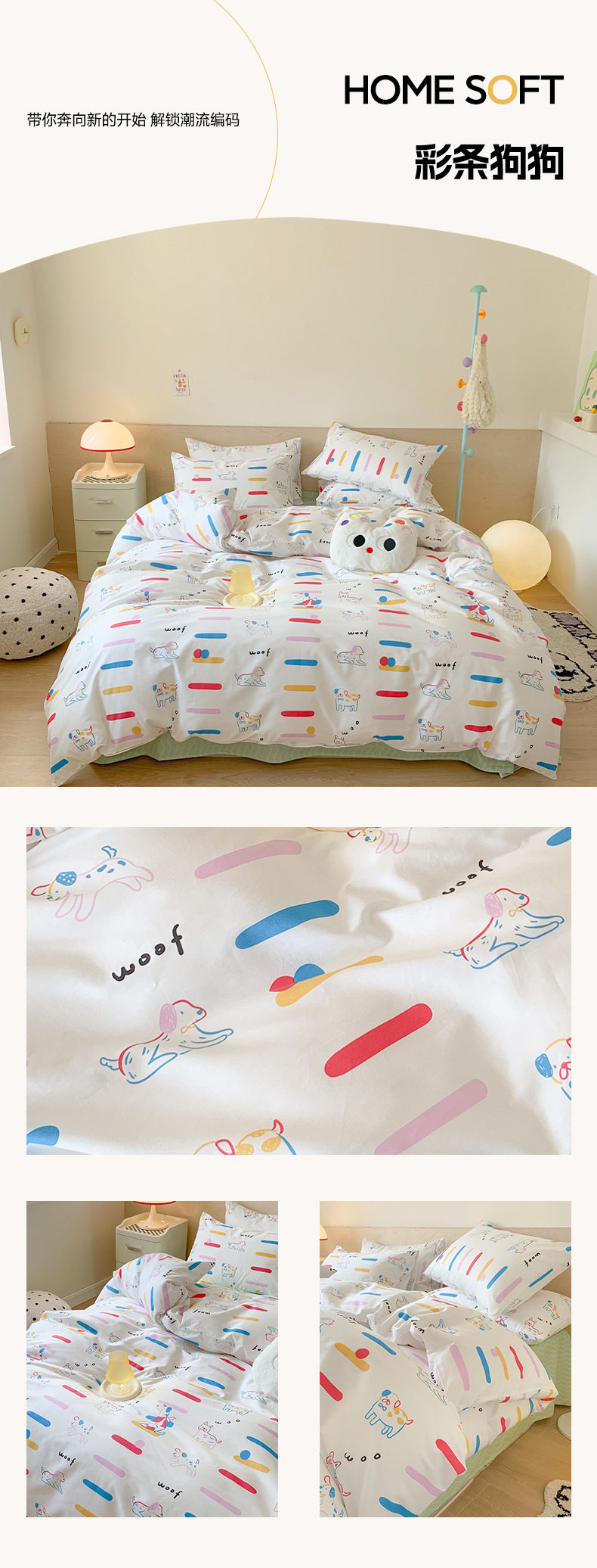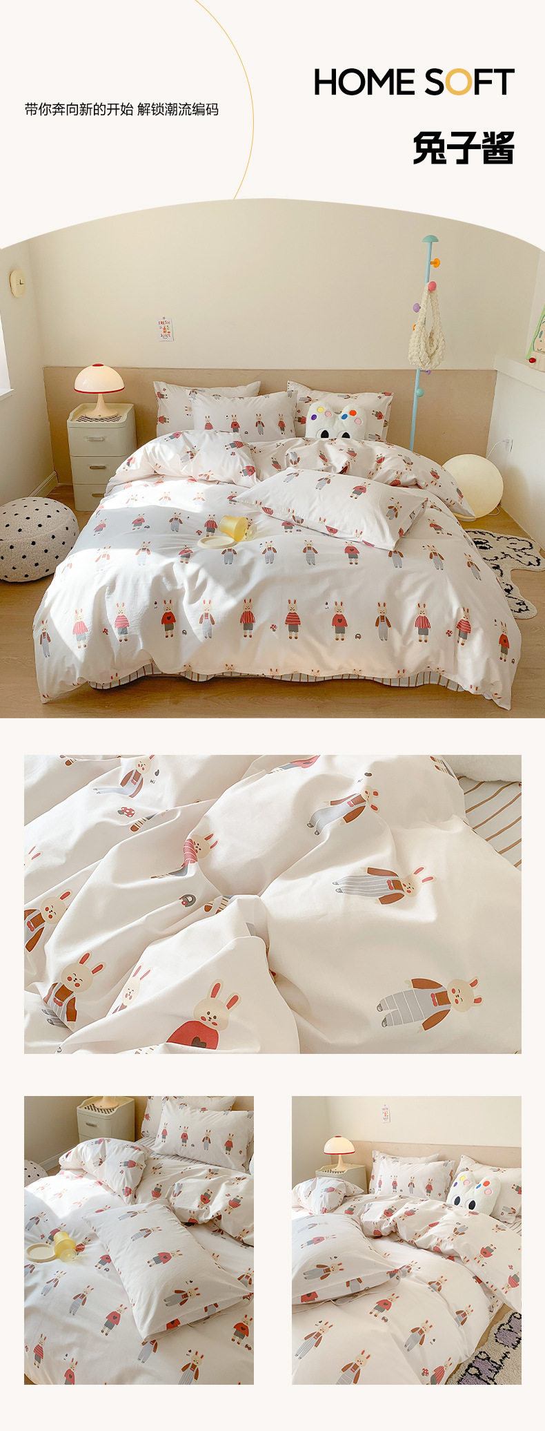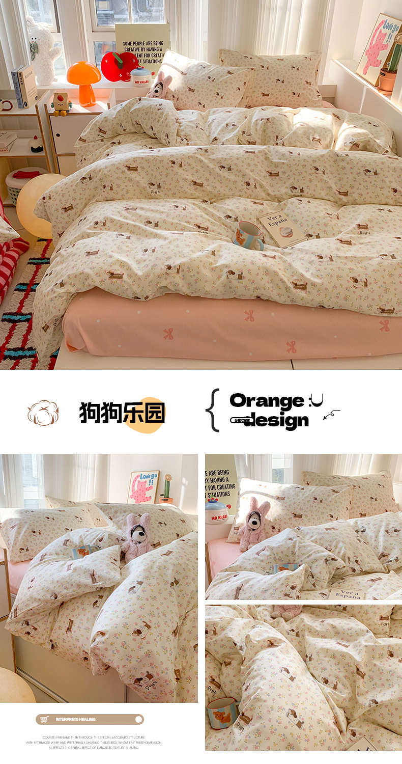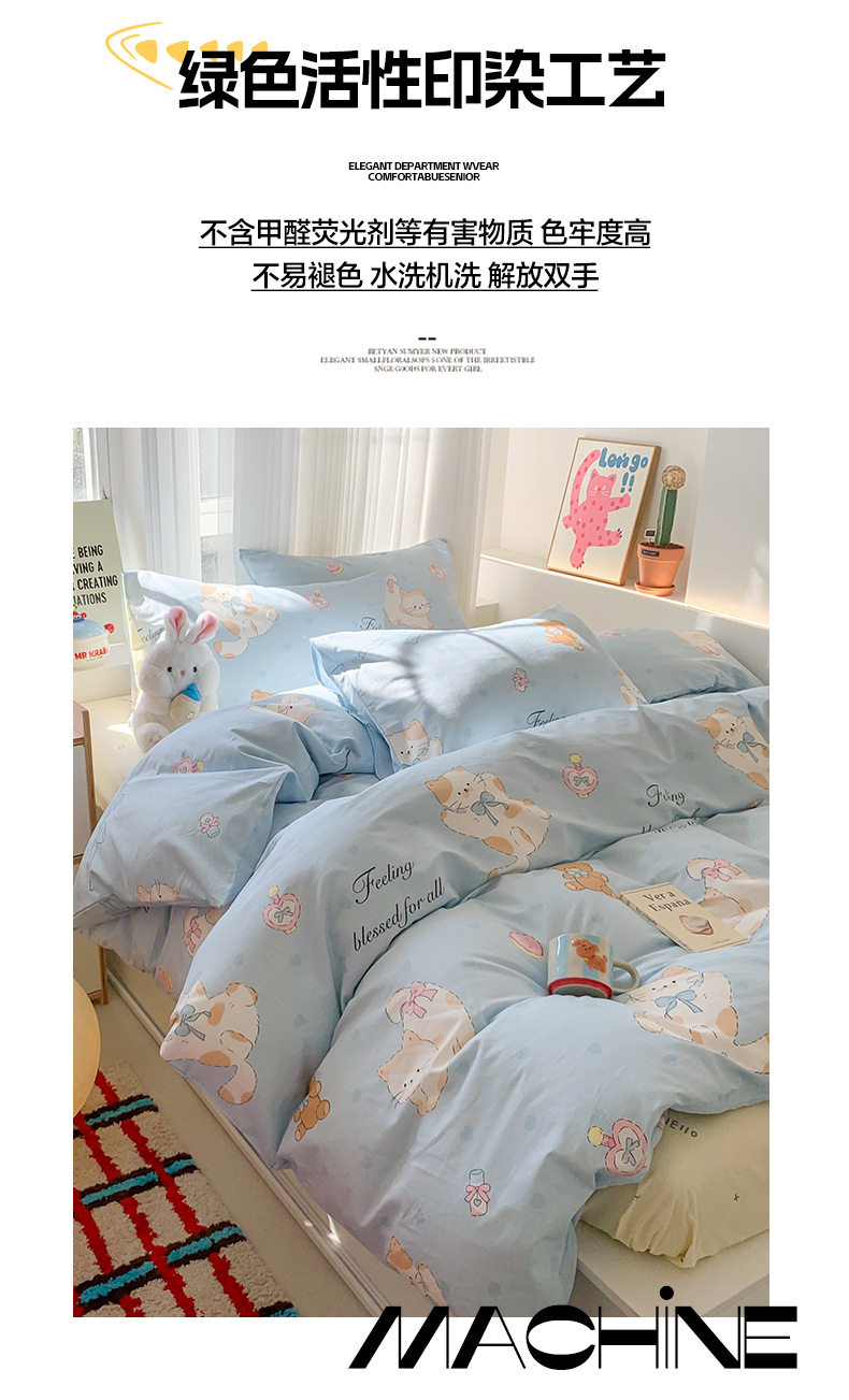 2025 Spring All-Cotton Four-Piece Set with Cartoon Print, Pure Cotton Bedding Set, Duvet Cover, Bed Sheet for 1.2m Bed, Three-Piece Set Wholesale