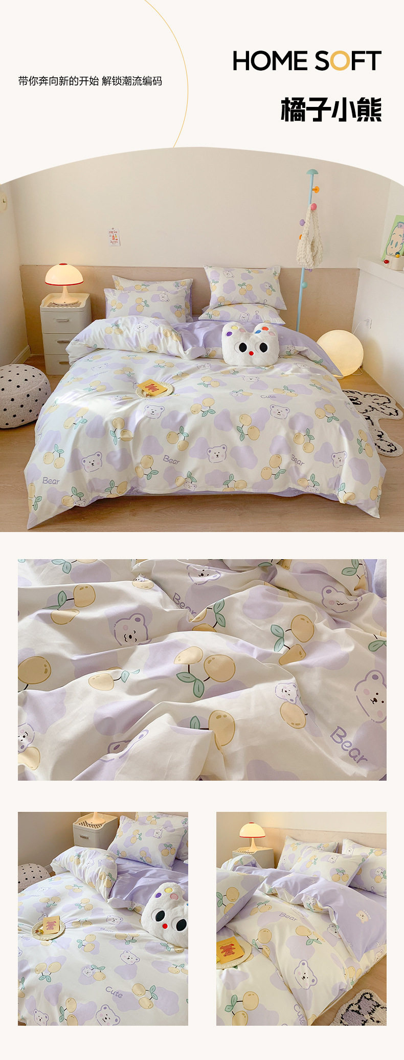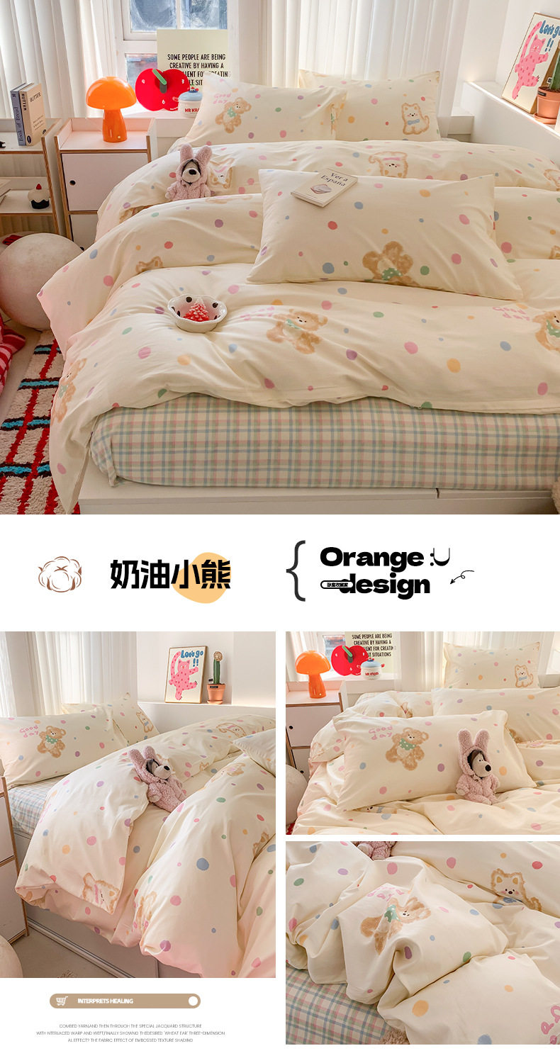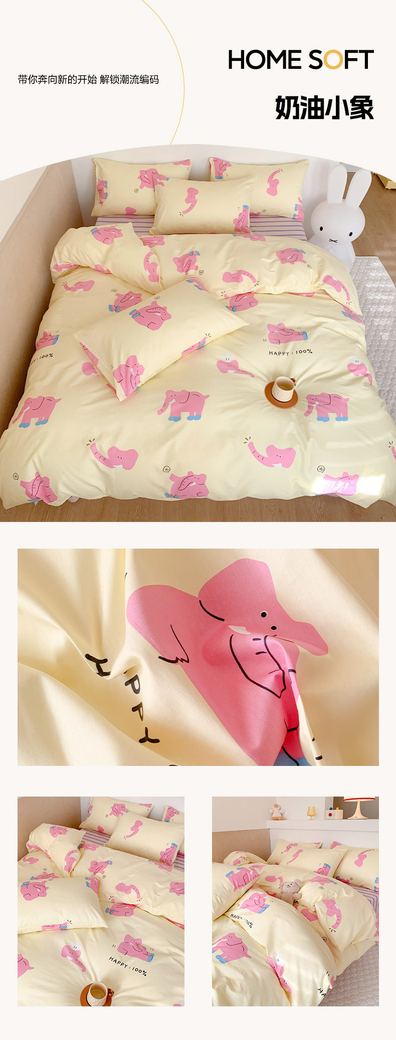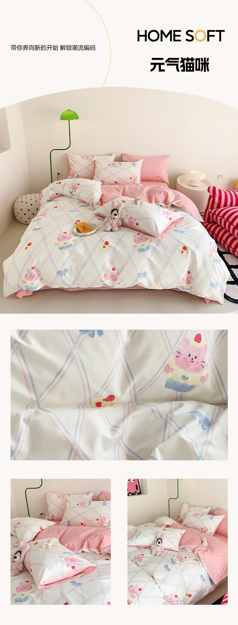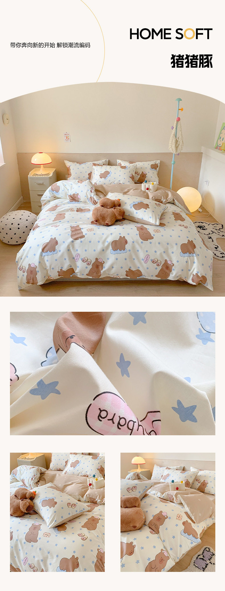 2025 Spring All-Cotton Four-Piece Set with Cartoon Print, Pure Cotton Bedding Set, Duvet Cover, Bed Sheet for 1.2m Bed, Three-Piece Set Wholesale