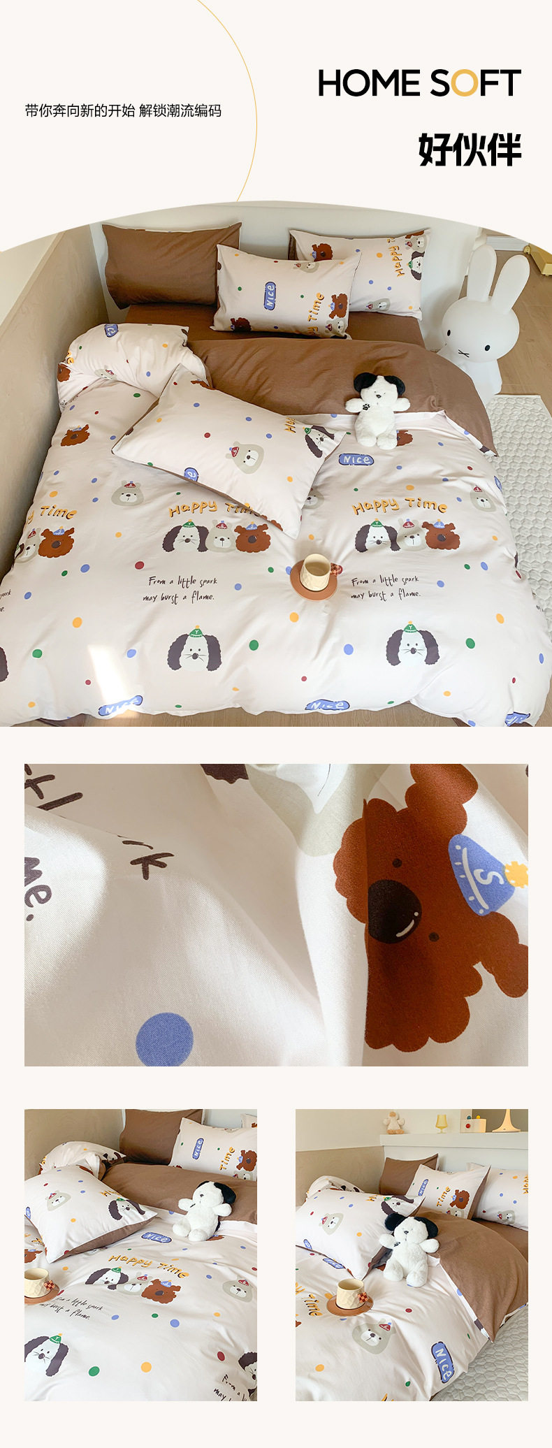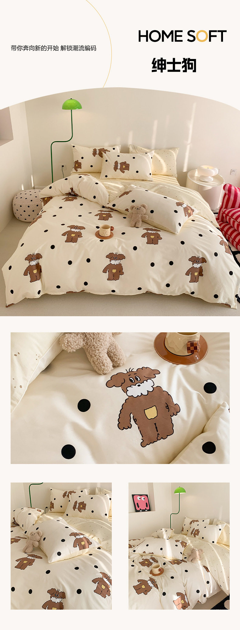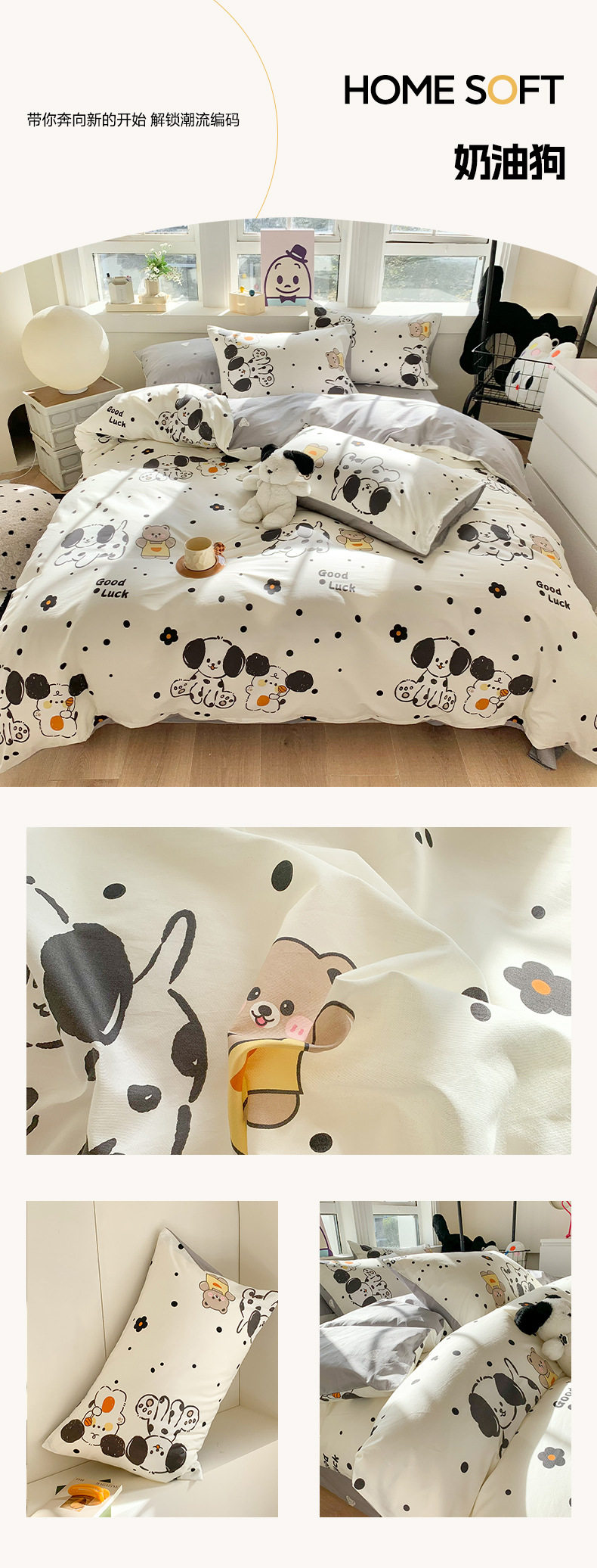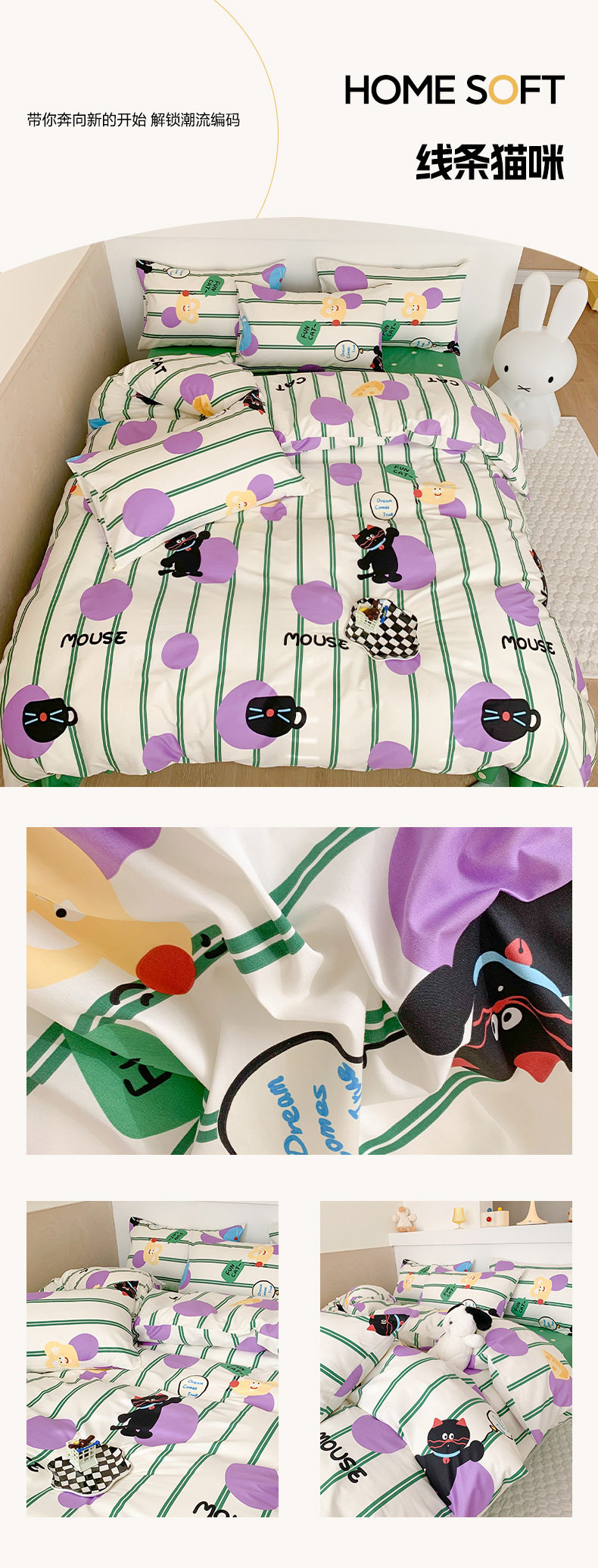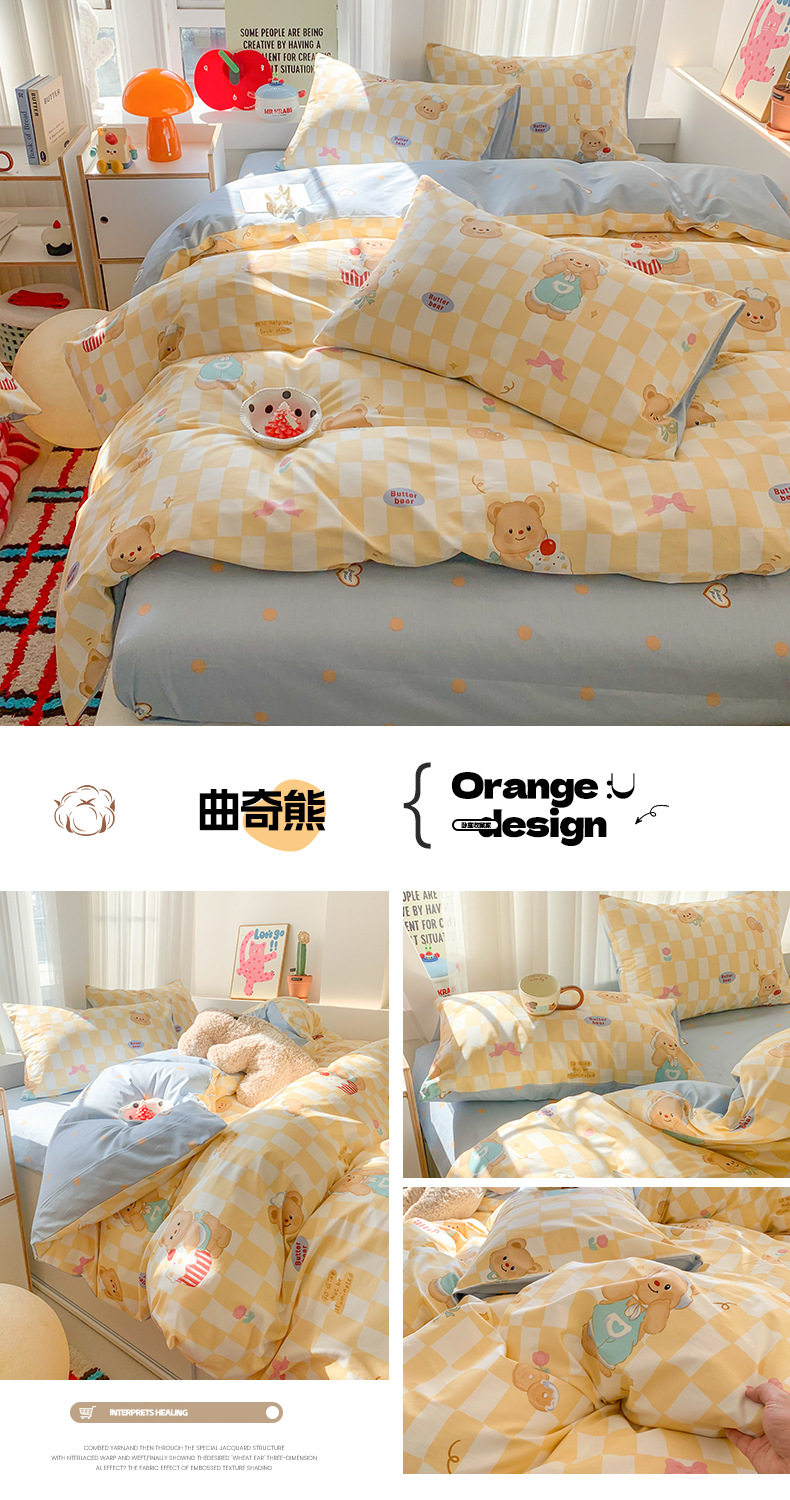 2025 Spring All-Cotton Four-Piece Set with Cartoon Print, Pure Cotton Bedding Set, Duvet Cover, Bed Sheet for 1.2m Bed, Three-Piece Set Wholesale