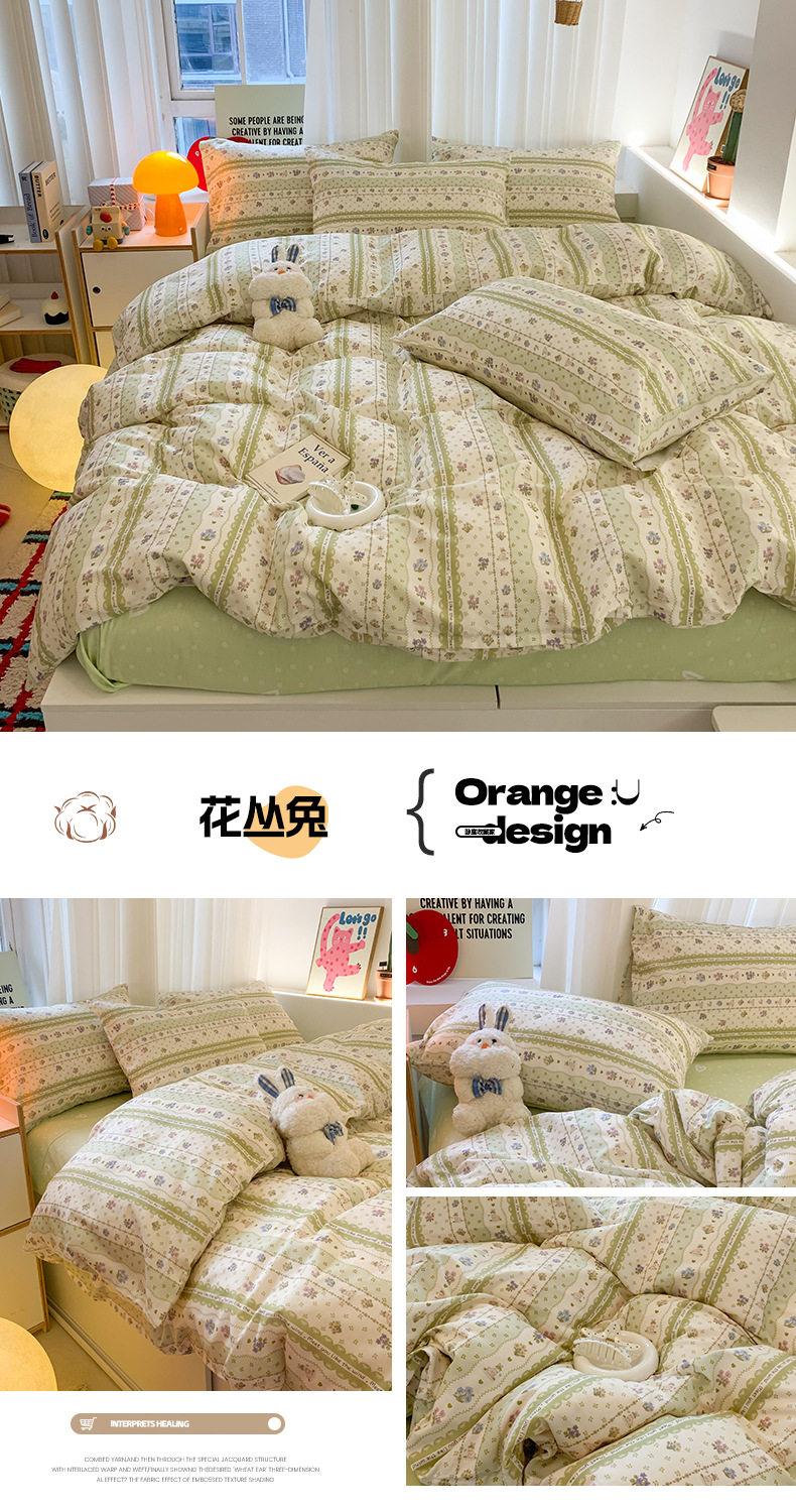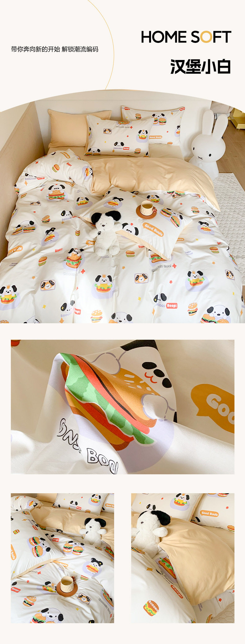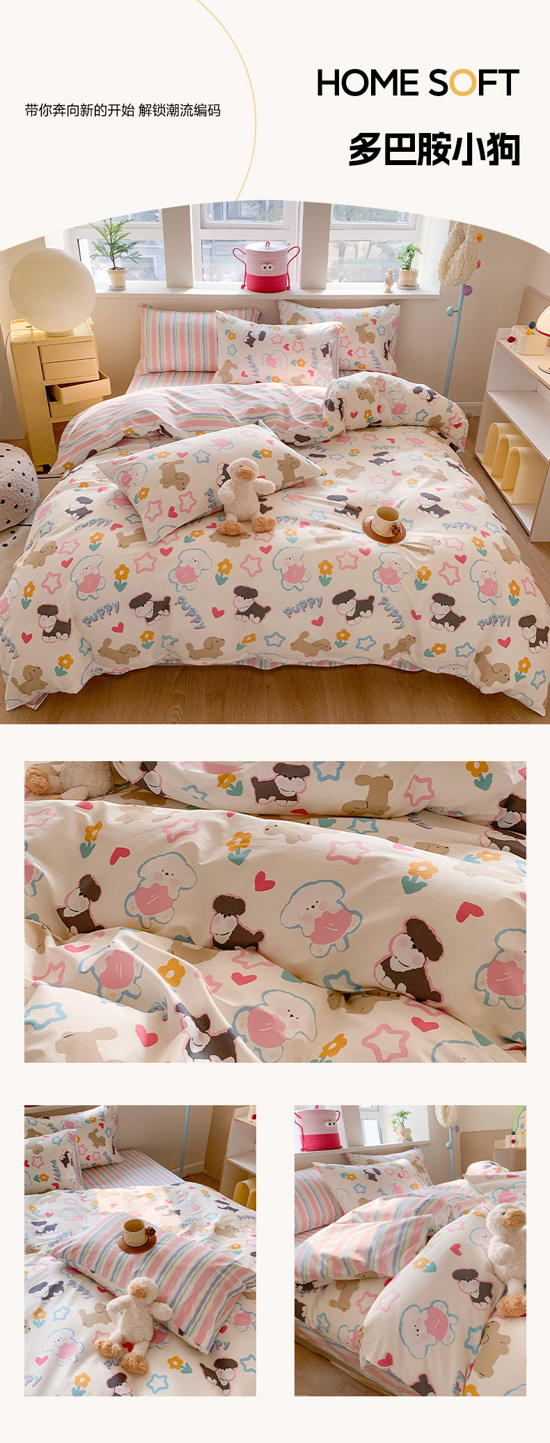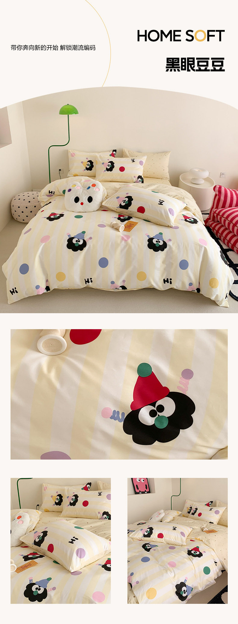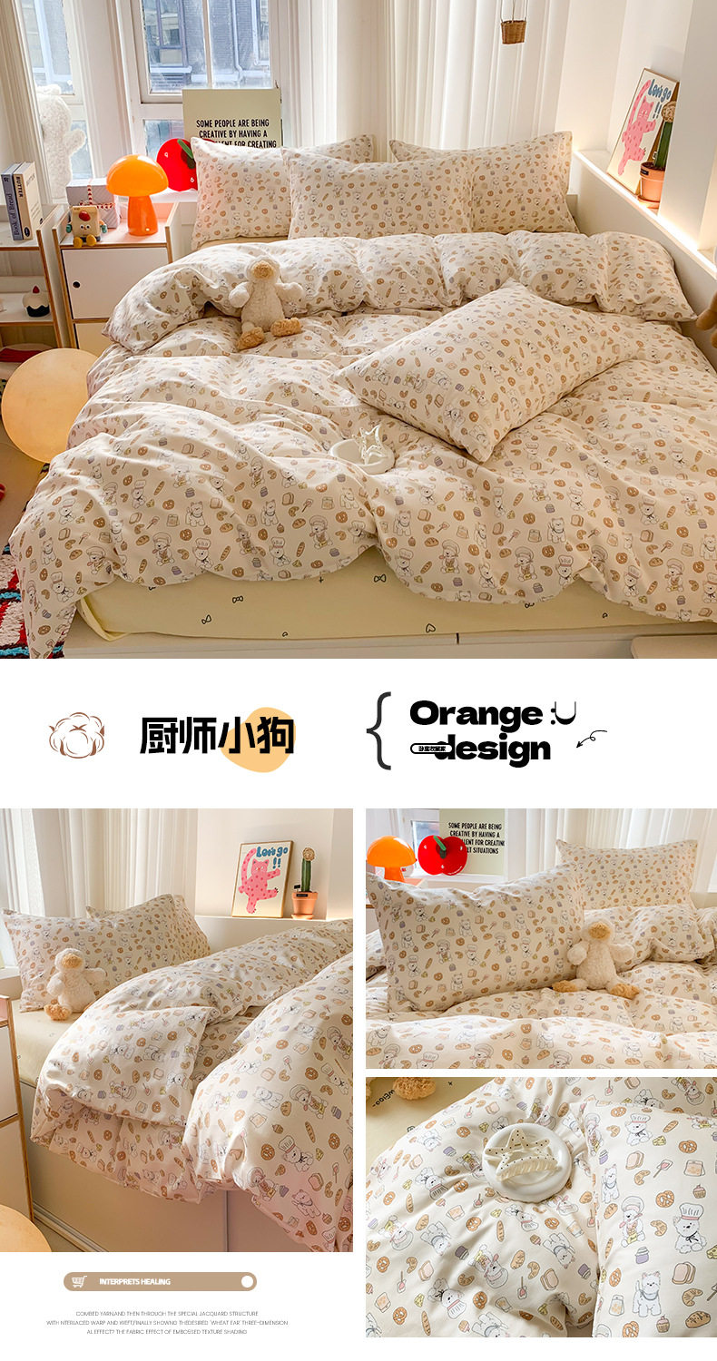 2025 Spring All-Cotton Four-Piece Set with Cartoon Print, Pure Cotton Bedding Set, Duvet Cover, Bed Sheet for 1.2m Bed, Three-Piece Set Wholesale