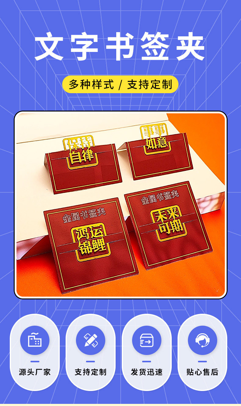 Wholesale metal gold-plated bookmark text hollow inspirational Chinese style exquisite reward learning cultural creation graduation small gift