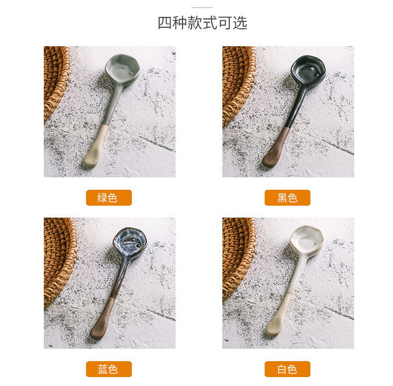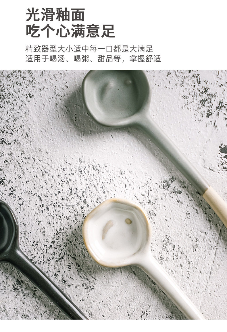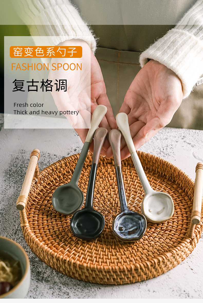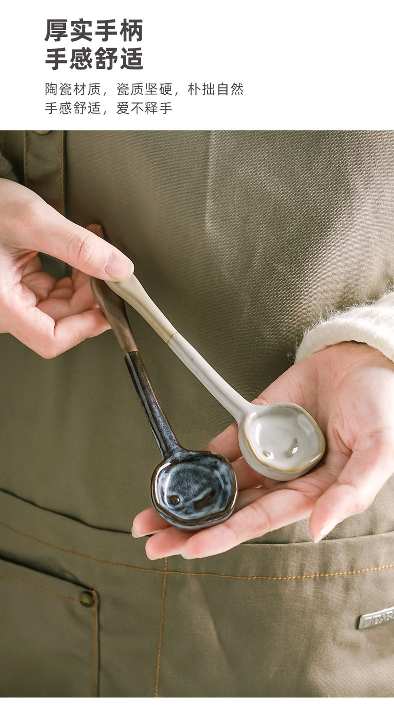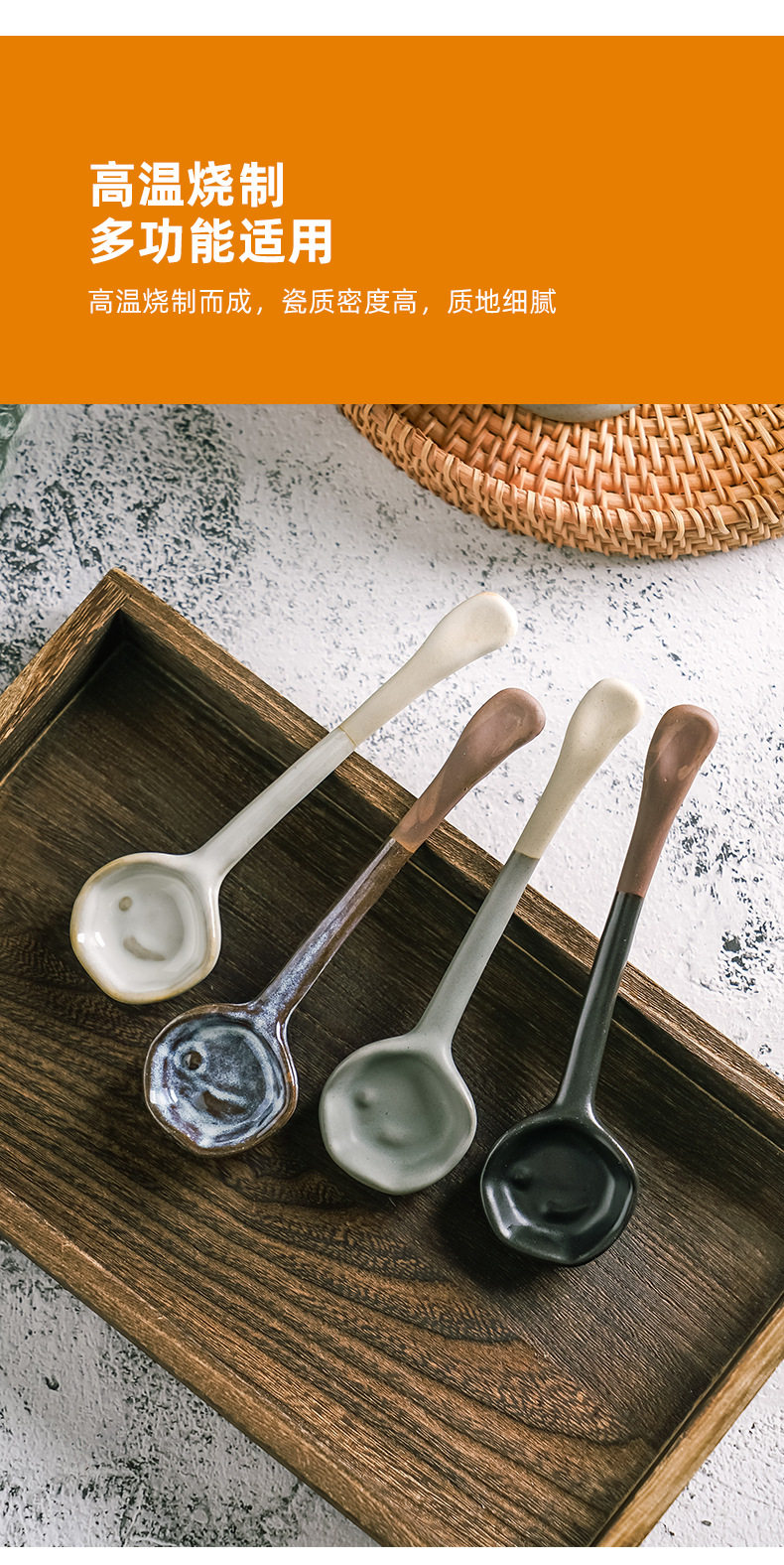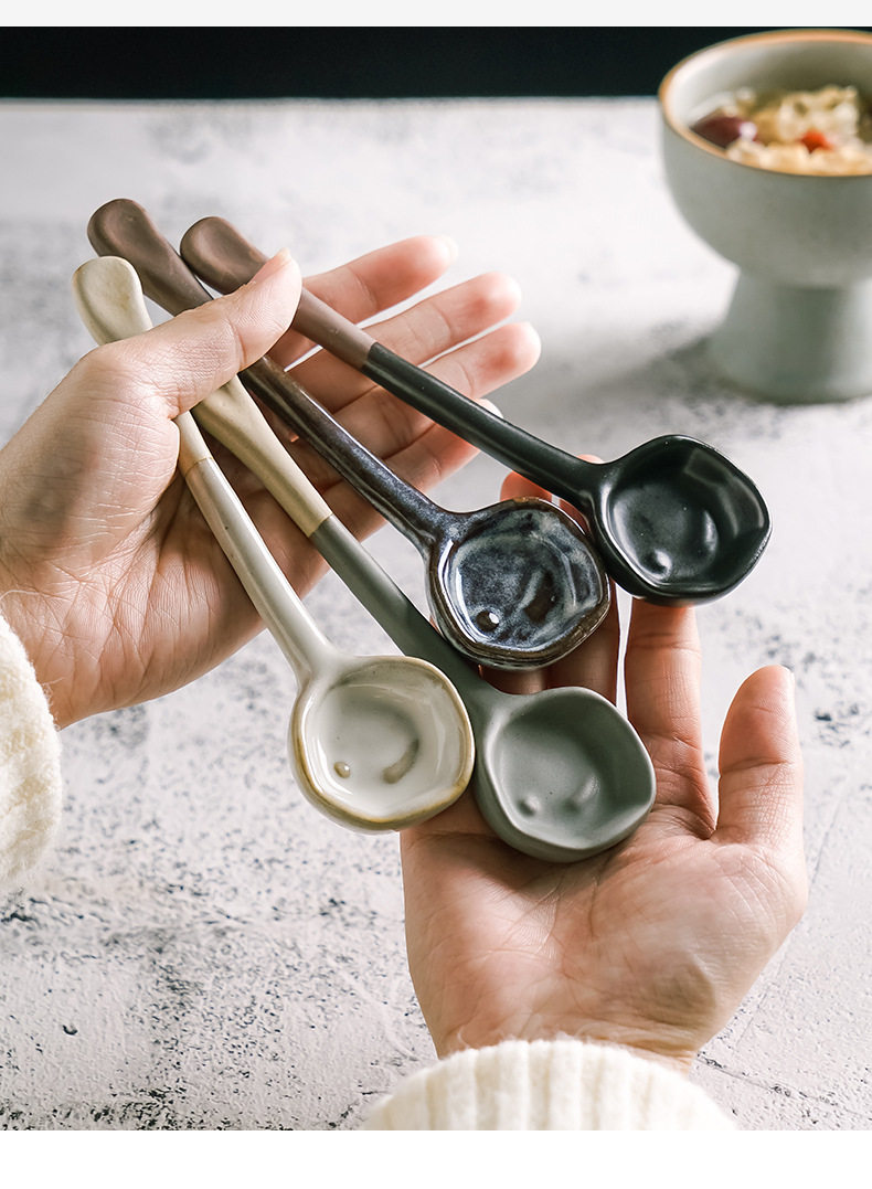 Ceramic heat-resistant coffee spoon long handle vintage Japanese clay seasoning mixing spoon wholesale stoneware handmade ins style small