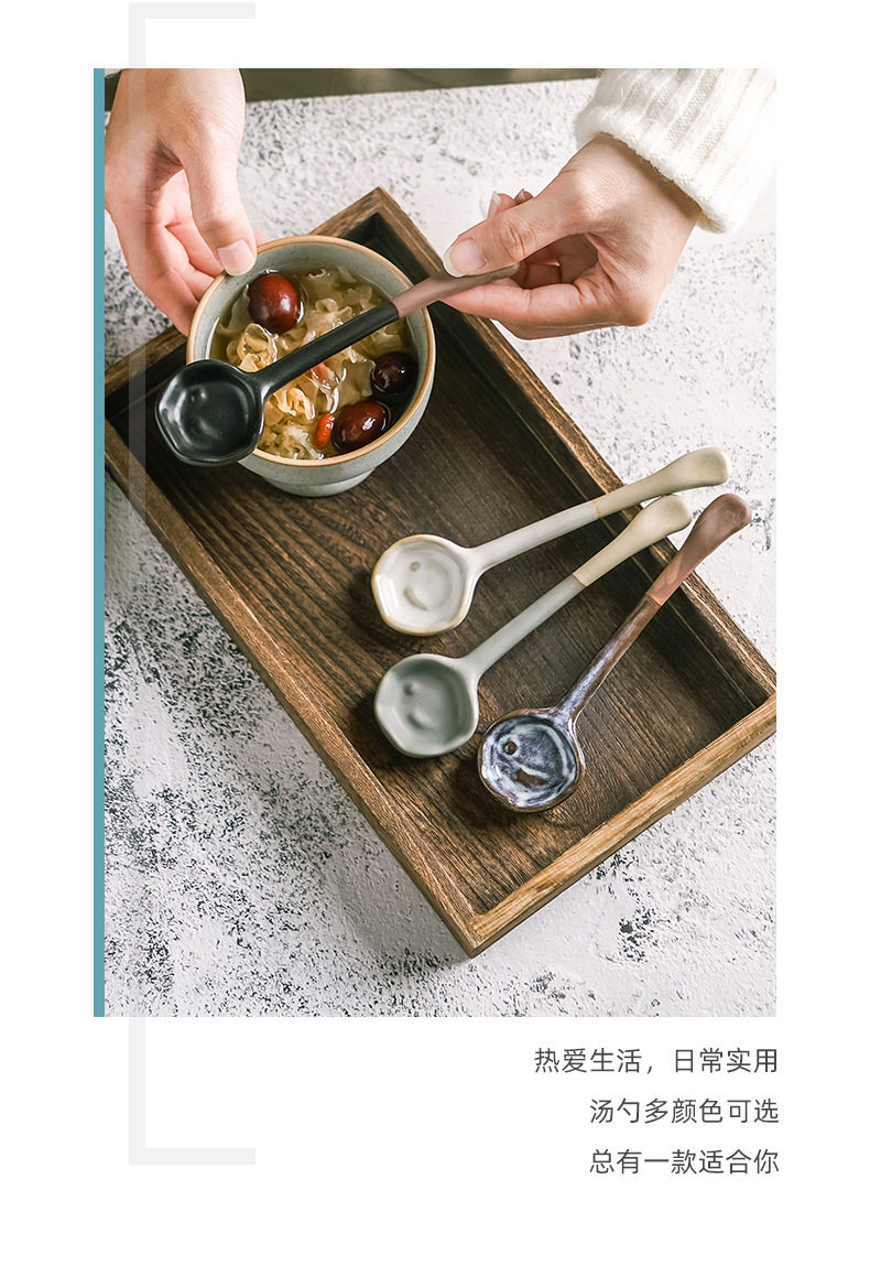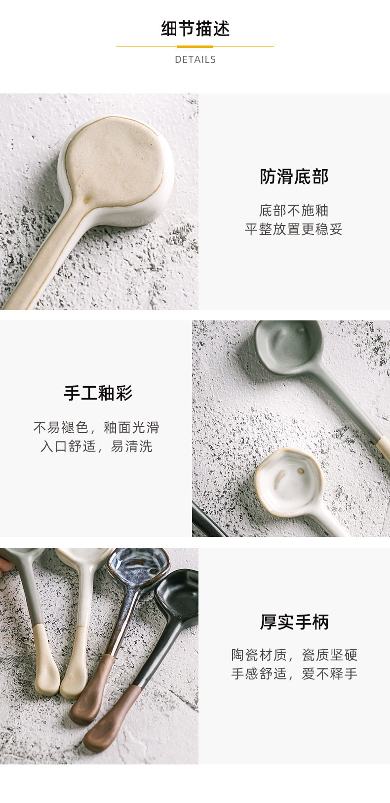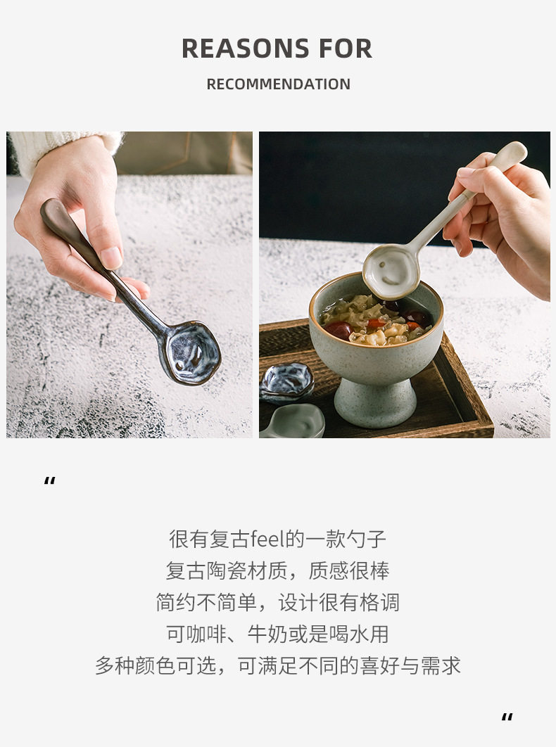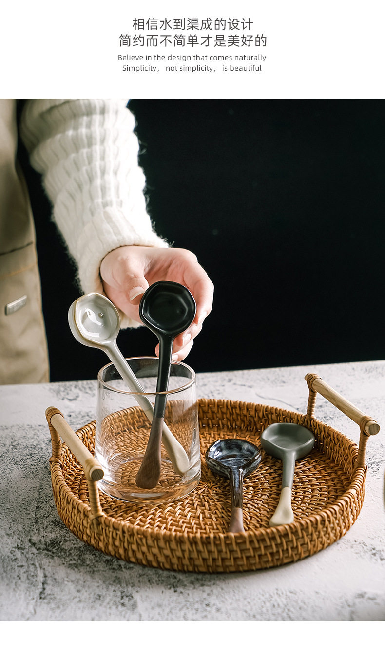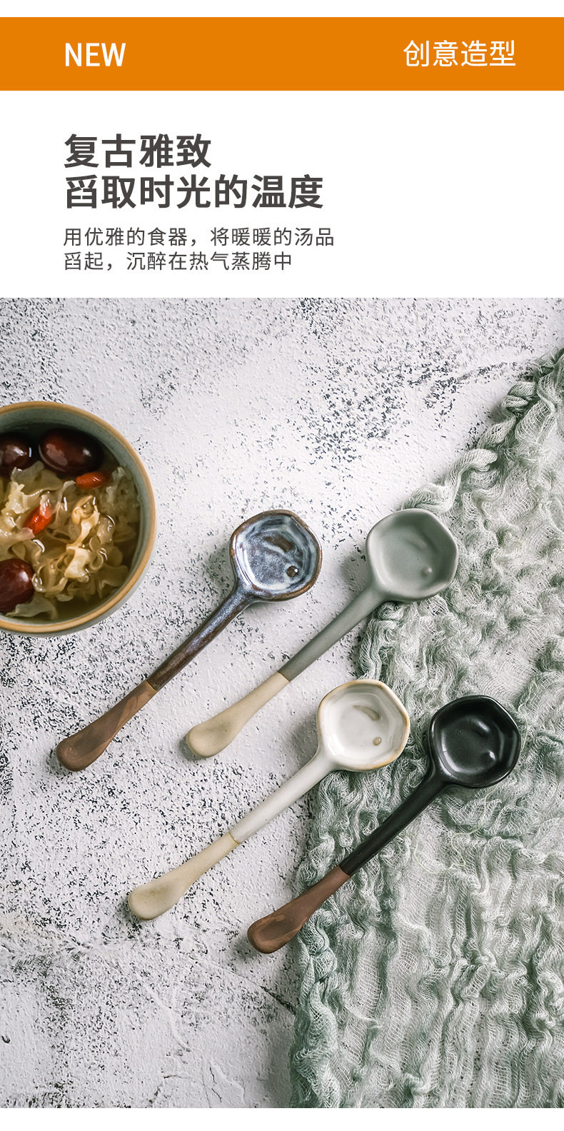 Ceramic heat-resistant coffee spoon long handle vintage Japanese clay seasoning mixing spoon wholesale stoneware handmade ins style small