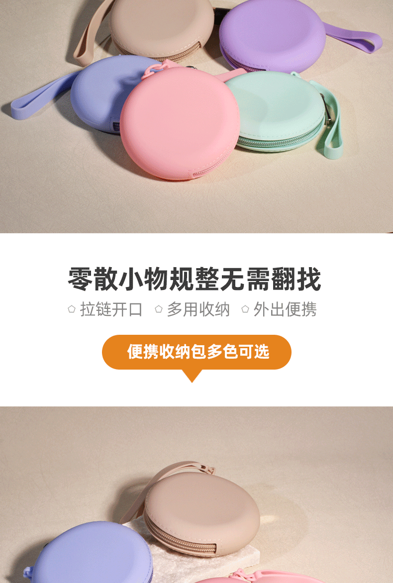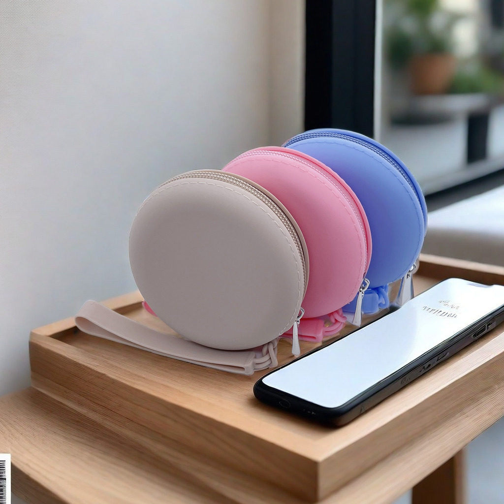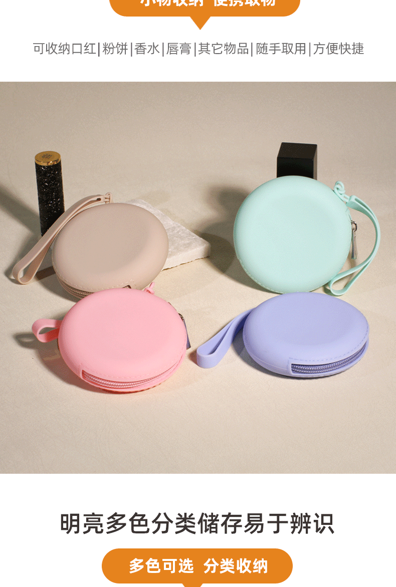 Silicone Round Coin Purse Solid Color Earphone Data Cable Lipstick Storage Bag Portable Zipper Key Bag Wholesale Waterproof