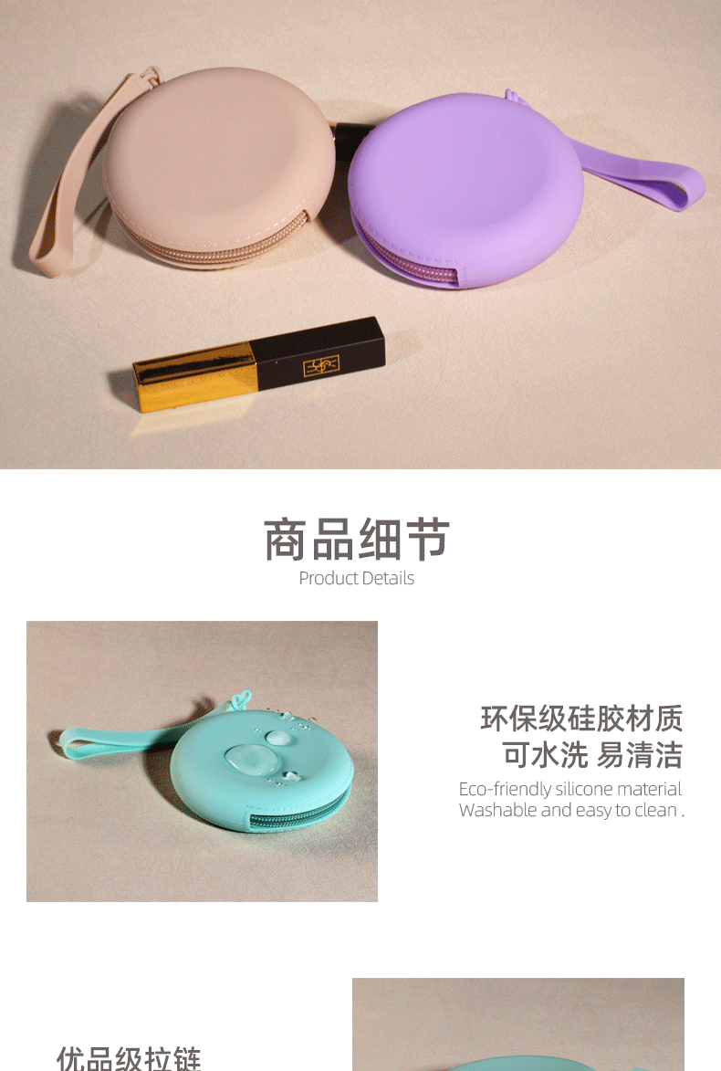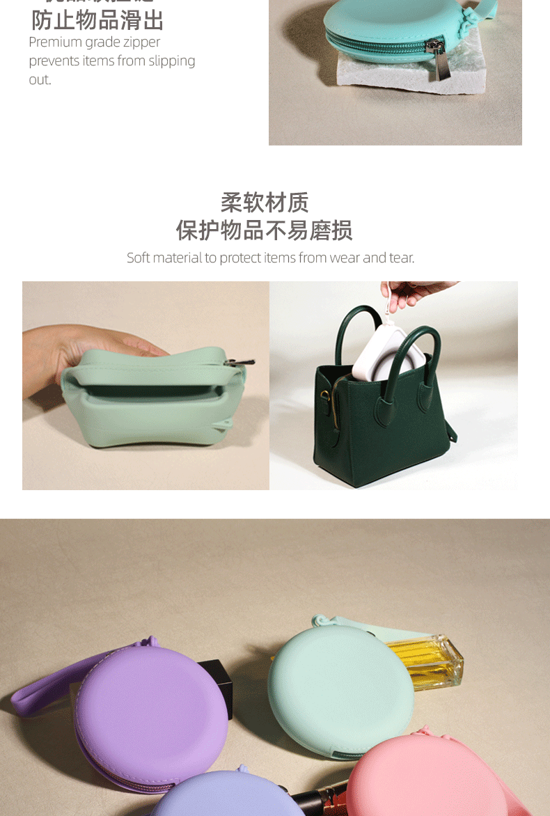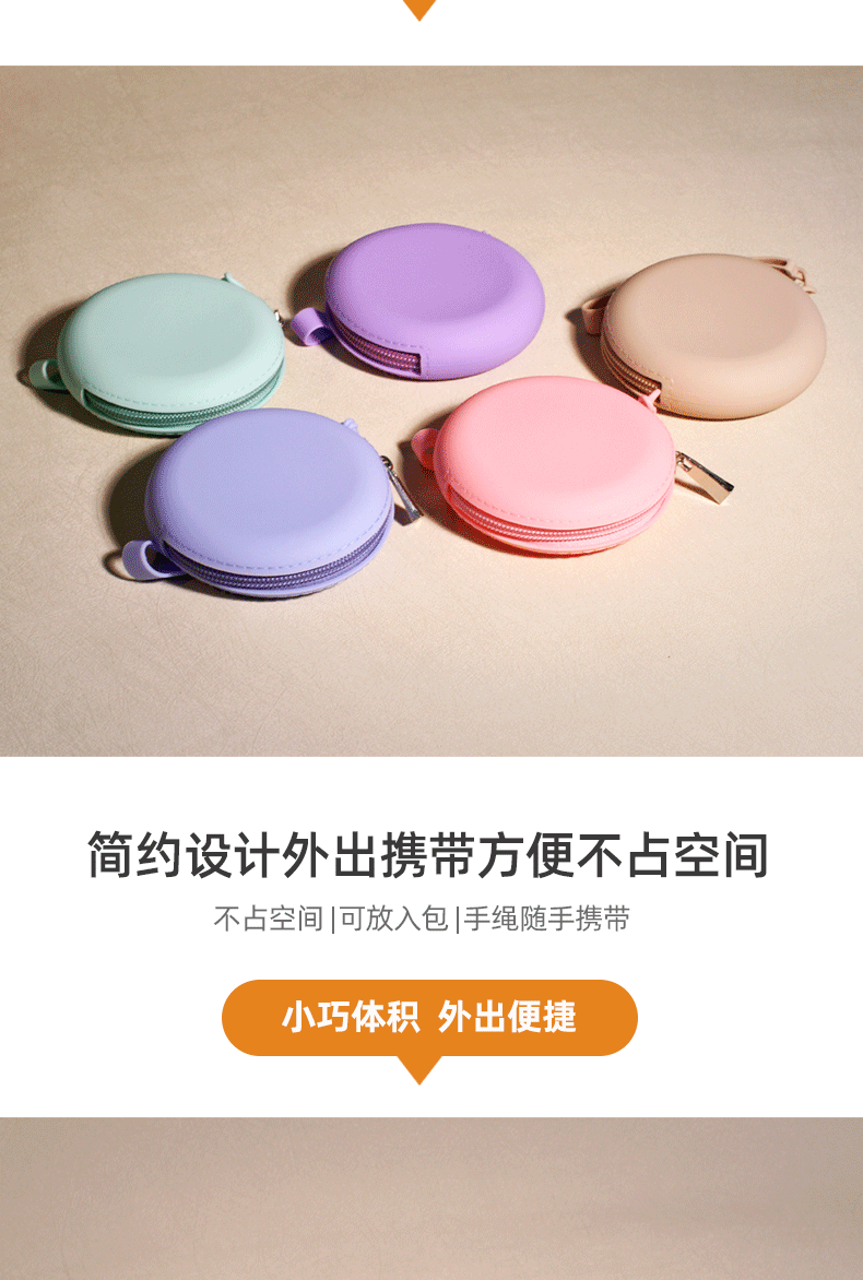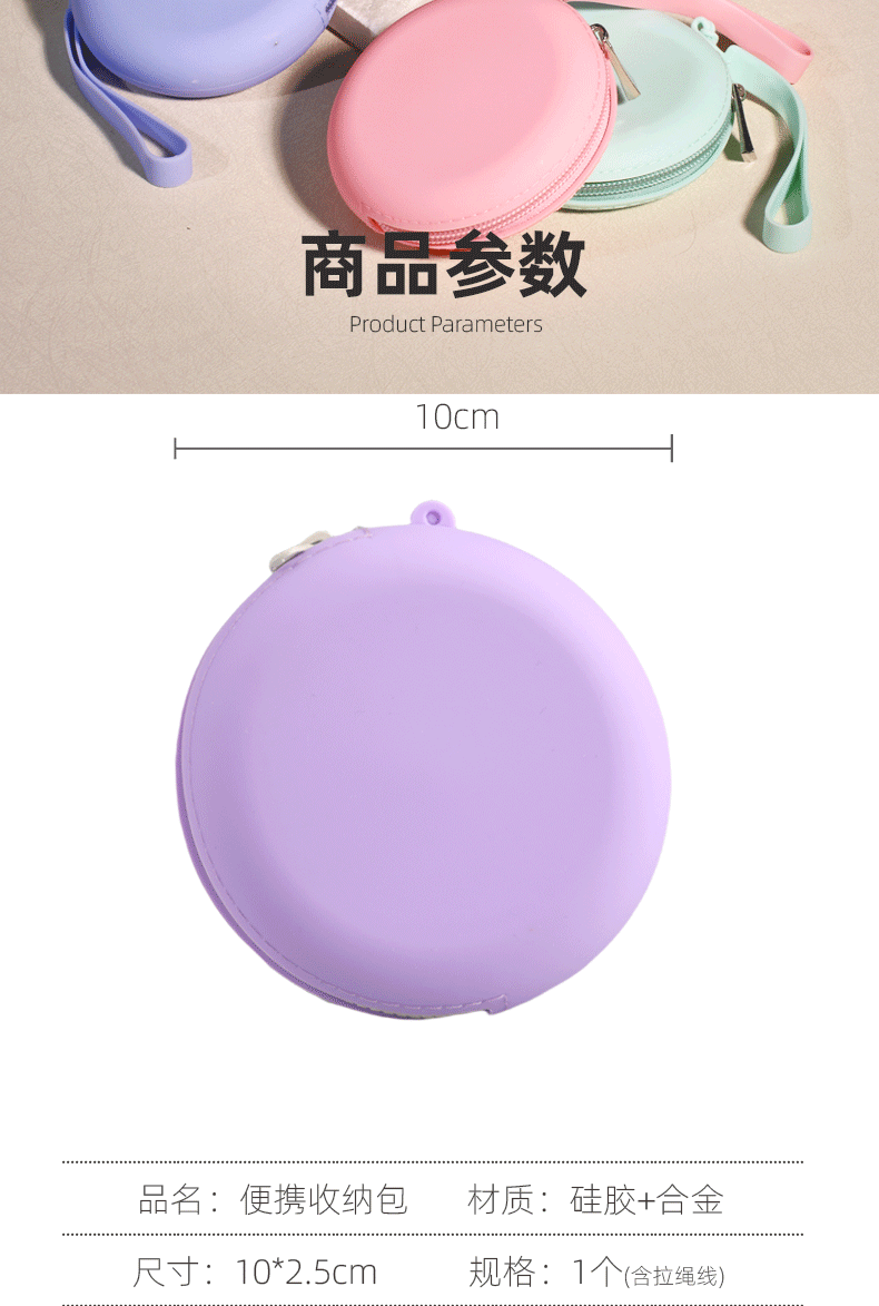 Silicone Round Coin Purse Solid Color Earphone Data Cable Lipstick Storage Bag Portable Zipper Key Bag Wholesale Waterproof