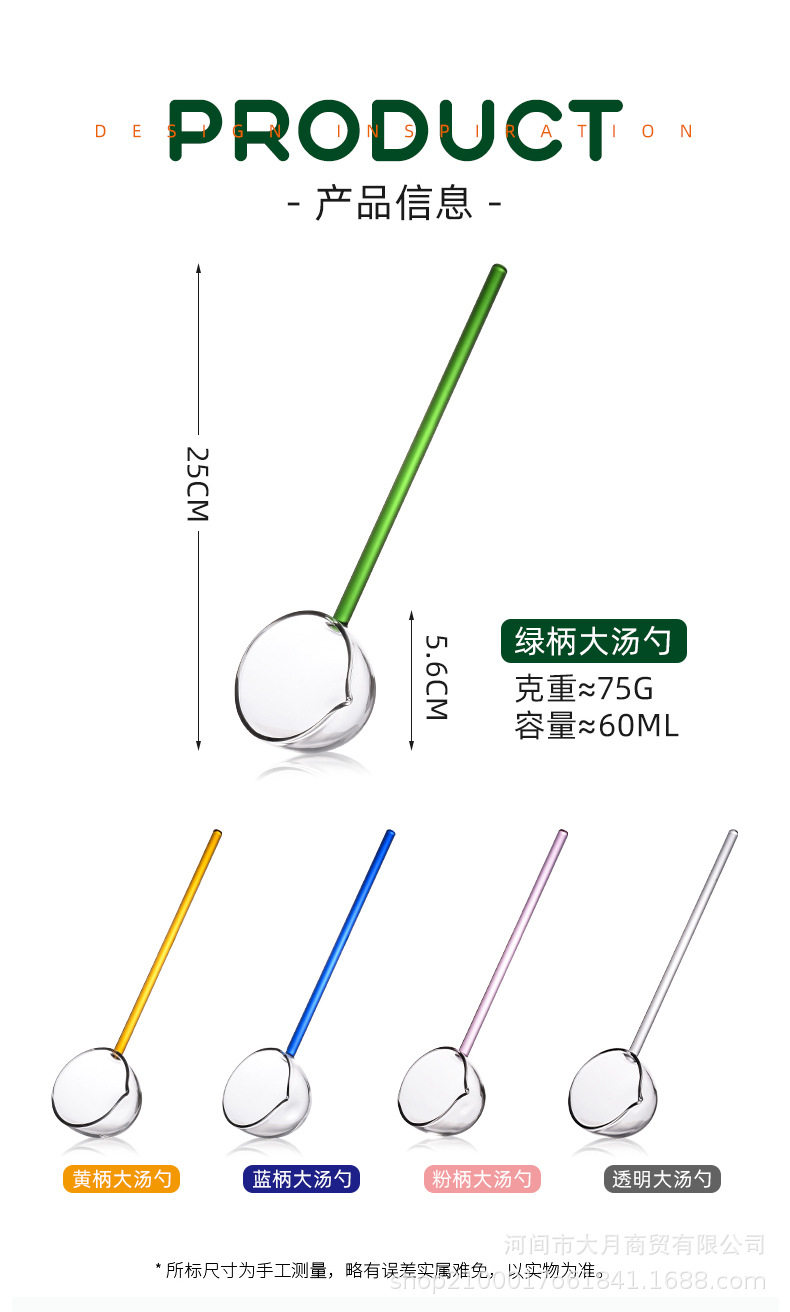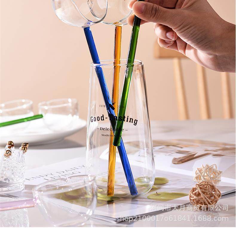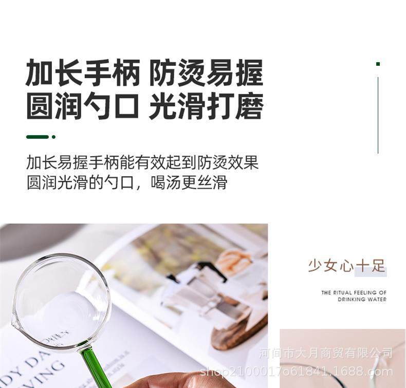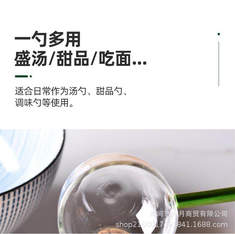 Colorful Transparent Long Handle Glass Spoon High Borosilicate Dessert Spoon High Borosilicate Household Spoon Tea Spoon Seasoning Spoon