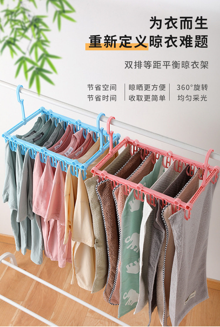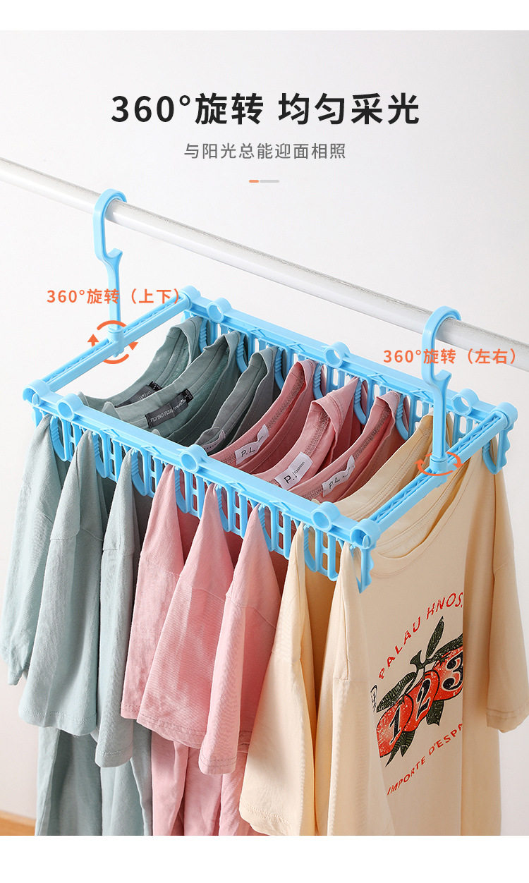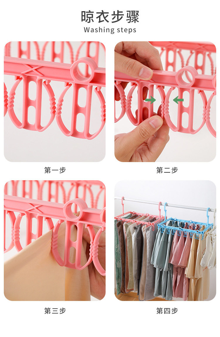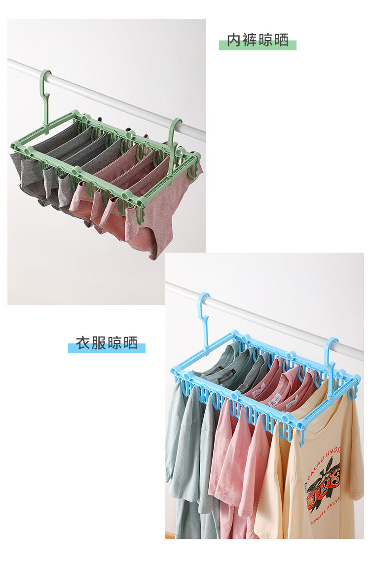 Multi-Functional Household Outdoor Clothes Drying Rack with Multiple Clips for Underwear, Anti-Slip and Anti-Blowing, Multi-Purpose for Balcony