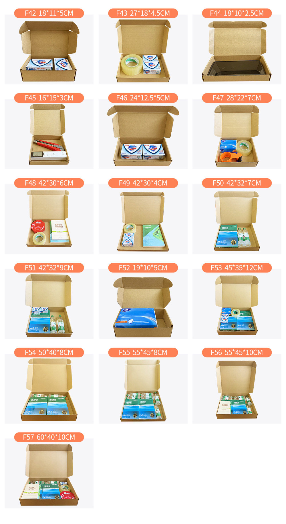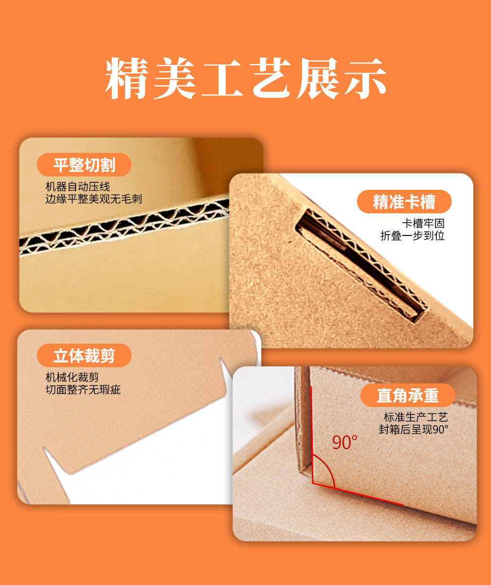 | Specifications and models | 30*11*4cm; three-layer standard [e flute 1.5mm],30*11*4cm; three layers of hardening [e flute 1.5mm],30*11*4cm; three layers of extra hard [b flute 2mm],30*20*5cm; three-layer standard [e flute 1.5mm],30*20*5cm; three layers of hardening [e flute 1.5mm],30*20*5cm; three layers of extra hard [b flute 2mm],30*20*8cm; three-layer standard [e flute 1.5mm],30*20*8cm; three layers of hardening [e flute 1.5mm],30*22*5cm; three-layer standard [e flute 1.5mm],30*22*5cm; three layers of hardening [e flute 1.5mm],30*22*5cm; three layers of extra hard [b flute 2mm],30*22*5cm; double-sided white card, three layers of extra hard [e flute 1.5mm],30*26*6cm; three-layer standard [e flute 1.5mm],30*26*6cm; three layers of hardening [e flute 1.5mm],30*26*6cm; three layers of extra hard [b flute 2mm],30*30*6cm; three-layer standard [e flute 1.5mm],30*30*6cm; three layers of hardening [e flute 1.5mm],31*22*10cm; three-layer standard [e flute 1.5mm],31*22*10cm; three layers of hardening [e flute 1.5mm],32*23*4cm; three-layer standard [e flute 1.5mm],32*23*4cm; three layers of hardening [e flute 1.5mm],32*23*4cm; three layers of extra hard [b flute 2mm],32*23*4cm; three layers of super hard [b flute 2mm],33*23*7cm; three-layer standard [e flute 1.5mm],33*23*7cm; three layers of hardening [e flute 1.5mm],33*23*7cm; three layers of extra hard [b flute 2mm],35*35*6cm; three-layer standard [e flute 1.5mm],35*35*6cm; three layers of hardening [e flute 1.5mm],35*35*6cm; three layers of extra hard [b flute 2mm],36*26*4cm; three-layer standard [e flute 1.5mm],36*26*4cm; three layers of hardening [e flute 1.5mm],36*26*4cm; three layers of extra hard [b flute 2mm],36*26*6cm; three-layer standard [e flute 1.5mm],36*26*6cm; three layers of hardening [e flute 1.5mm],36*26*6cm; three layers of extra hard [b flute 2mm],36*26*6cm; three layers of super hard [b flute 2mm],36*30*6cm; three-layer standard [e flute 1.5mm],36*30*6cm; three layers of hardening [e flute 1.5mm],36*30*6cm; three layers of extra hard [b flute 2mm],38*28*7cm; three-layer standard [e flute 1.5mm],38*28*7cm; three layers of hardening [e flute 1.5mm],38*28*7cm; three layers of extra hard [b flute 2mm],38*28*7cm; three layers of super hard [b flute 2mm],40*30*4cm; three-layer standard [e flute 1.5mm],40*30*4cm; three layers of hardening [e flute 1.5mm],40*30*4cm; three layers of extra hard [b flute 2mm],40*30*6cm; three-layer standard [e flute 1.5mm],40*30*6cm; three layers of hardening [e flute 1.5mm],40*30*6cm; three layers of extra hard [b flute 2mm],40*30*8cm; three-layer standard [e flute 1.5mm],40*30*8cm; three layers of hardening [e flute 1.5mm],40*30*8cm; three layers of extra hard [b flute 2mm],40*30*8cm; three layers of super hard [b flute 2mm],40*30*10cm; three-layer standard [e flute 1.5mm],40*30*10cm; three layers of hardening [e flute 1.5mm],40*30*12cm; three-layer standard [e flute 1.5mm],40*30*12cm; three layers of hardening [e flute 1.5mm],40*40*6cm; three layers of hardening [e flute 1.5mm],40*40*6cm; three layers of extra hard [b flute 2mm],40*40*6cm; three layers of super hard [b flute 2mm],42*30*4cm; three layers of hardening [e flute 1.5mm],42*30*6cm; three layers of hardening [e flute 1.5mm],42*32*7cm; three layers of hardening [e flute 1.5mm],42*32*9cm; three layers of hardening [e flute 1.5mm],45*35*8cm; three-layer standard [e flute 1.5mm],45*35*8cm; three layers of hardening [e flute 1.5mm],45*35*8cm; three layers of extra hard [b flute 2mm],45*35*10cm; three-layer standard [e flute 1.5mm],45*35*10cm; three layers of hardening [e flute 1.5mm],45*35*10cm; three layers of extra hard [b flute 2mm],45*35*10cm; three layers of super hard [b flute 2mm],45*35*12cm; three layers of extra hard [b flute 2mm],46*18*6cm; three-layer standard [e flute 1.5mm],46*18*6cm; three layers of hardening [e flute 1.5mm],50*36*8cm; three-layer standard [e flute 1.5mm],50*36*8cm; three layers of hardening [e flute 1.5mm],50*36*8cm; three layers of extra hard [b flute 2mm],50*36*8cm; three layers of super hard [b flute 2mm],50*40*8cm; three layers of hardening [e flute 1.5mm],50*40*8cm; three layers of extra hard [b flute 2mm],50*40*8cm; three layers of super hard [b flute 2mm],50*40*10cm; three-layer standard [e flute 1.5mm],50*40*10cm; three layers of hardening [e flute 1.5mm],50*40*10cm; three layers of extra hard [b flute 2mm],50*40*10cm; three layers of super hard [b flute 2mm],55*45*8cm; three layers of extra hard [b flute 2mm],55*45*10cm; three layers of extra hard [b flute 2mm],60*40*10cm; three layers of extra hard [b flute 2mm],60*40*10cm; three layers of super hard [b flute 2mm] |