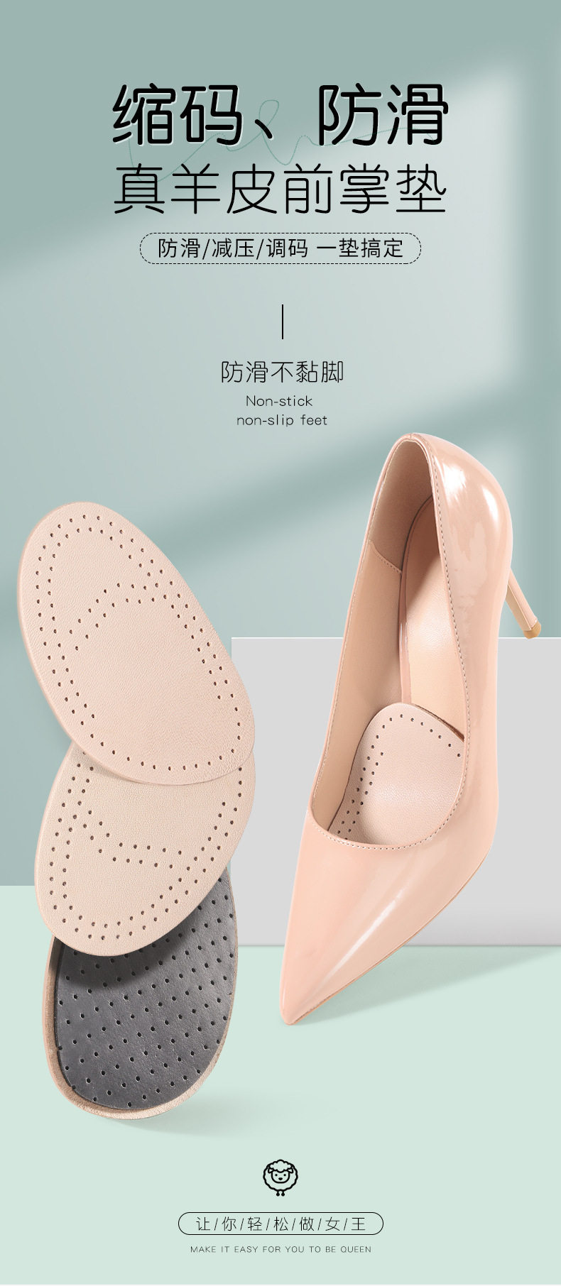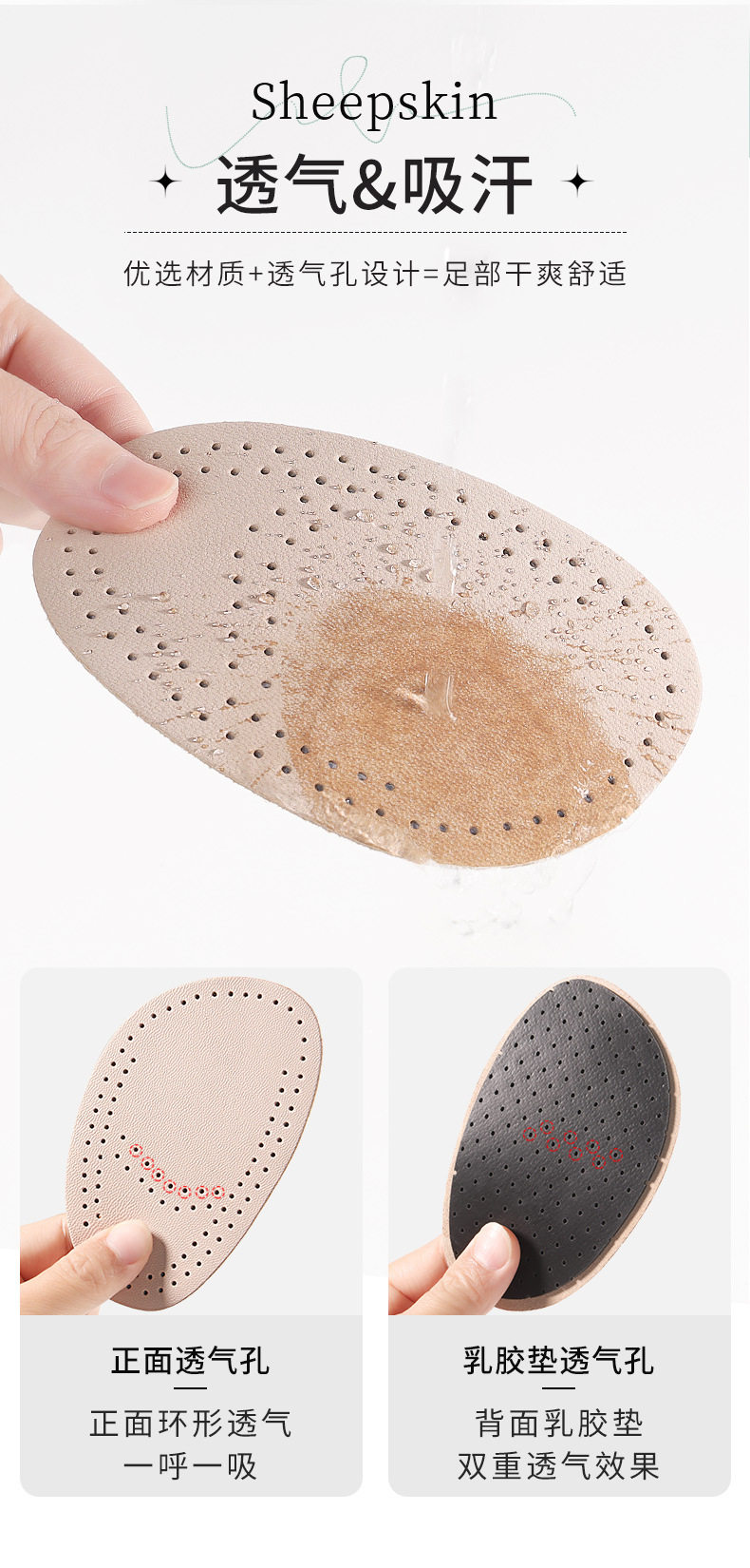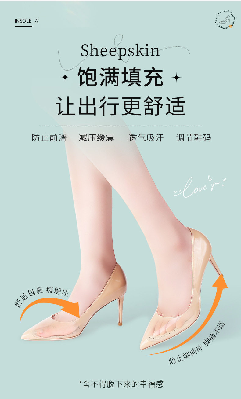 Sheepskin forefoot pad women's high heels anti-pain forefoot half pad men's non-slip anti-wear leather forefoot pad manufacturers wholesale