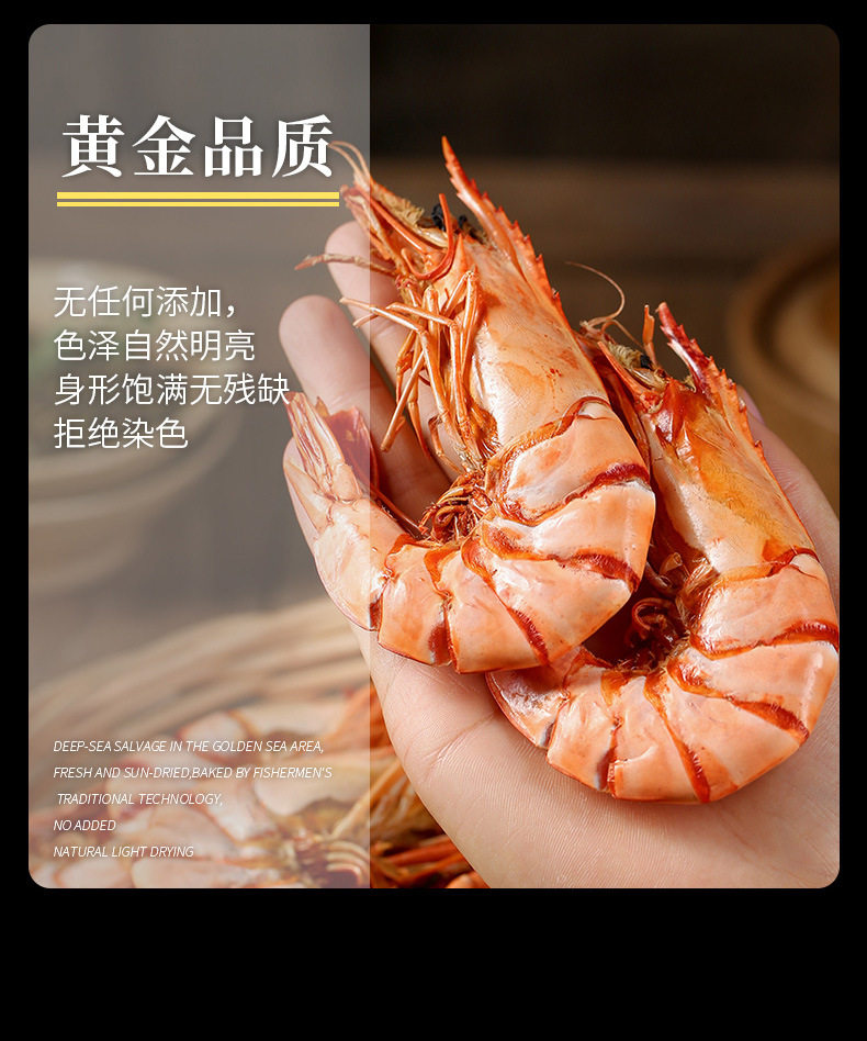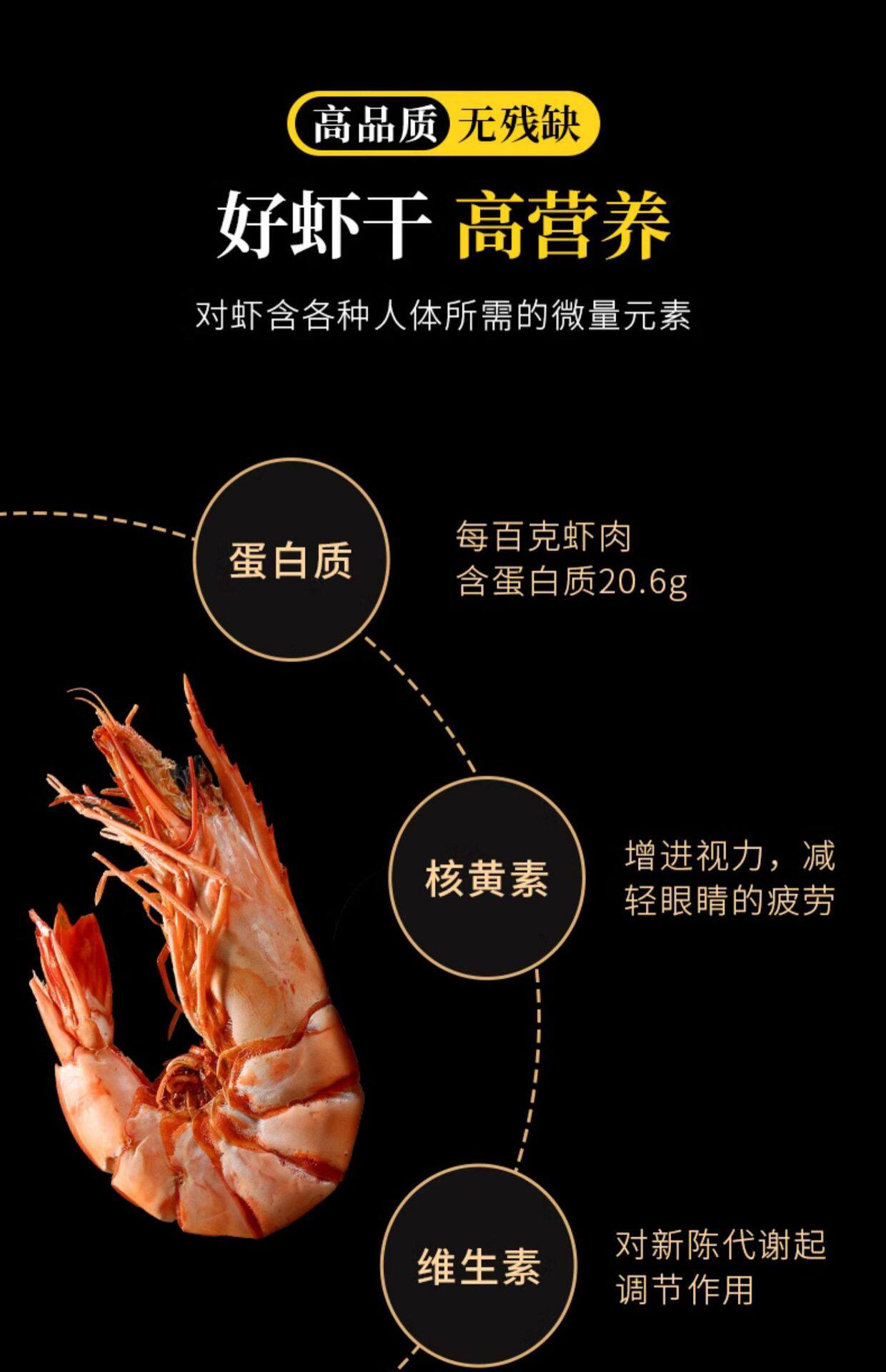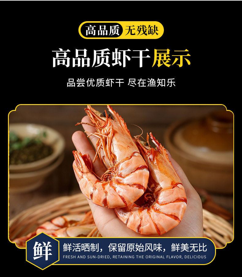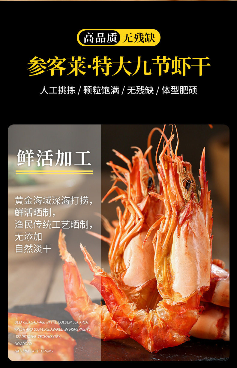| Packaging specifications | 250g*1 pack [about 100-150 pieces/pack] small dried nine-segment shrimp,250g*1 pack [75-80 pieces/pack] zhongda nine-segment dried shrimps,250g*2 packs [75-80 pieces/pack] zhongda nine-segment dried shrimps,250g*5 packs [gift box] [75-80 pieces/pack] zhongda nine-segment dried shrimps,250g*1 pack [55-65 pieces/pack] zhongda nine-segment dried shrimps,250g*2 packs [55-65 pieces/pack] zhongda nine-segment dried shrimps,250g*5 packs [gift box] [55-65 pieces/pack] zhongda nine-segment dried shrimps,250g*1 pack [about 8-15 pieces/pack] extra large dried nine-seater shrimp,250g*1 pack [23-26 pieces/pack] large nine-segment dried shrimps,250g*2 packs [23-26 pieces/pack] large nine-segment dried shrimps,250g*5 packs [gift box] [23-26 pieces/pack] large nine-segment dried shrimps,250g*1 pack [17-23 pieces/pack] extra large dried nine-segment shrimp,250g*2 packs [17-23 pieces/pack] extra large dried nine-segment shrimp,250g*5 packs [gift box] [17-23 pieces/pack] extra large dried nine-segment shrimp,250g*1 pack [about 30-35 pieces/pack] extra large dried nine-segment shrimp,250g*2 packs [about 30-35 pieces/pack] extra large dried nine-segment shrimp |