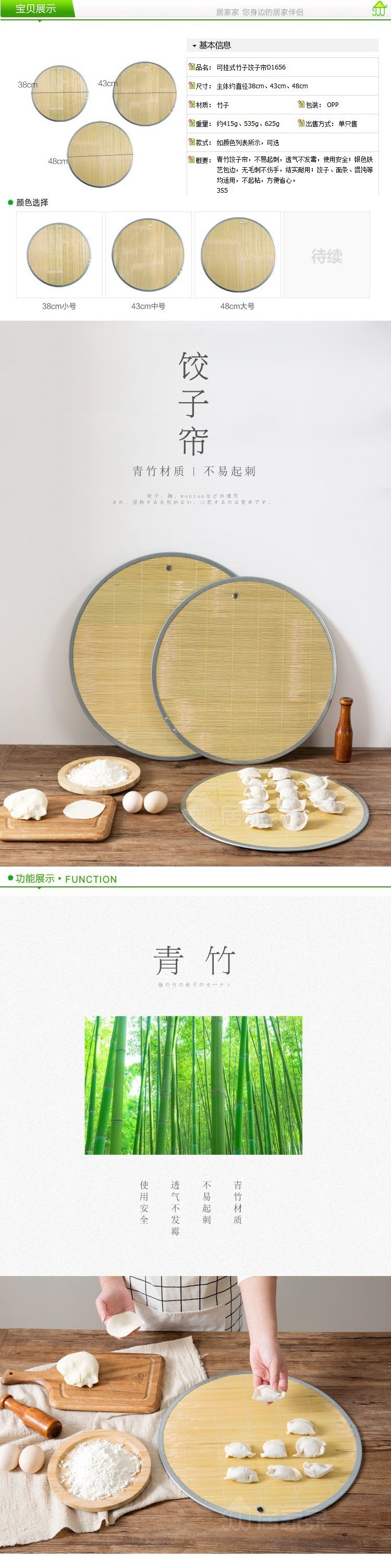| Specifications | Iron edged green bamboo dumpling curtain 38cm,Iron covered bamboo dumpling curtain 43cm,Iron edged green bamboo dumpling curtain 48cm,Iron edged green bamboo dumpling curtain 50cm |