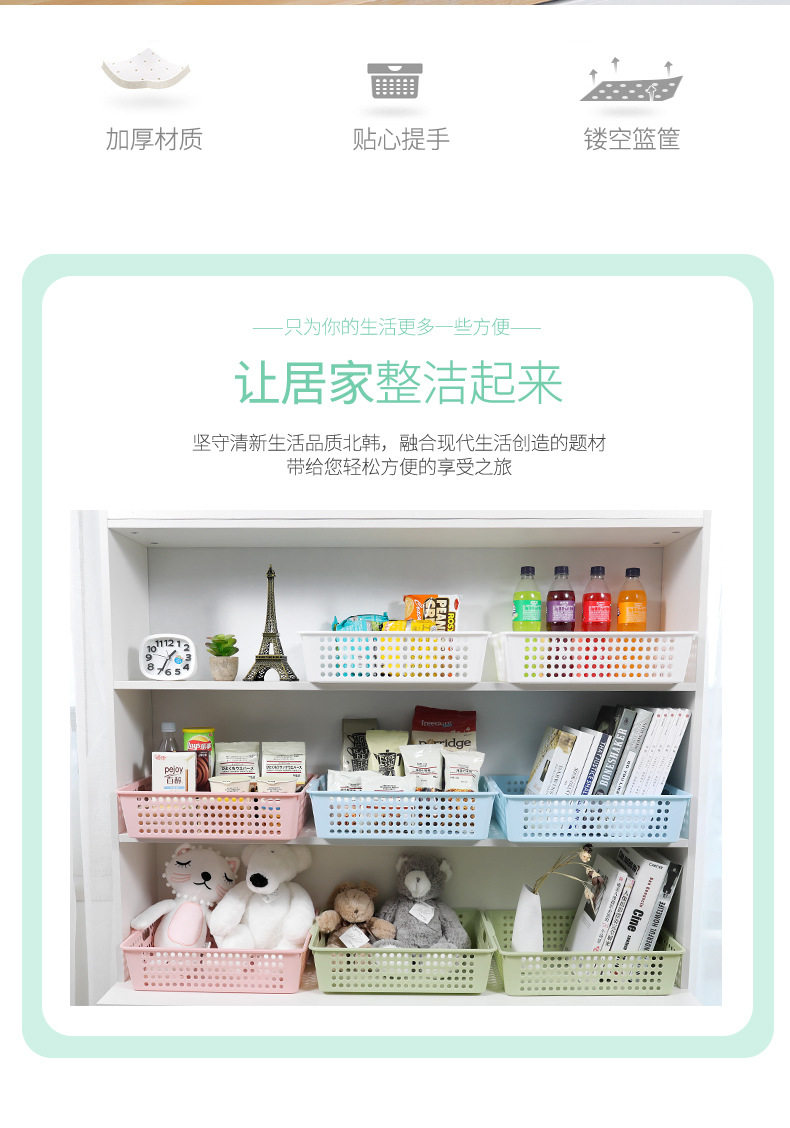 Supermarket goods plastic basket sundries basket rectangular plastic storage vegetable basket plastic storage basket