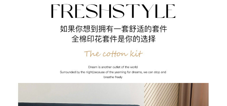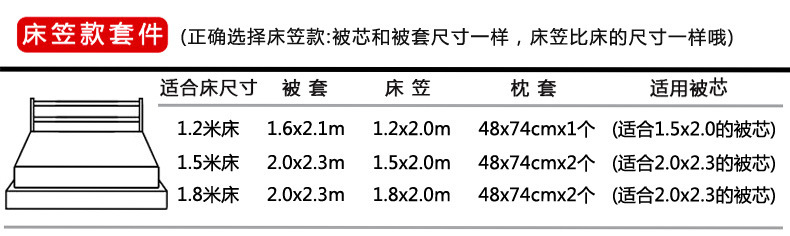 | Dimensions | Small size (quilt cover 1.6x2.1 sheets 1.8x2.3 pillowcase 1),Standard (quilt cover 2.0x2.3 sheets 2.45x2.5 pillowcases 2 pieces),Large (quilt cover 2.2x2.4 sheets 2.45x2.7 pillowcases 2 pieces),1.5 fitted sheet (quilt cover 2.0x2.3 fitted sheet 1.5x2.0 pillowcase 2 pieces),1.8 fitted sheet (quilt cover 2.0x2.3 fitted sheet 1.8x2.0 pillowcase 2 pieces) |