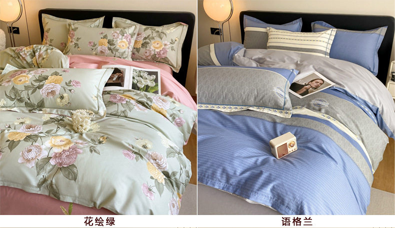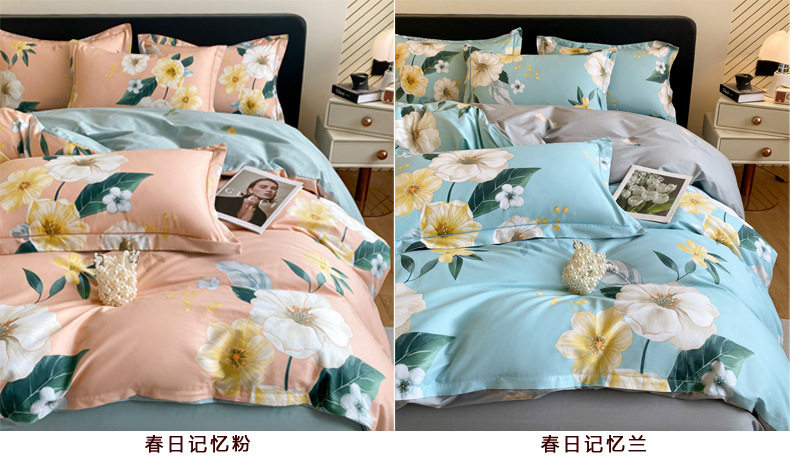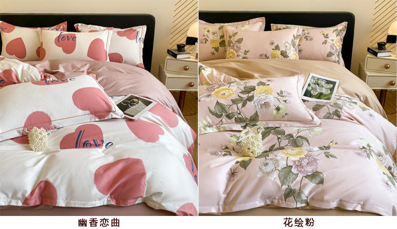 New four-piece set of inner and outer cotton double-sided high-density cotton long-staple cotton bedding quilt cover 4-piece set special offer hot sale