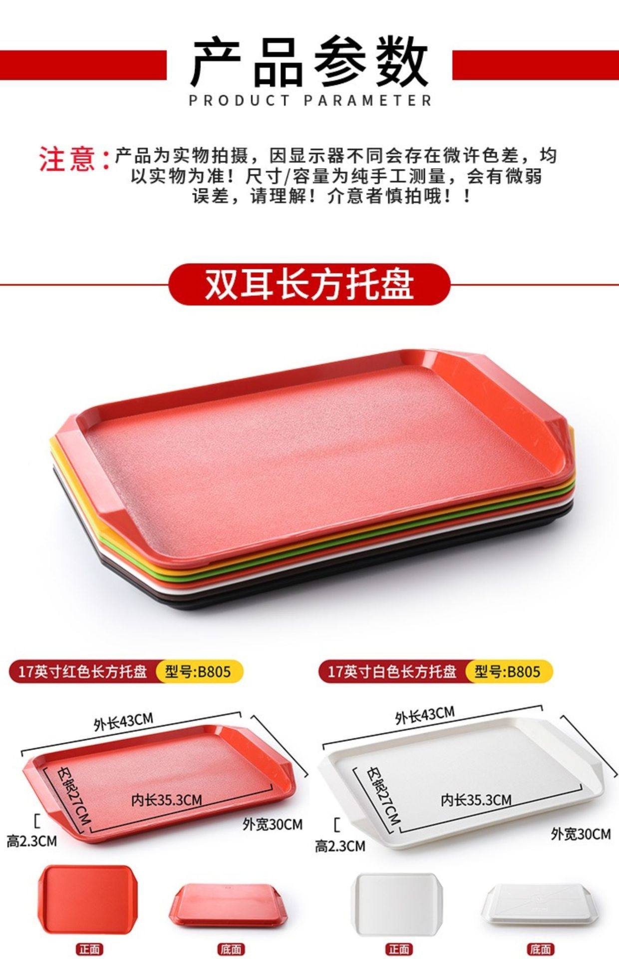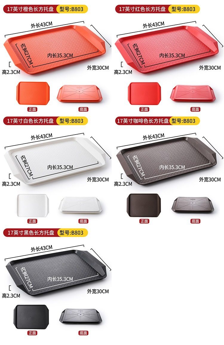 Plastic Tray Rectangular Non-Slip Serving Restaurant Canteen Burger Fried Chicken Kindergarten Fast Food Special Commercial Dinner Plate