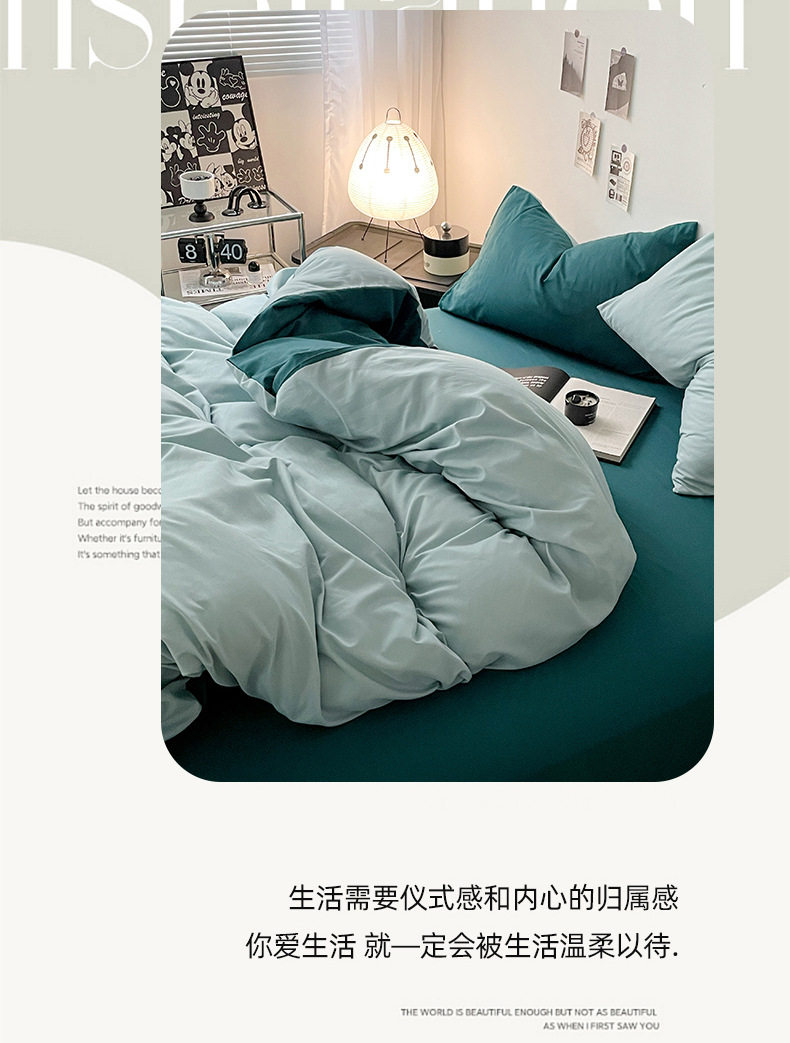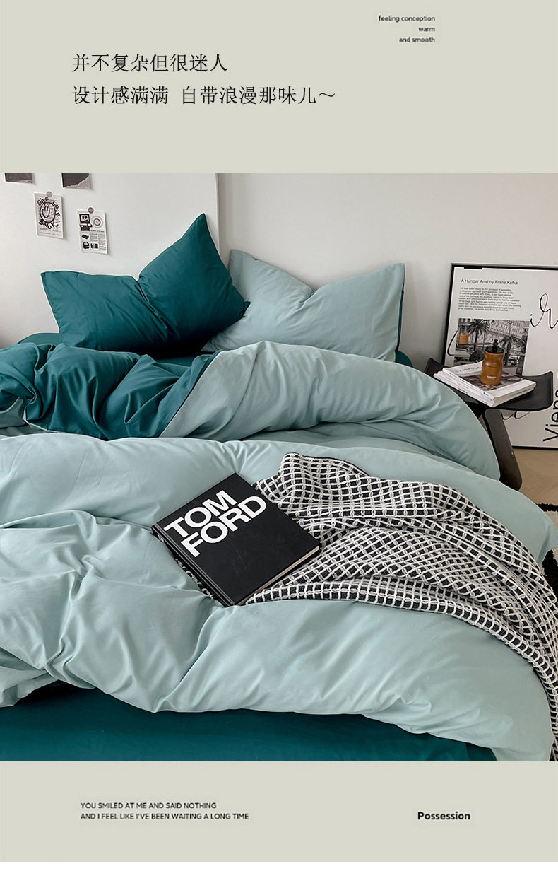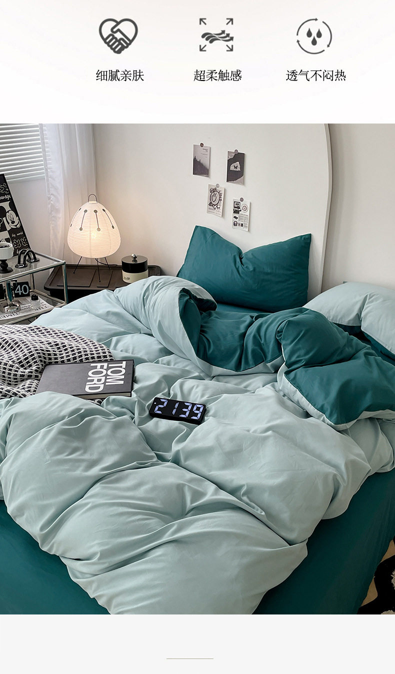 Four Seasons Simple Non-Print Style Skin-Friendly Sanding Four-Piece Set Student Three-Piece Set Bed Sheet Three-Piece Set Soft and Comfortable