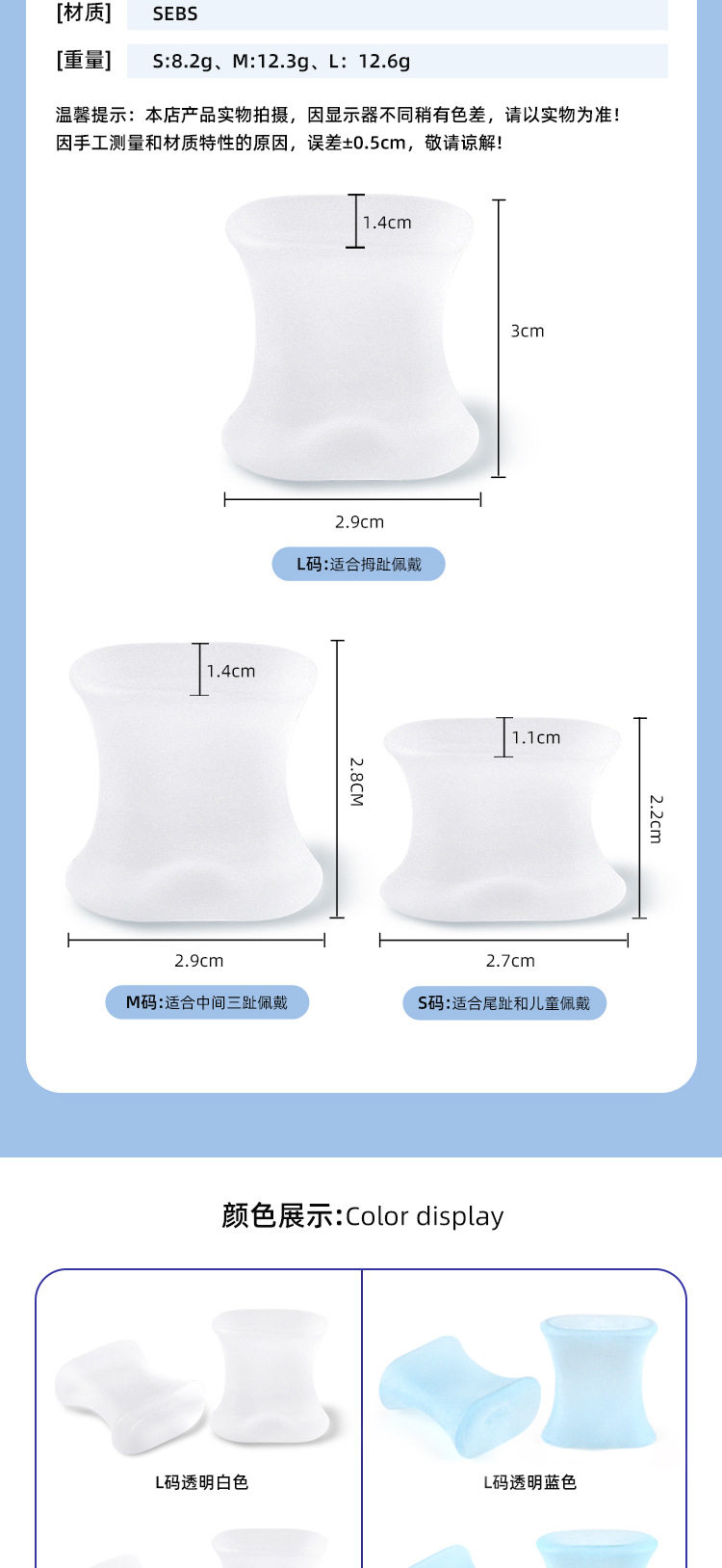 | Color | L code transparent White,M code transparent White,S code transparent White,L code transparent blue,M code transparent blue,S code transparent blue |