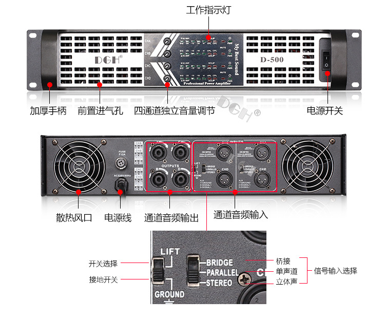 Four-channel amplifier hifi high-power KTV professional stage wedding performance pure rear power amplifier D-500