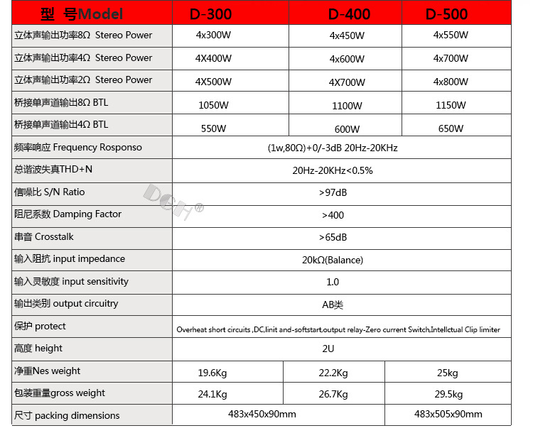 | Color | D-500 = 550W * 4 |