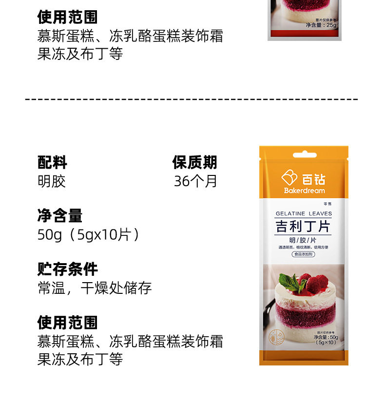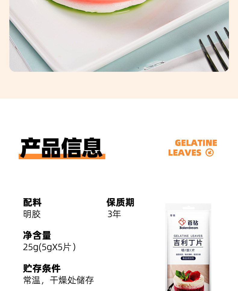 Hundred Diamond gelatine Tablets (5g*10 Pieces) 50g/bag Fish Film diy Pudding Jelly Mousse Baking Ingredients