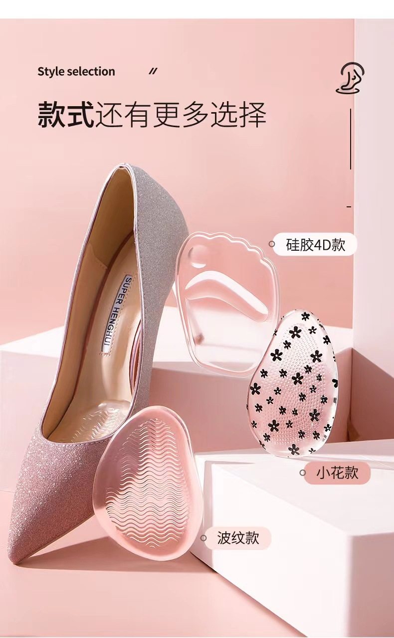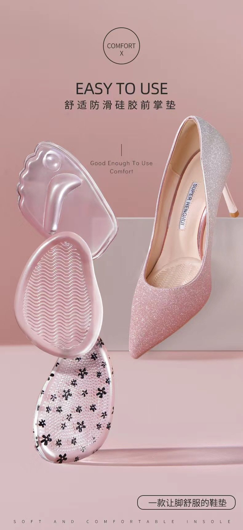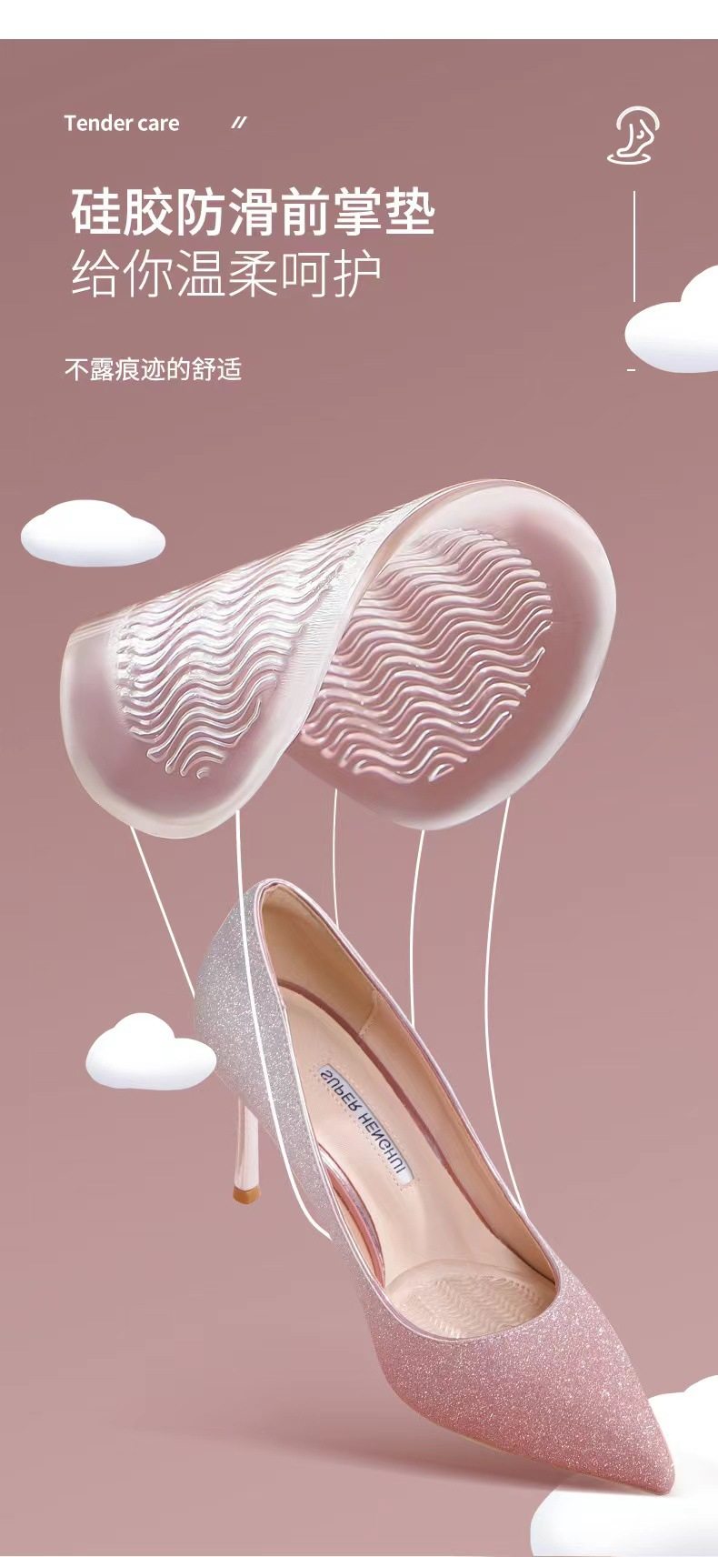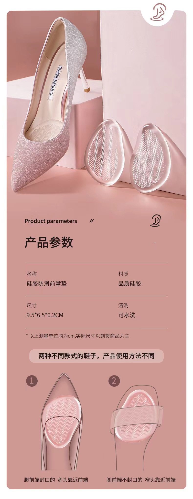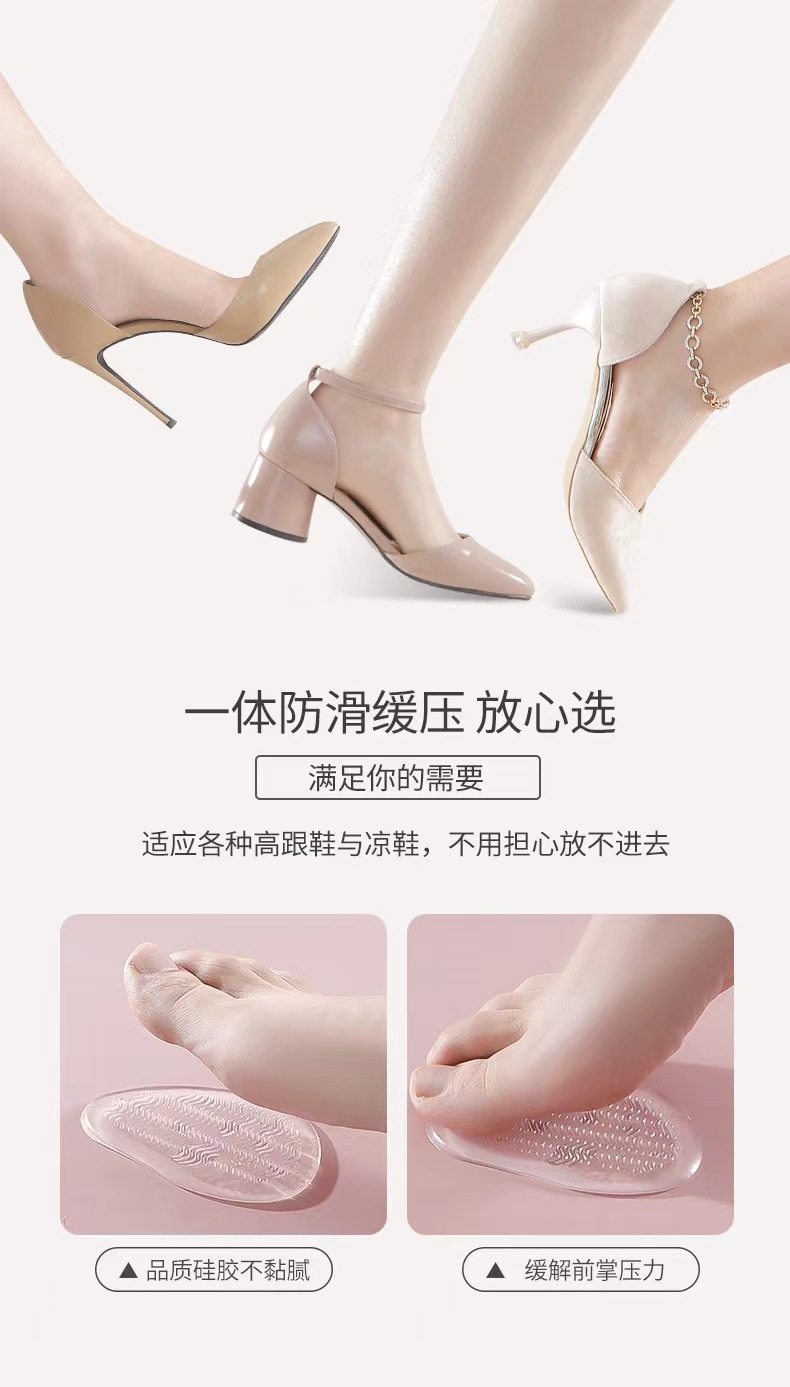 Silicone forefoot pad women's shoes big change small artifact thickened non-slip anti-pain forefoot pad high heel shoes insole half size pad