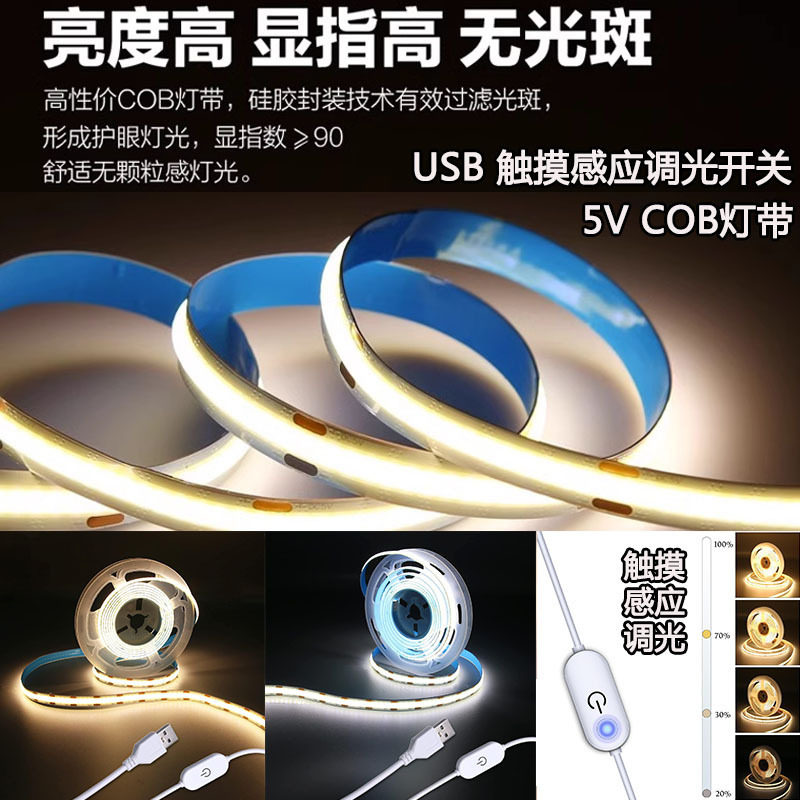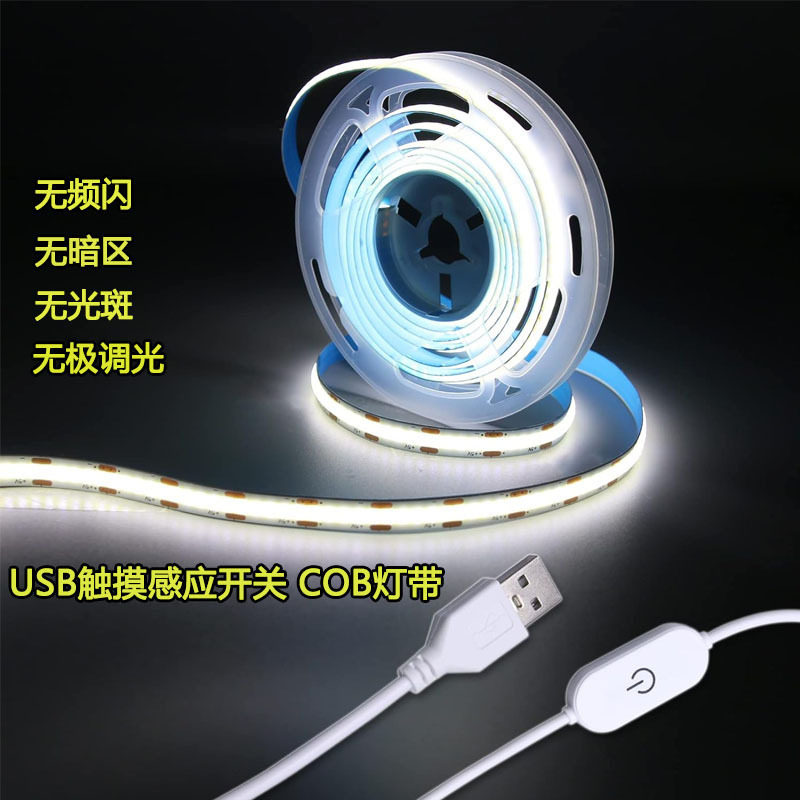 Led Touch Cob Light Strip Self-Adhesive Waterproof USB Plug-In 5V Flexible Light Strip Kitchen Wine Cabinet USB Dimmable