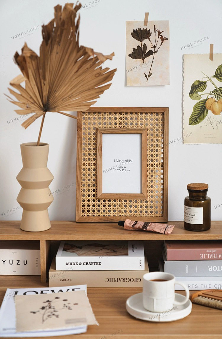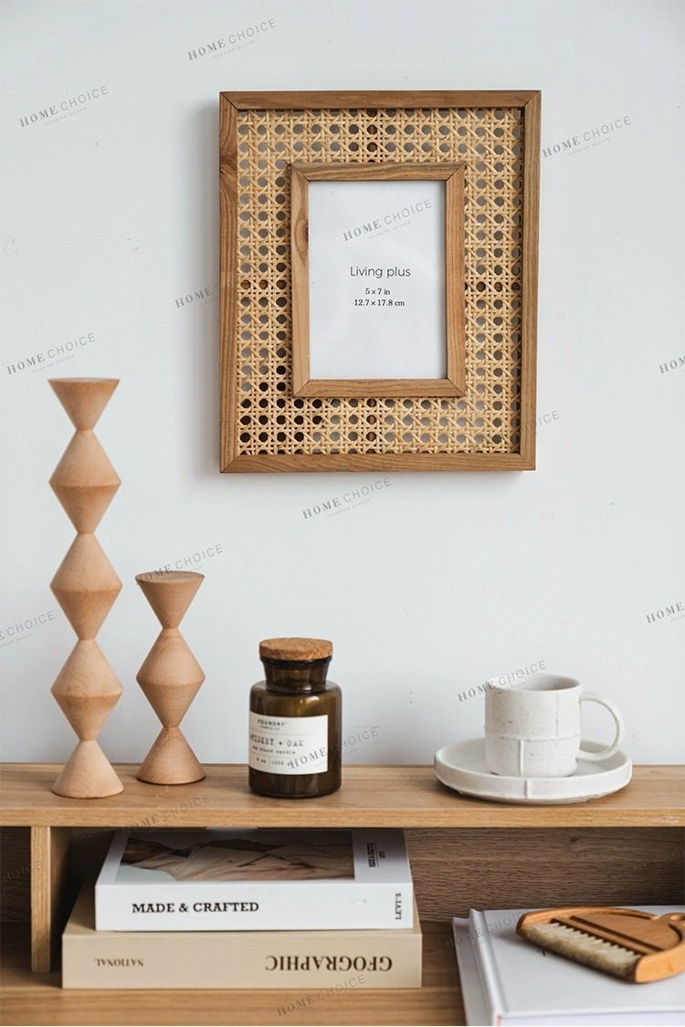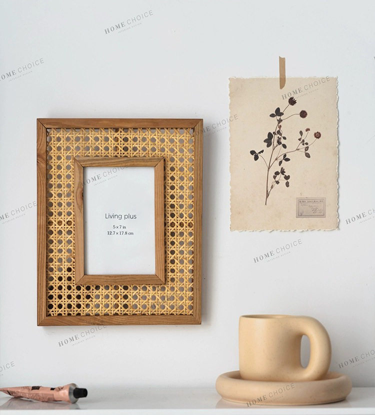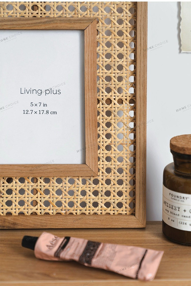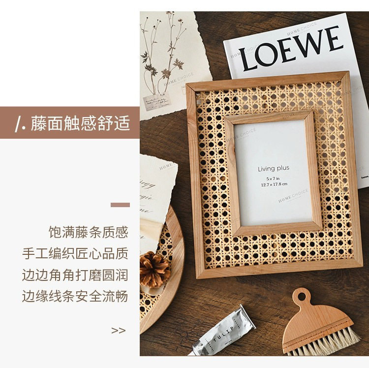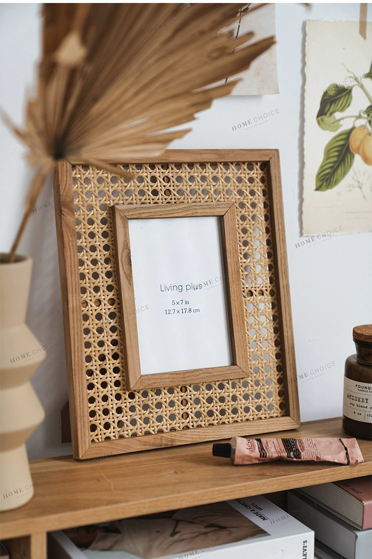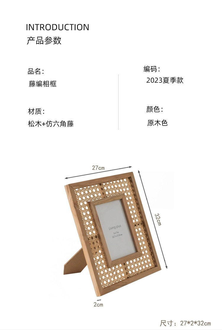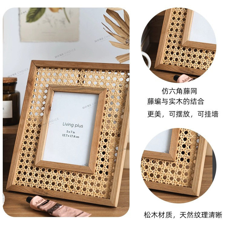 Japanese-style solid wood rattan Photo Frame 7-inch rectangular wall hanging picture frame ins photography shooting decorative props photo frame in stock