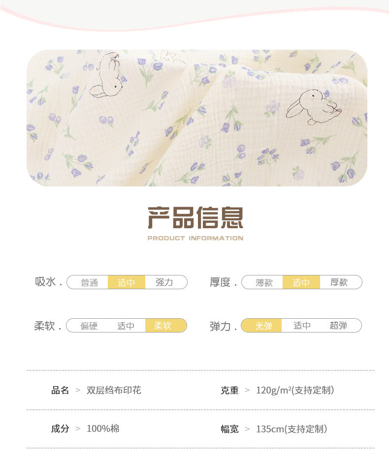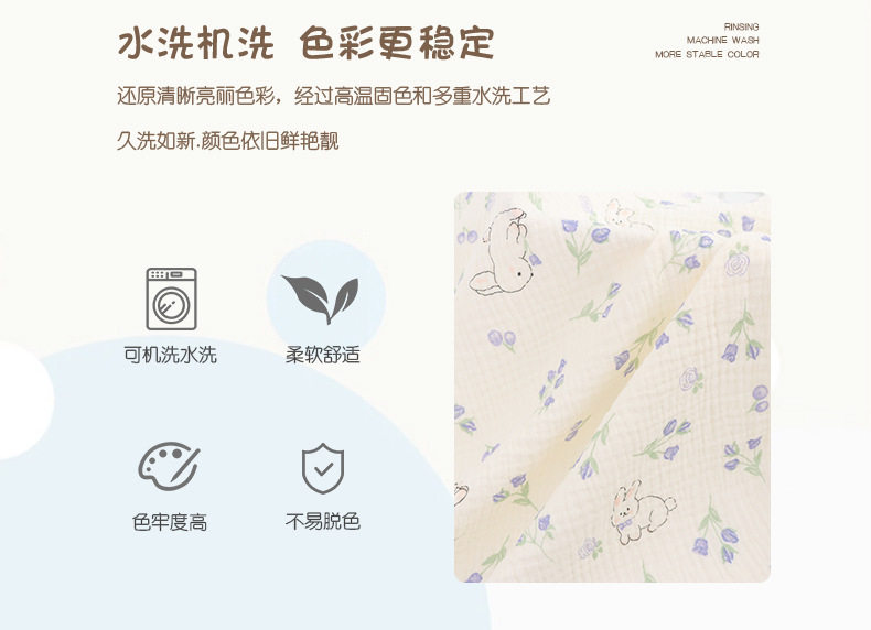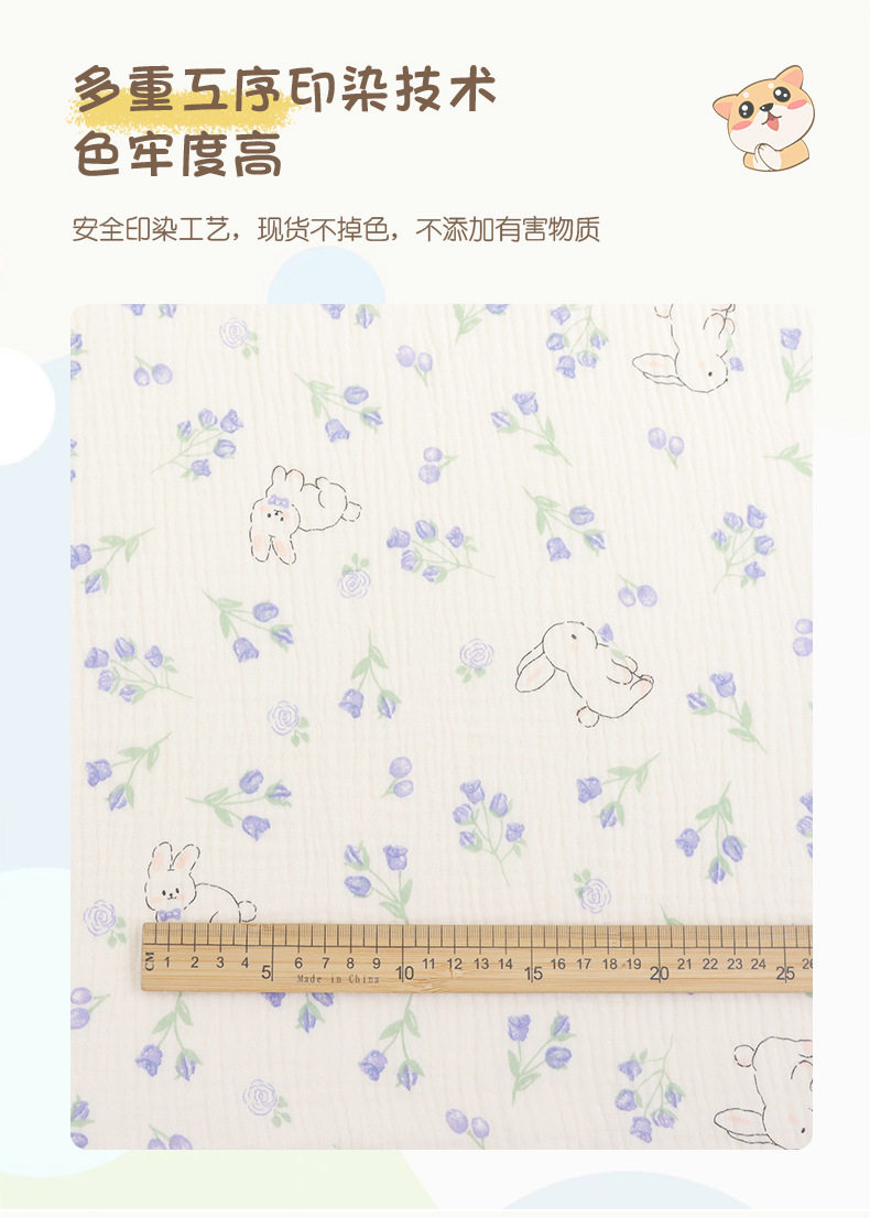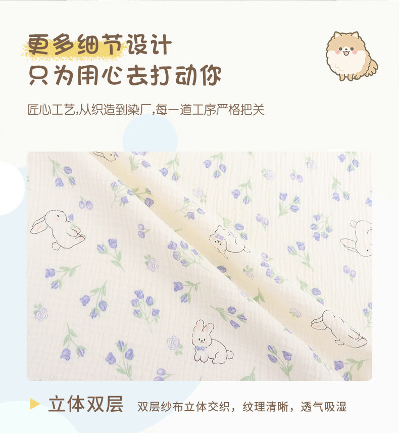 Nanyao cotton double-layer gauze baby digital printing blue rabbit double-layer crepe washed baby home wear fabric