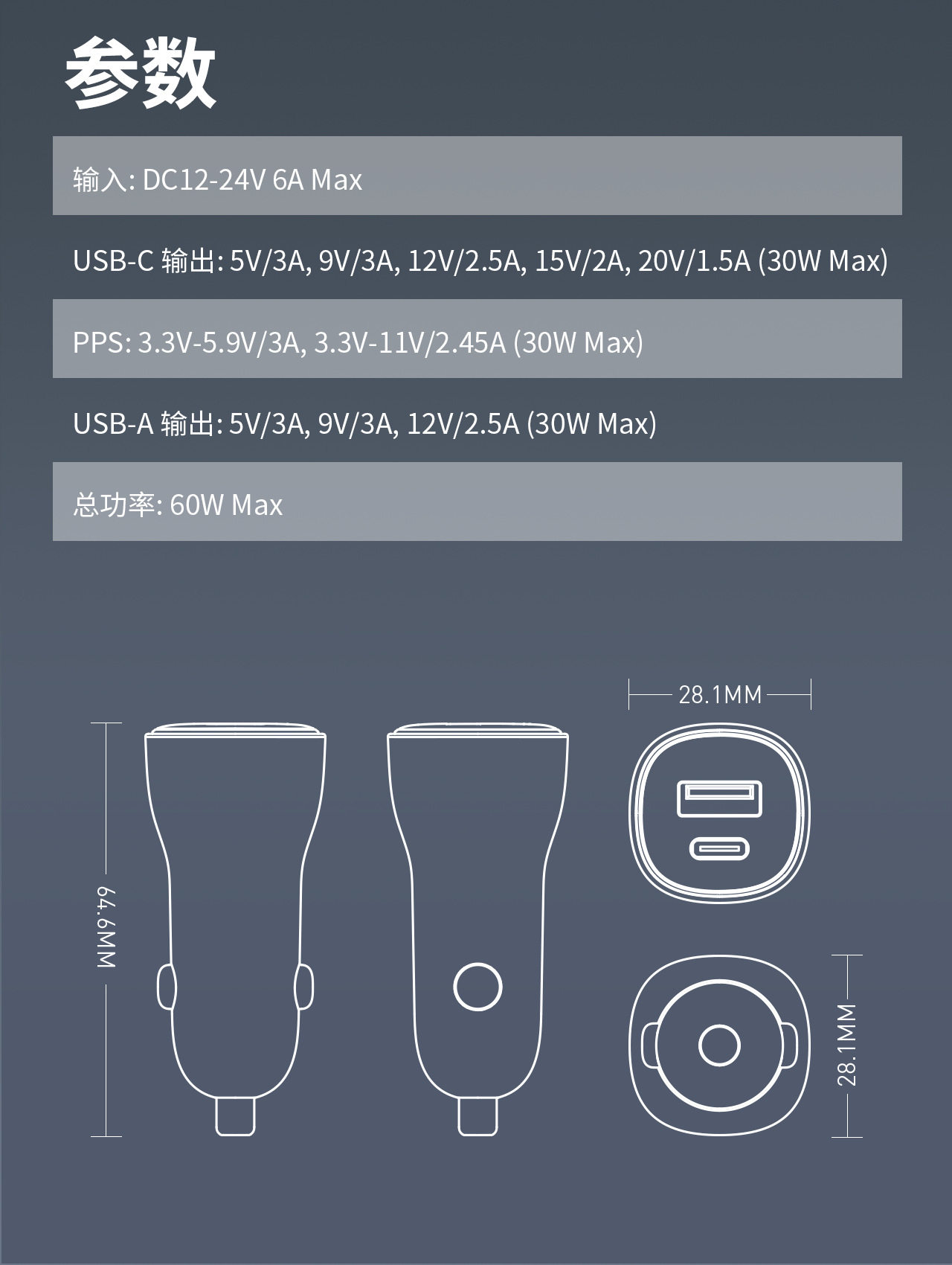 | Model | C103-60w fast charging car charger,C104-60w fast charging car charger,C105-30w fast charging car charger,C106-30w fast charging car charger |