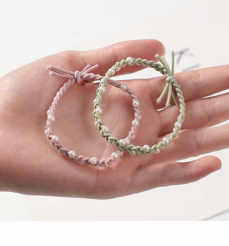 Hand-woven pearl hair band women's high-grade ins head rope ball head small fragrance hair rope large elastic rubber band