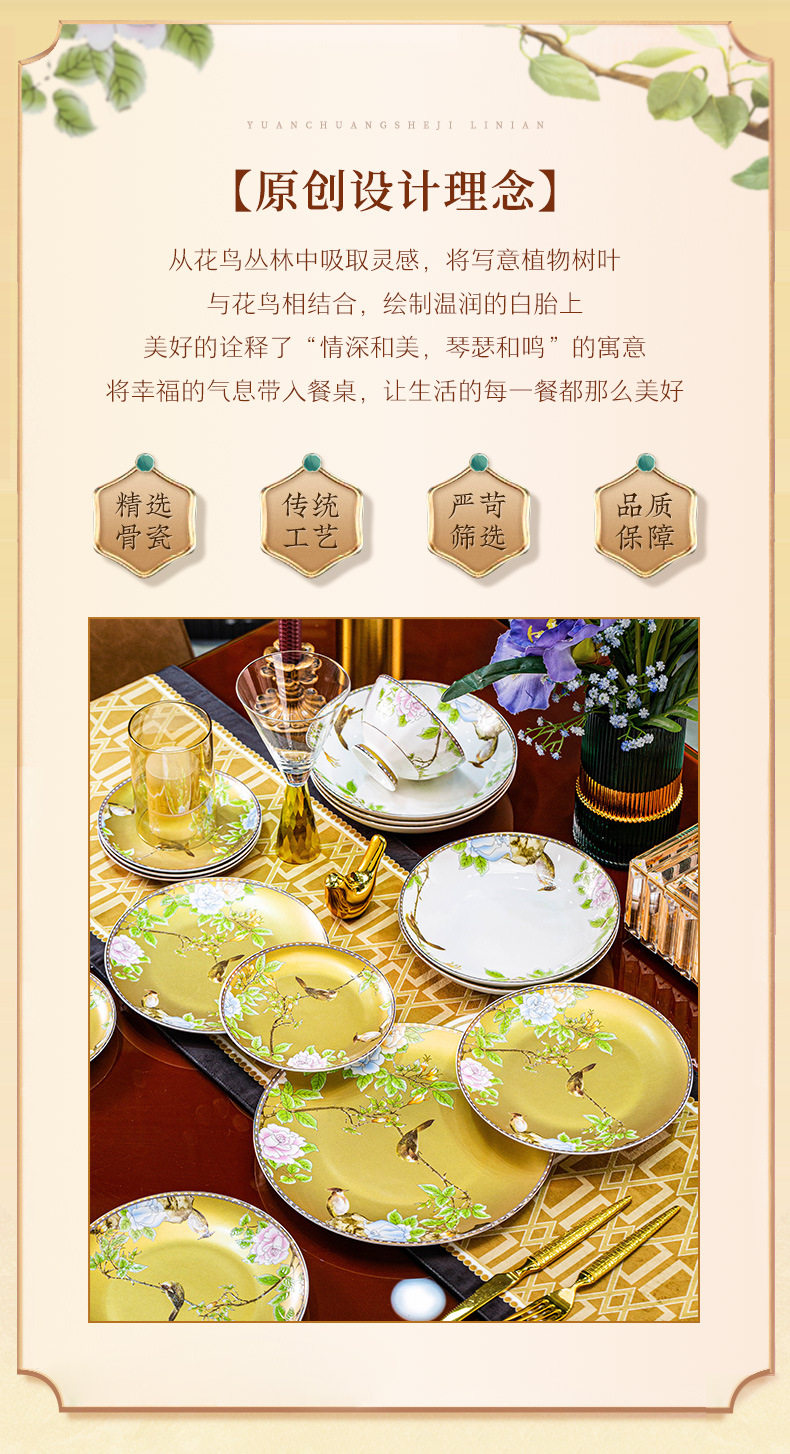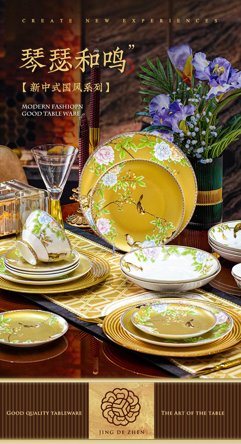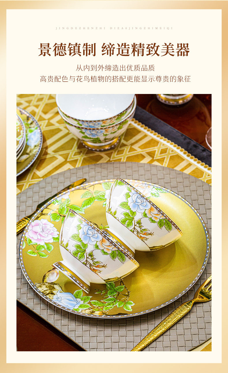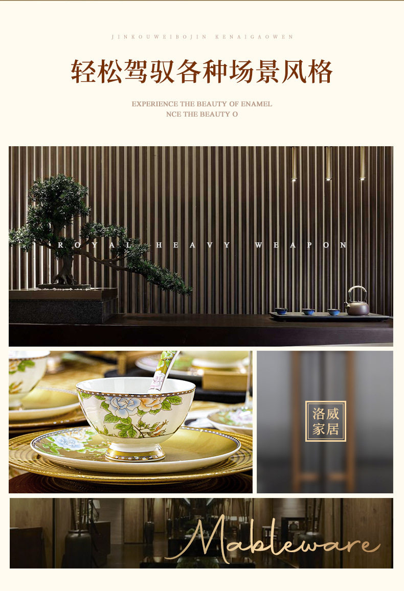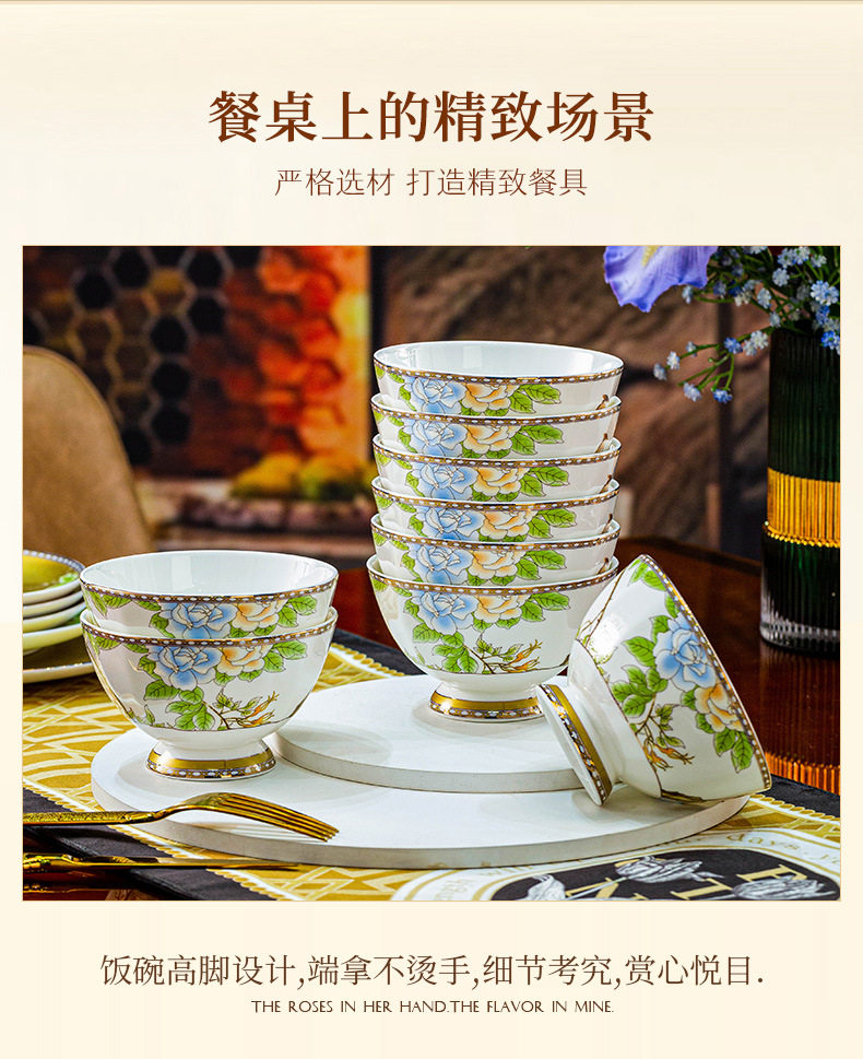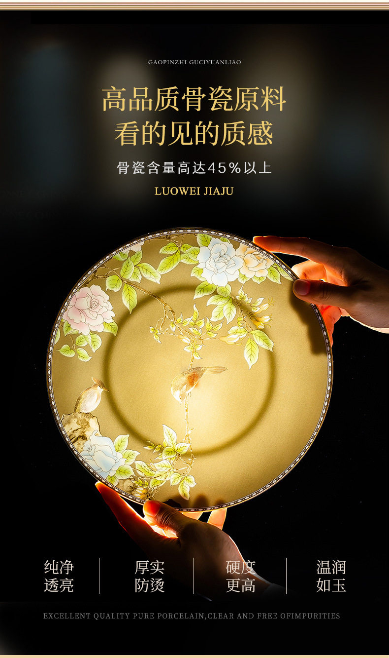 Luoweiqinshe Ming Jingdezhen Ceramic Bowl Set Household Bone China Accessible Luxury Tableware Gift Box Set High-end