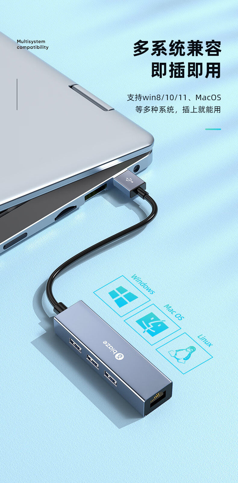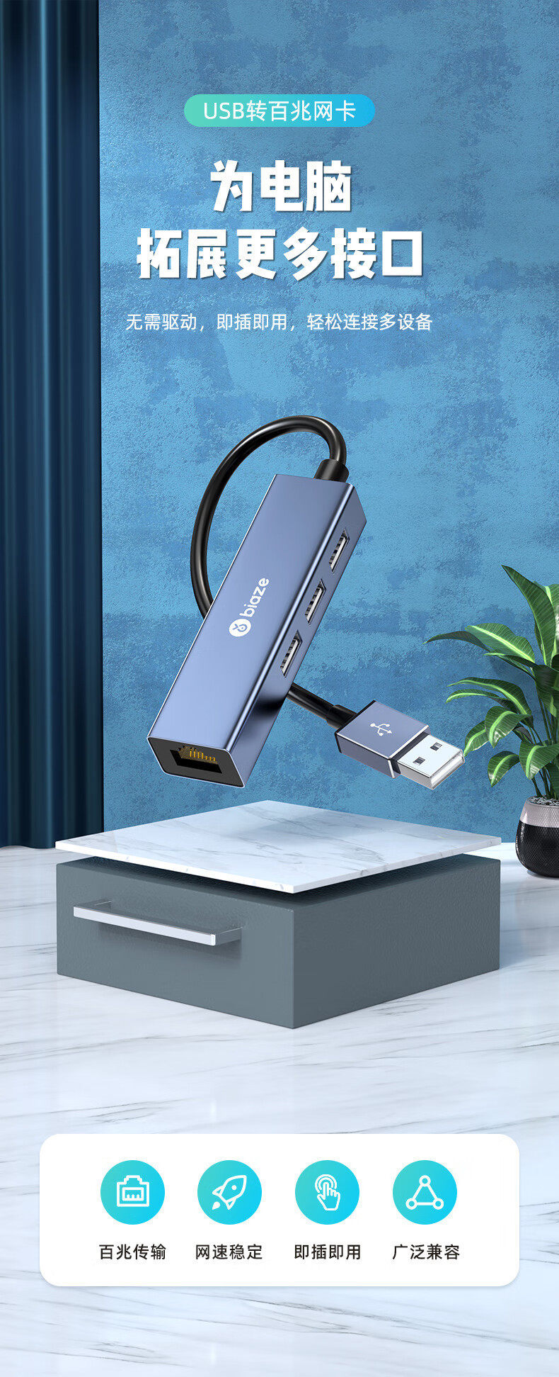 Biaz USB to 100 m network port docking station splitter hub notebook network cable adapter