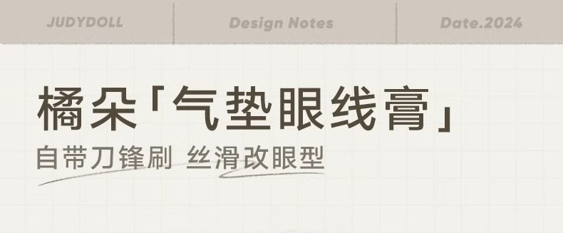 Judydoll Orange Blossom Cushion Eyeliner Smooth and Smooth-Flowing Brown Eyeliner with Built-In Blade Brush for Beginners and Novices