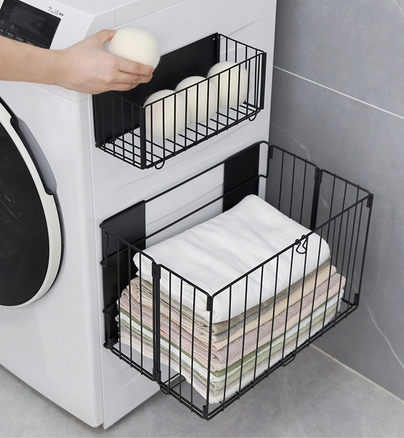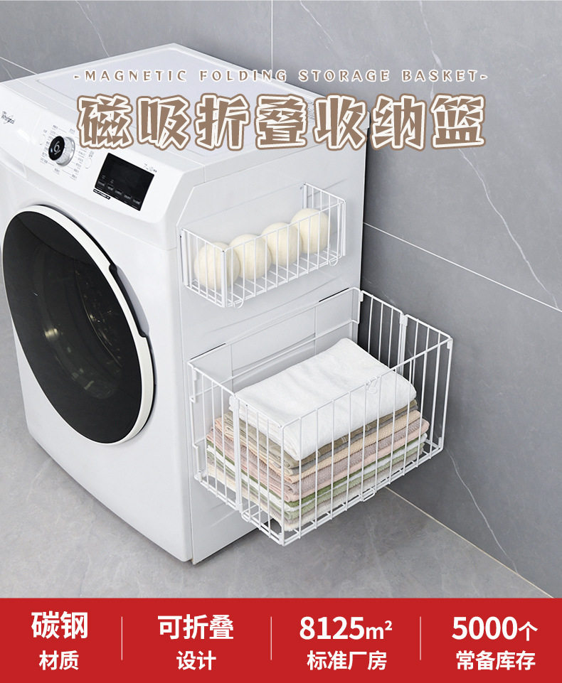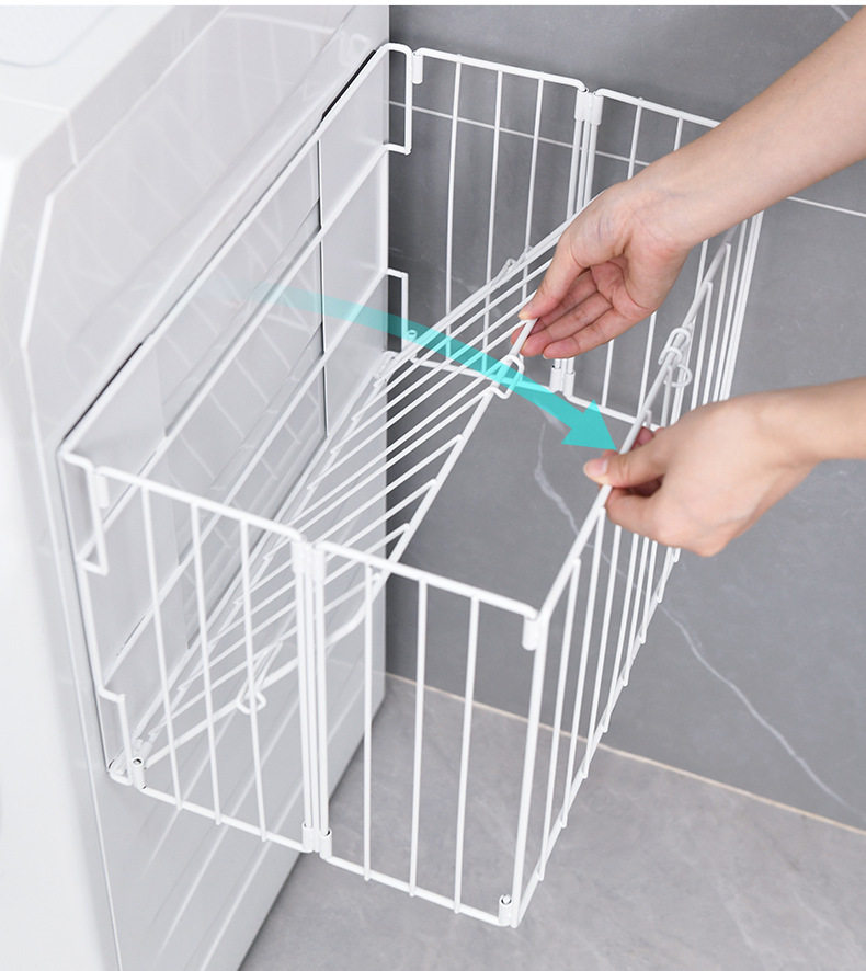 Magnetic Washing Machine Side Foldable Laundry Basket Wall-Mounted Dirty Clothes Storage Basket Bathroom Storage Basket No Drilling Required