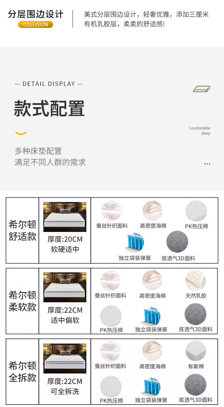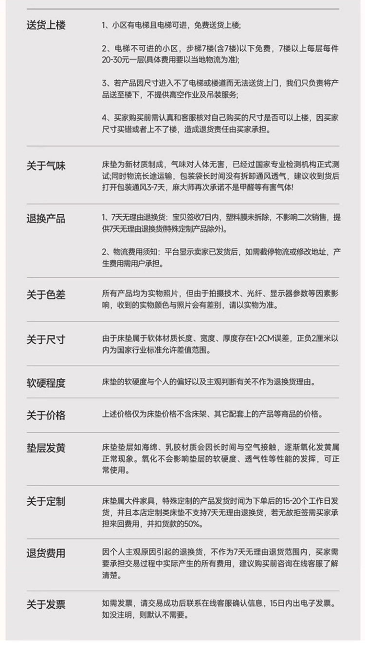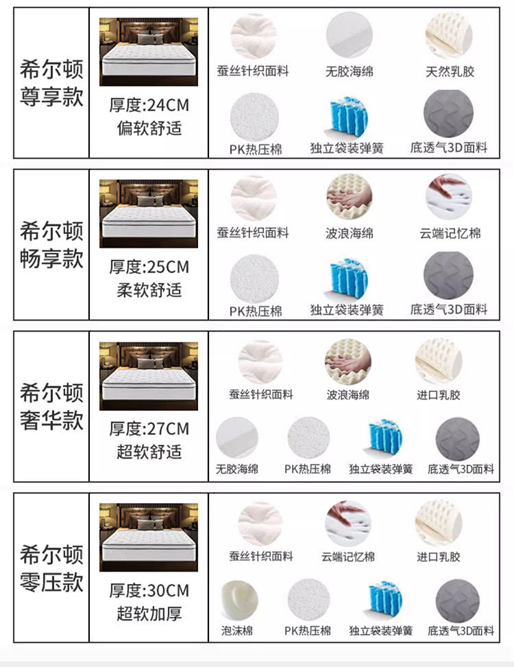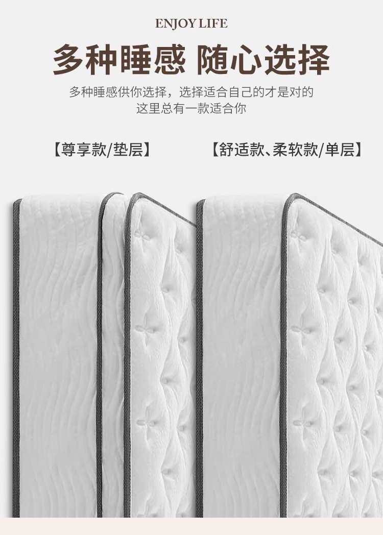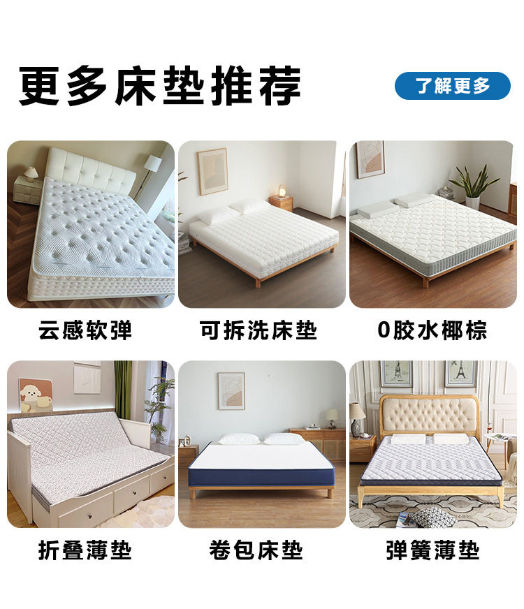 | Color | Comfortable single layer (moderate softness and hardness, about 20cm thick),Soft single layer (moderate, soft and thick, about 22cm),Exclusive cushion layer (softer and comfortable, about 24cm thick),Enjoy the cushion layer (soft and comfortable, about 25cm thick),Luxurious cushion layer (soft sleeping feeling is about 27cm thick),Zero-pressure cushion layer (soft and thick, about 30cm),Fully disassembled and hard (harder and comfortable, about 22cm thick),Enjoy an upgraded version (soft and comfortable, thickness about 25cm) |