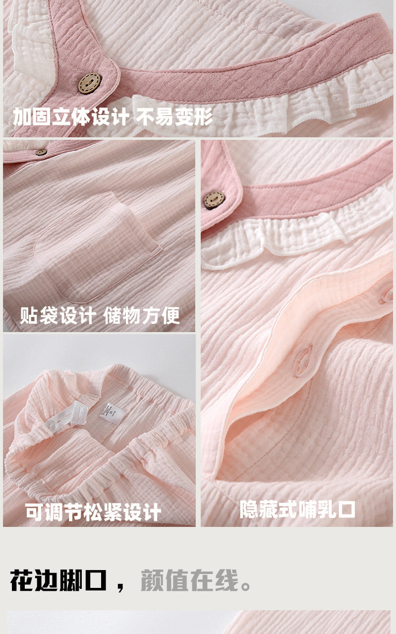 Pure Cotton Yuezi Suit Double-Layer Cotton Yarn Postpartum Pregnant Women's Nursing Suit Spring and Summer Sweat-Absorbing Breathable Maternal Nursing Home Suit Set