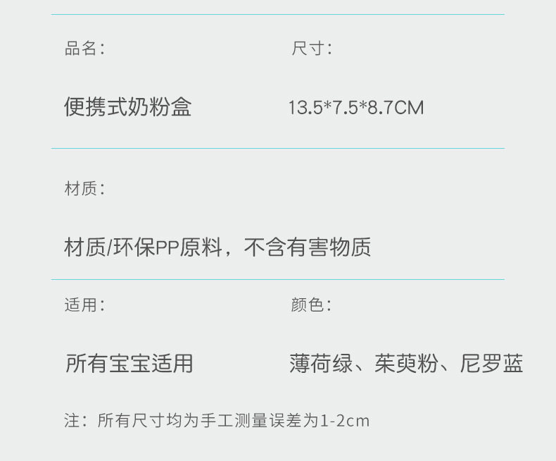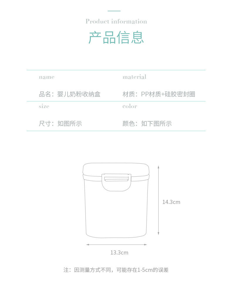 Foreign trade baby milk powder box portable large capacity milk powder storage tank sealed moisture-proof packing box food supplement box