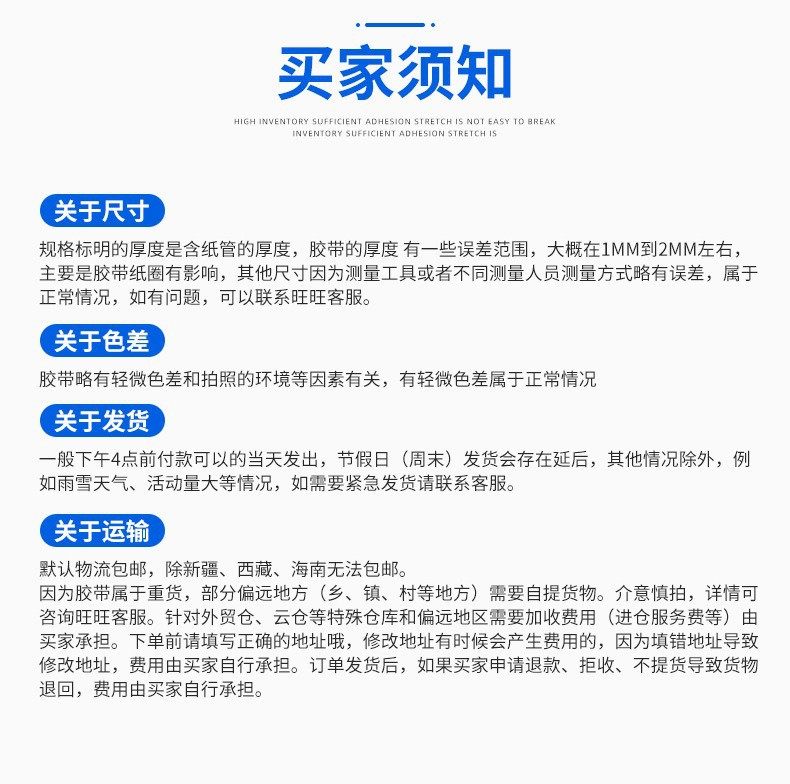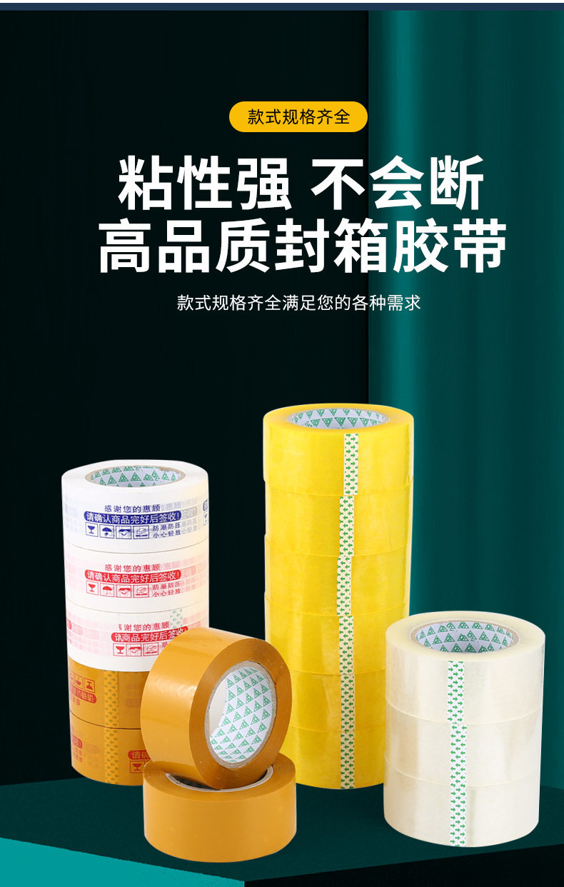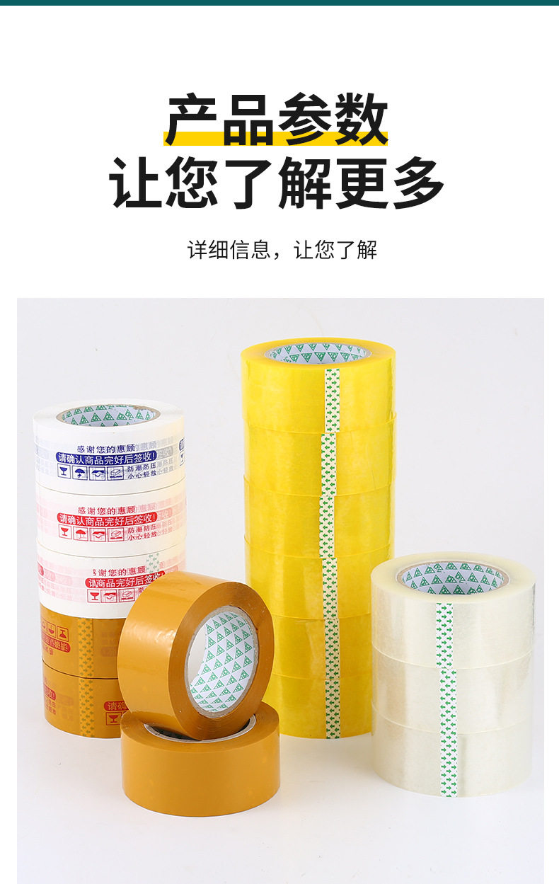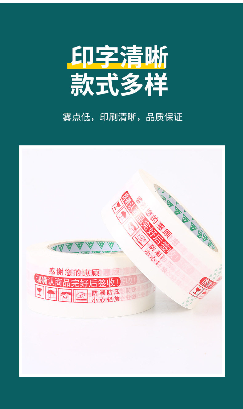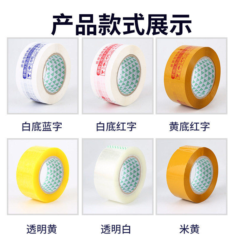 | Specifications and models | Transparent yellow; width 4.5/length 110/thickness 2.0 (full box of 54 rolls),Transparent yellow; width 4.5/length 150/thickness 2.5 (full box of 48 rolls),Transparent yellow; width 4.5/length 200/thickness 3.0 (full box of 36 rolls),Transparent yellow; width 5/length 110/thickness 2.0 (full box of 54 rolls),Transparent yellow; width 5/length 150/thickness 2.5 (full box of 48 rolls),Transparent yellow; width 5/length 200/thickness 3.0 (full box of 36 rolls),Transparent yellow; width 5.5/length 110/thickness 2.0 (full box of 45 rolls),Transparent yellow; width 5.5/length 150/thickness 2.5 (full box of 40 rolls),Transparent yellow; width 5.5/length 200/thickness 3.0 (full box of 30 rolls),Transparent yellow; width 6/length 110/thickness 2.0 (full box of 45 rolls),Transparent yellow; width 6/length 150/thickness 2.5 (full box of 40 rolls),Transparent yellow; width 6/length 200/thickness 3.0 (full box of 30 rolls),Transparent yellow; width 4/length 150/thickness 2.5 (full box of 56 rolls),Transparent yellow; width 8/length 150/thickness 2.5 (full box of 24 rolls),Transparent yellow; width 4.5*22*0.7 (a very small roll) 90 rolls in the whole box,Transparent white; width 4.5/length 110/thickness 2.0 (full box of 54 rolls),Transparent white; width 4.5/length 150/thickness 2.5 (full box of 48 rolls),Transparent white; width 4.5/length 200/thickness 3.0 (full box of 36 rolls),Transparent white; width 5/length 110/thickness 2.0 (full box of 54 rolls),Transparent white; width 5/length 150/thickness 2.5 (full box of 48 rolls),Transparent white; width 5/length 200/thickness 3.0 (full box of 36 rolls),Transparent white; width 5.5/length 110/thickness 2.0 (full box of 45 rolls),Transparent white; width 5.5/length 150/thickness 2.5 (full box of 40 rolls),Transparent white; width 5.5/length 200/thickness 3.0 (full box of 30 rolls),Transparent white; width 6/length 110/thickness 2.0 (full box of 45 rolls),Transparent white; width 6/length 150/thickness 2.5 (full box of 40 rolls),Transparent white; width 6/length 200/thickness 3.0 (full box of 30 rolls),Transparent white; width 4/length 150/thickness 2.5 (full box of 56 rolls),Transparent white; width 8/length 150/thickness 2.5 (full box of 24 rolls),Beige opaque; width 4.5/length 110/thickness 2.0 (full box of 54 rolls),Beige opaque; width 4.5/length 150/thickness 2.5 (full box of 48 rolls),Beige opaque; width 4.5/length 200/thickness 3.0 (full box of 36 rolls),Beige opaque; width 5/length 110/thickness 2.0 (full box of 54 rolls),Beige opaque; width 5/length 150/thickness 2.5 (full box of 48 rolls),Beige opaque; width 5/length 200/thickness 3.0 (full box of 36 rolls),Beige opaque; width 5.5/length 110/thickness 2.0 (full box of 45 rolls),Beige opaque; width 5.5/length 150/thickness 2.5 (full box of 40 rolls),Beige opaque; width 5.5/length 200/thickness 3.0 (full box of 30 rolls),Beige opaque; width 6/length 110/thickness 2.0 (full box of 45 rolls),Beige opaque; width 6/length 150/thickness 2.5 (full box of 40 rolls),Beige opaque; width 6/length 200/thickness 3.0 (full box of 30 rolls),Beige opaque; width 4/length 150/thickness 2.5 (full box of 56 rolls),Beige opaque; width 8/length 150/thickness 2.5 (full box of 24 rolls),White bottom with red letters; width 4.5/length 150/thickness 2.5 (full box of 48 rolls),Red letters on white background; width 5/length 150/thickness 2.5 (full box of 48 rolls),White bottom with red letters; width 5.5/length 150/thickness 2.5 (full box of 40 rolls),Red letters on white background; width 6/length 150/thickness 2.5 (full box of 40 rolls),White bottom with blue characters; width 4.5/length 150/thickness 2.5 (full box of 48 rolls),White background with blue characters; width 5/length 150/thickness 2.5 (full box of 48 rolls),White bottom and blue characters; width 5.5/length 150/thickness 2.5 (full box of 40 rolls),White background with blue characters; width 6/length 150/thickness 2.5 (full box of 40 rolls),Yellow background with red letters; width 4.5/length 150/thickness 2.5 (full box of 48 rolls),Yellow background with red letters; width 5/length 150/thickness 2.5 (full box of 48 rolls),Yellow background with red characters; width 5.5/length 150/thickness 2.5 (full box of 40 rolls),Yellow background with red letters; width 6/length 150/thickness 2.5 (full box of 40 rolls) |