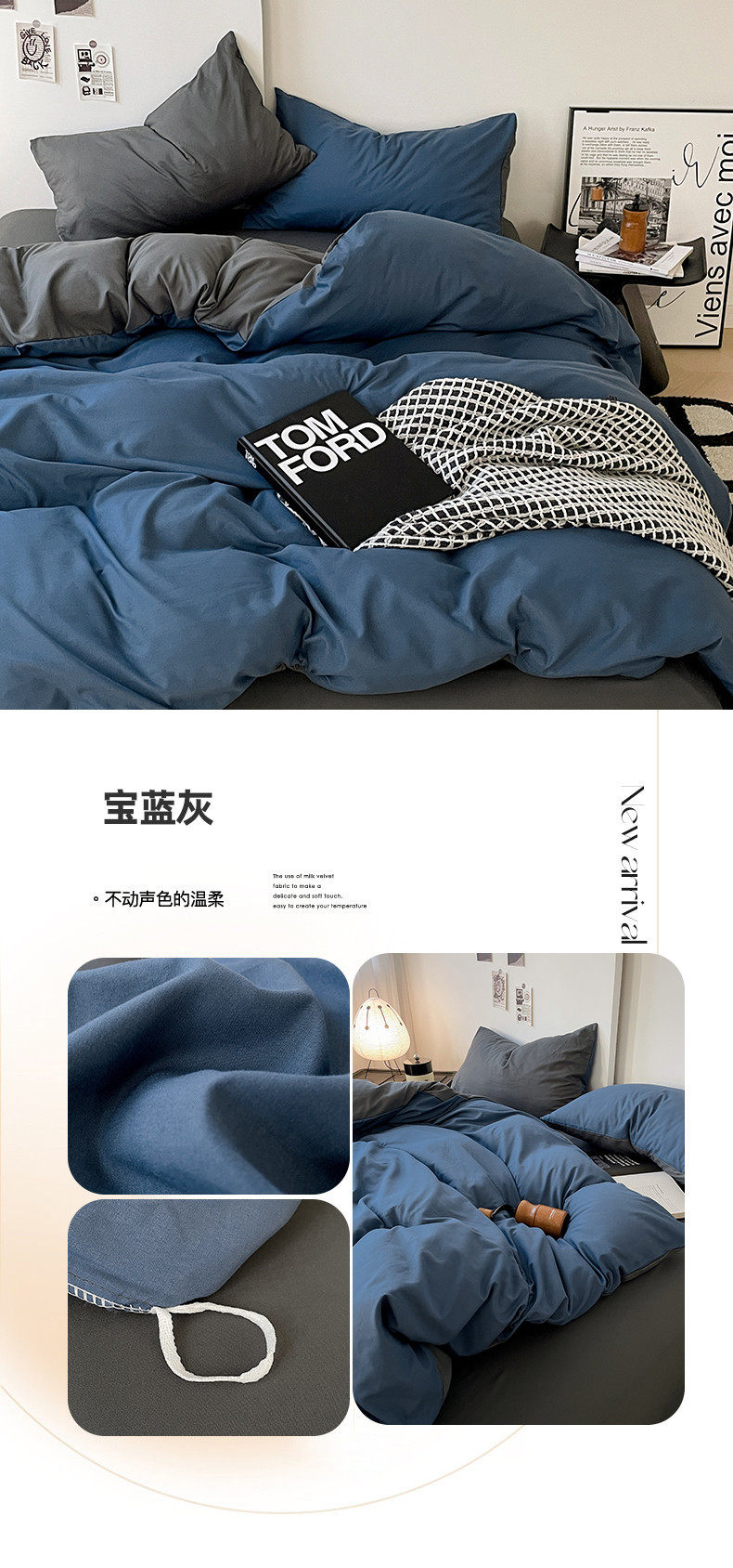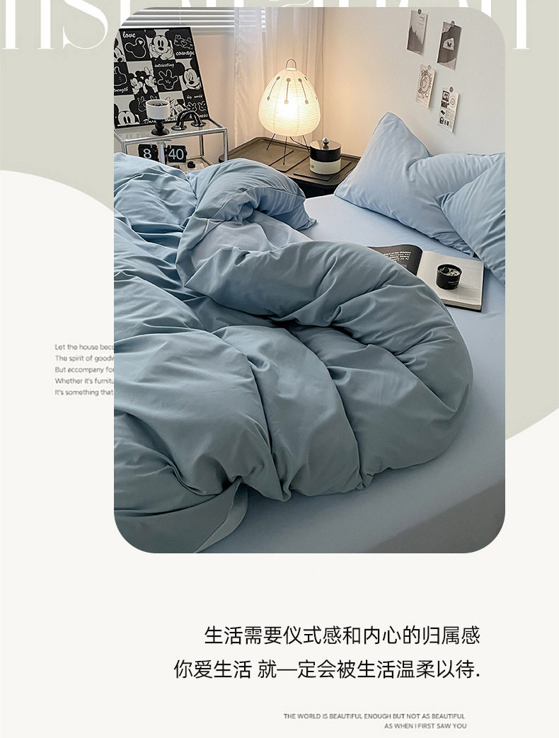 Class A maternal and child-grade ins bed four-piece set washed cotton bed sheet quilt cover bed cover college student dormitory three-piece set
