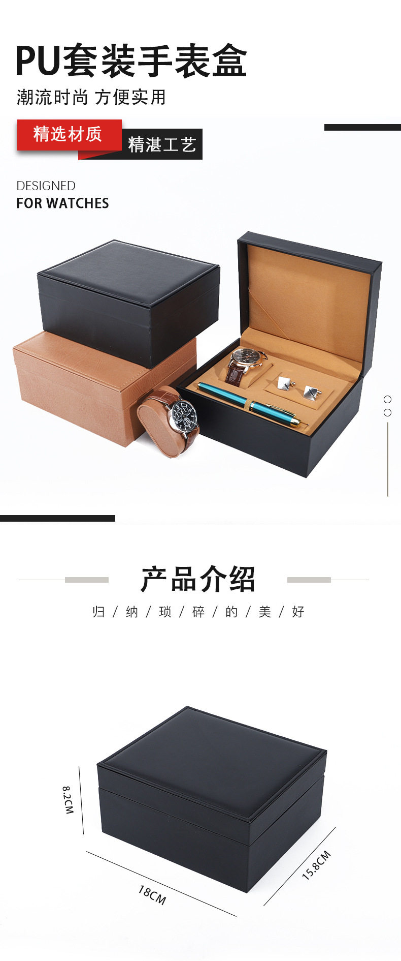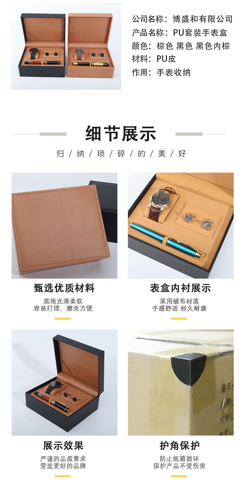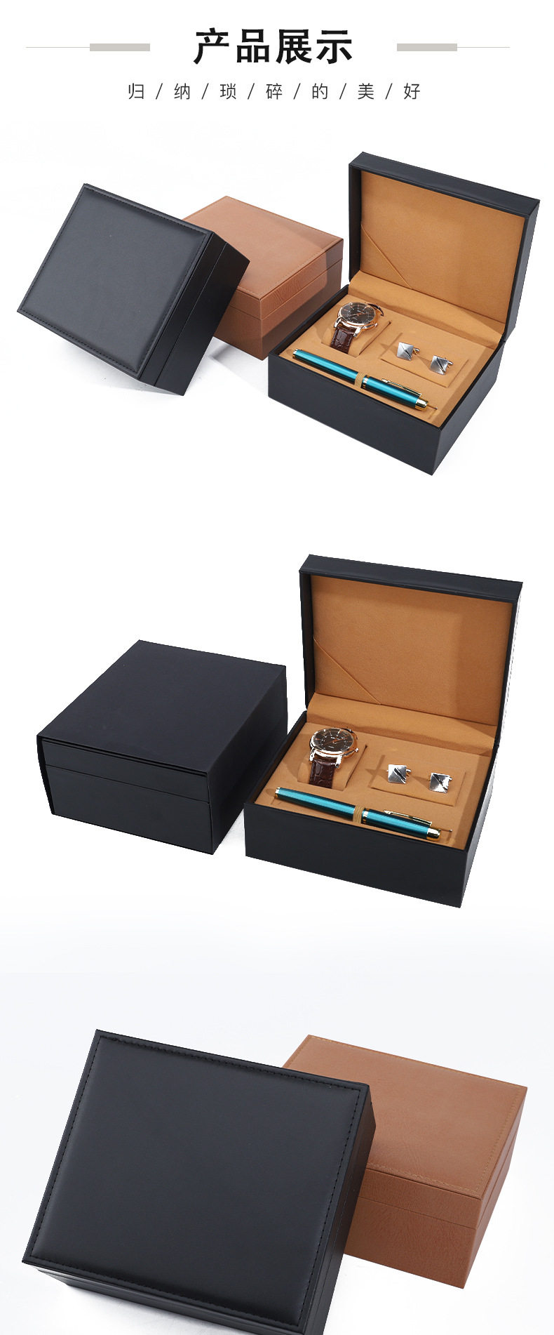 Pu Leather Watch Case Cufflinks Pen Watch Set Box Jewelry Watch Packaging Box Watch Gift Box Wholesale