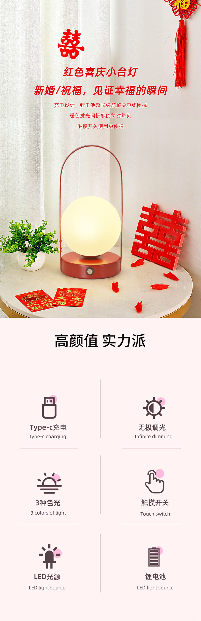 Wedding Table Lamp, Bedroom Bedside Lamp, Wedding Room Dowry Lamp, Wedding Red Pair of Everlasting Lamps, Wedding Gift for Newlyweds