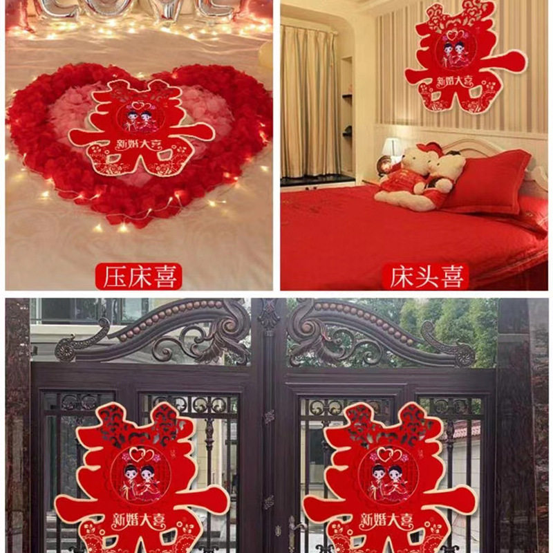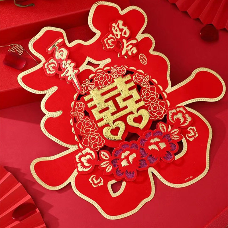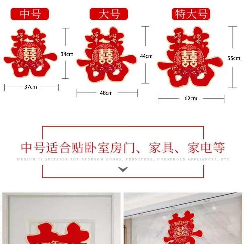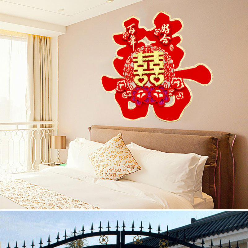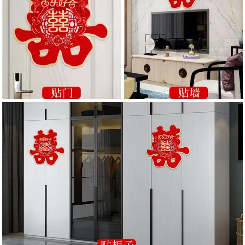 Xi character wedding large three-dimensional flocking Xi hard paper colored gold Xi Zi stickers wedding room door wedding supplies door Xi character