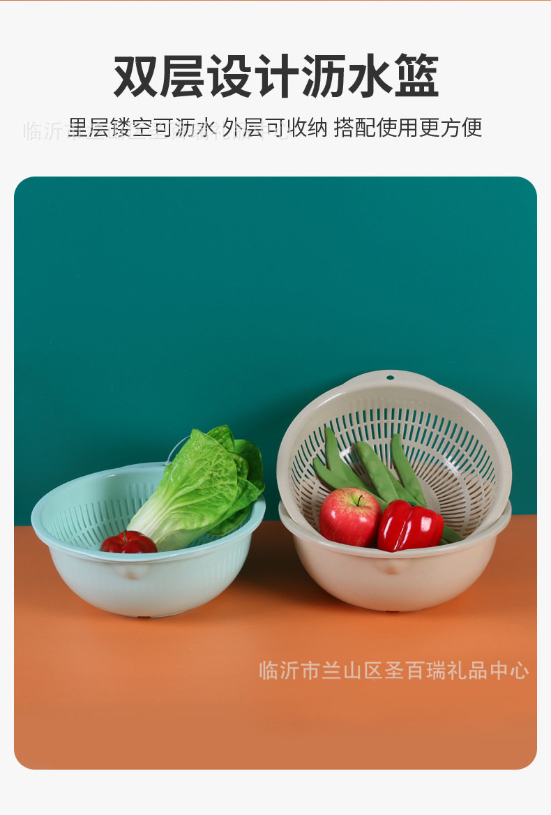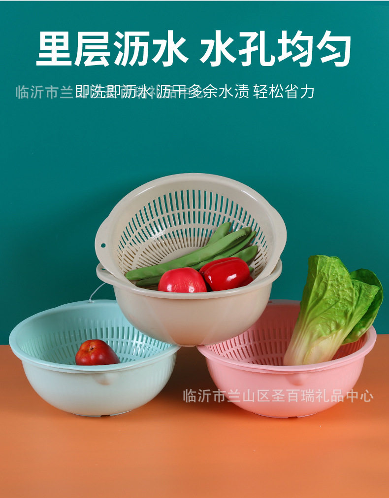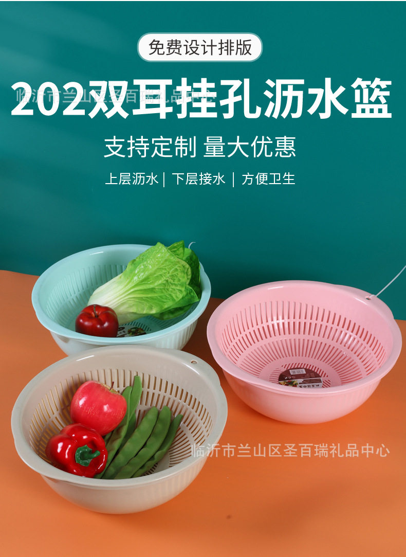 New Double-layer Thickeneded Drain Basket Round Plastic Sink Household Cut Out Fruit and Vegetable Basket Hygienic Hospital Printing Advertising