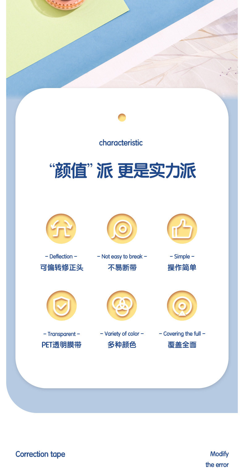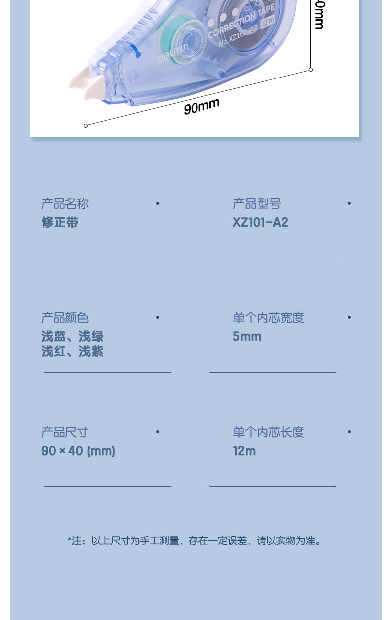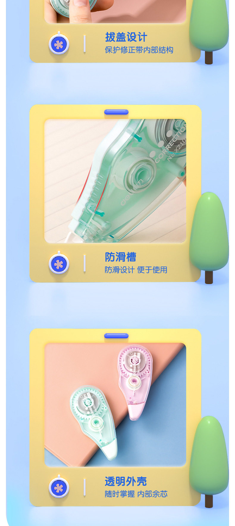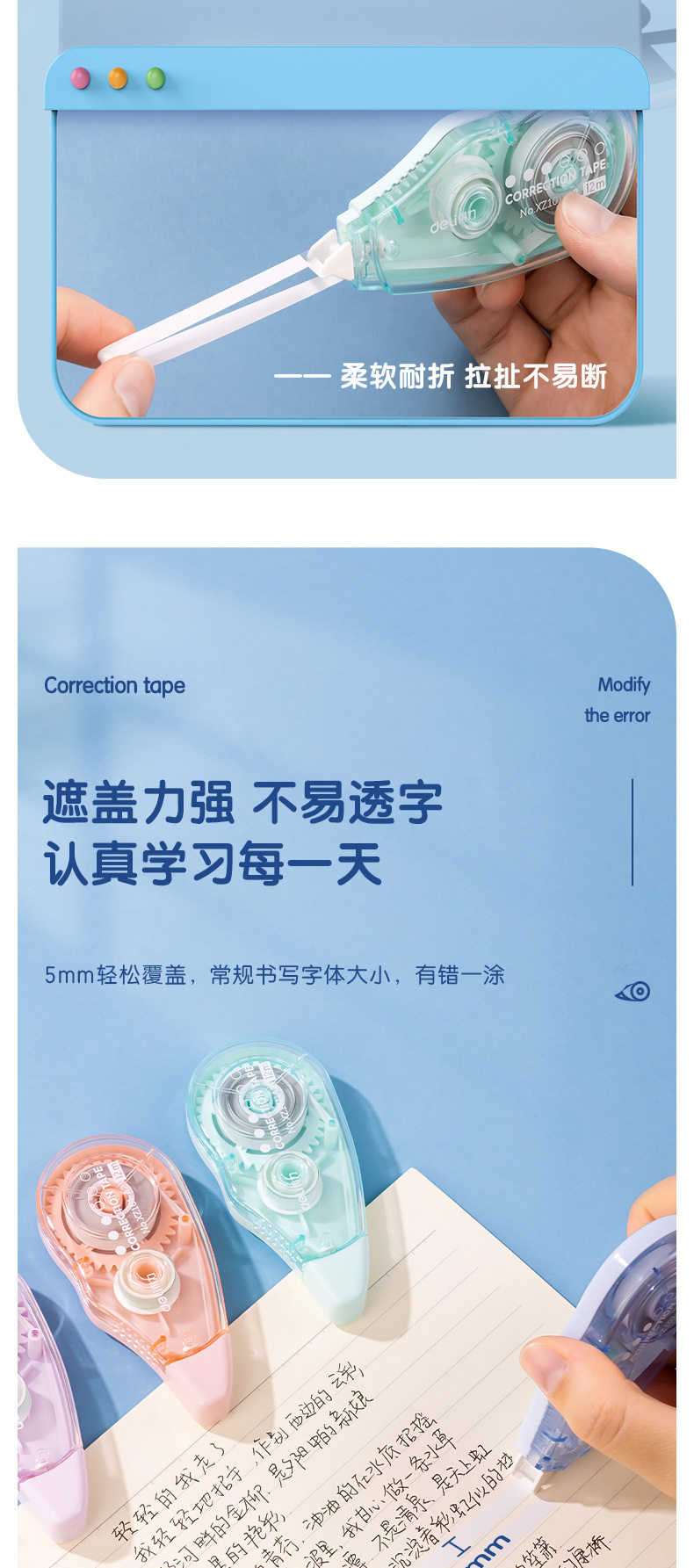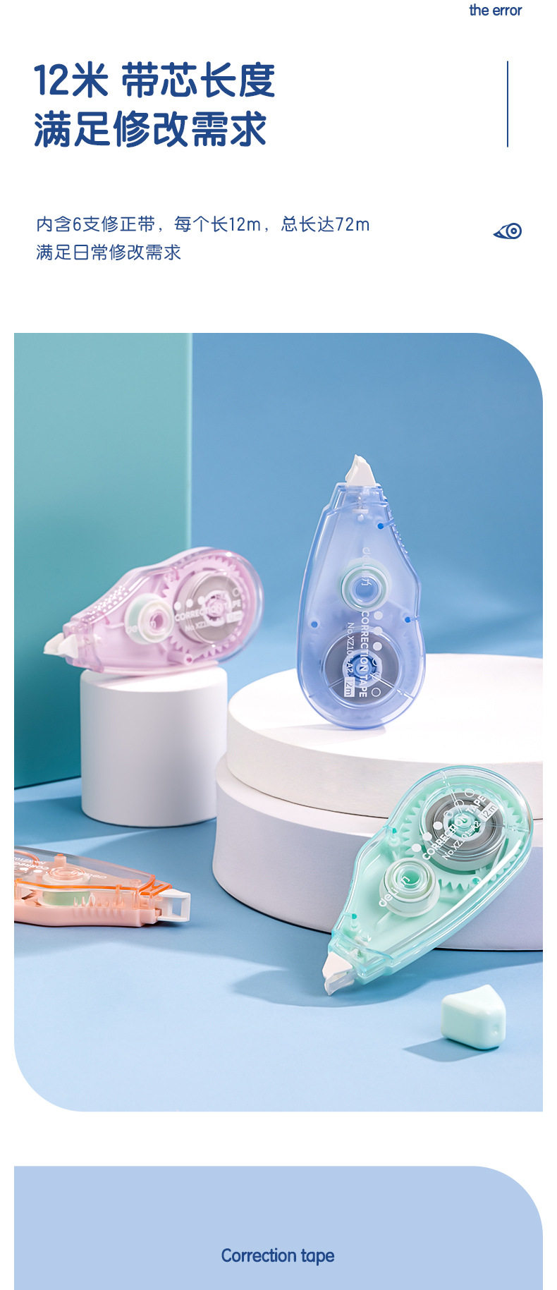 Deli correction tape high-looking large capacity suit correction tape 6 pack children student supplies school stationery 5mm