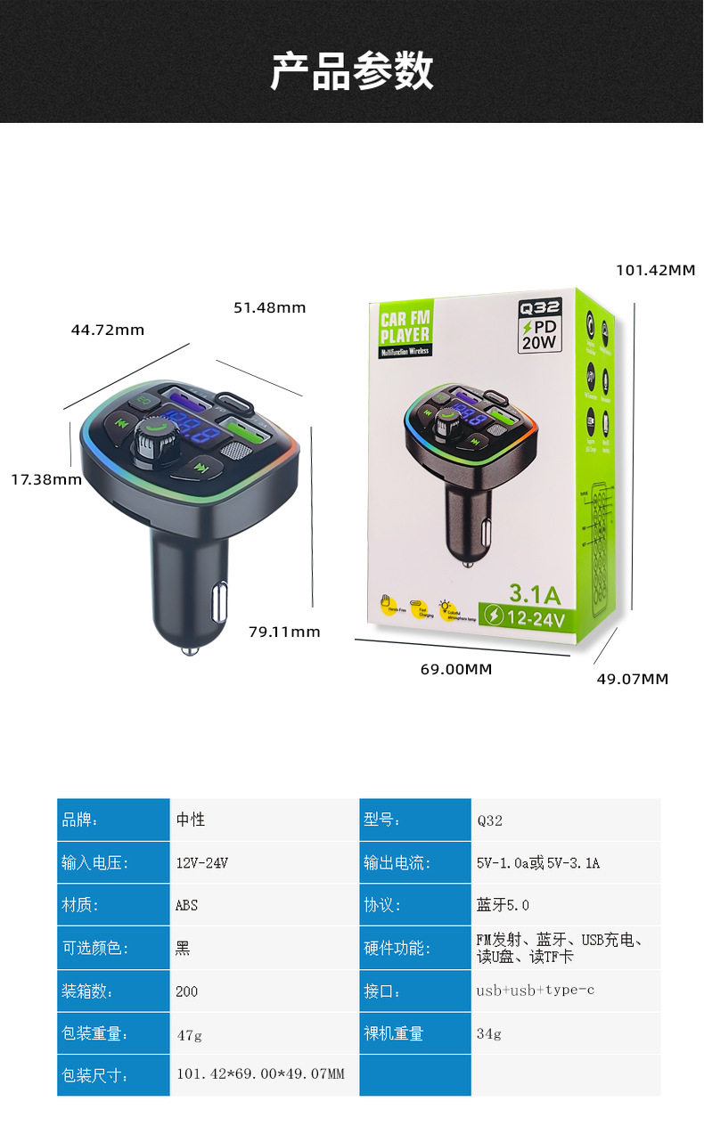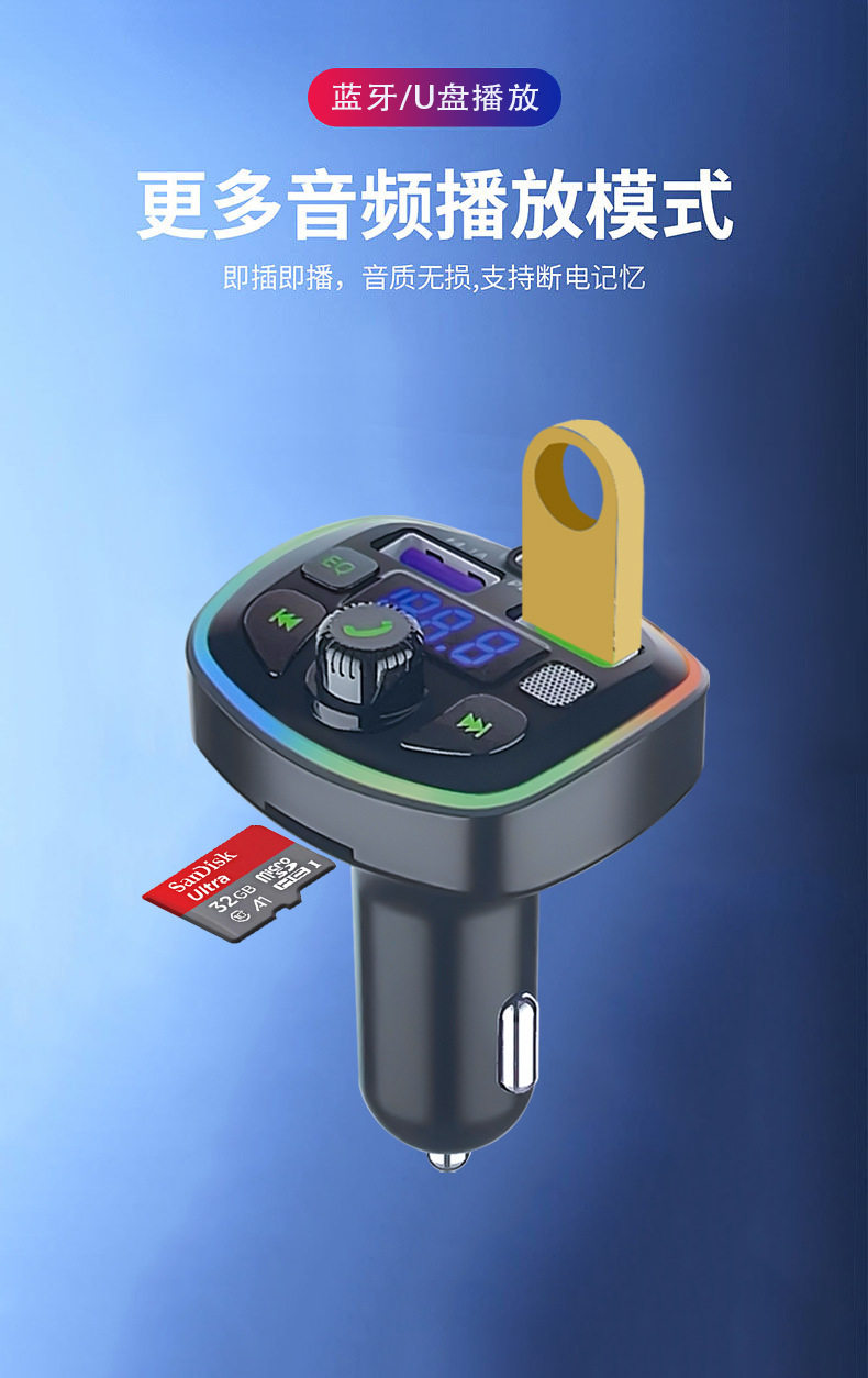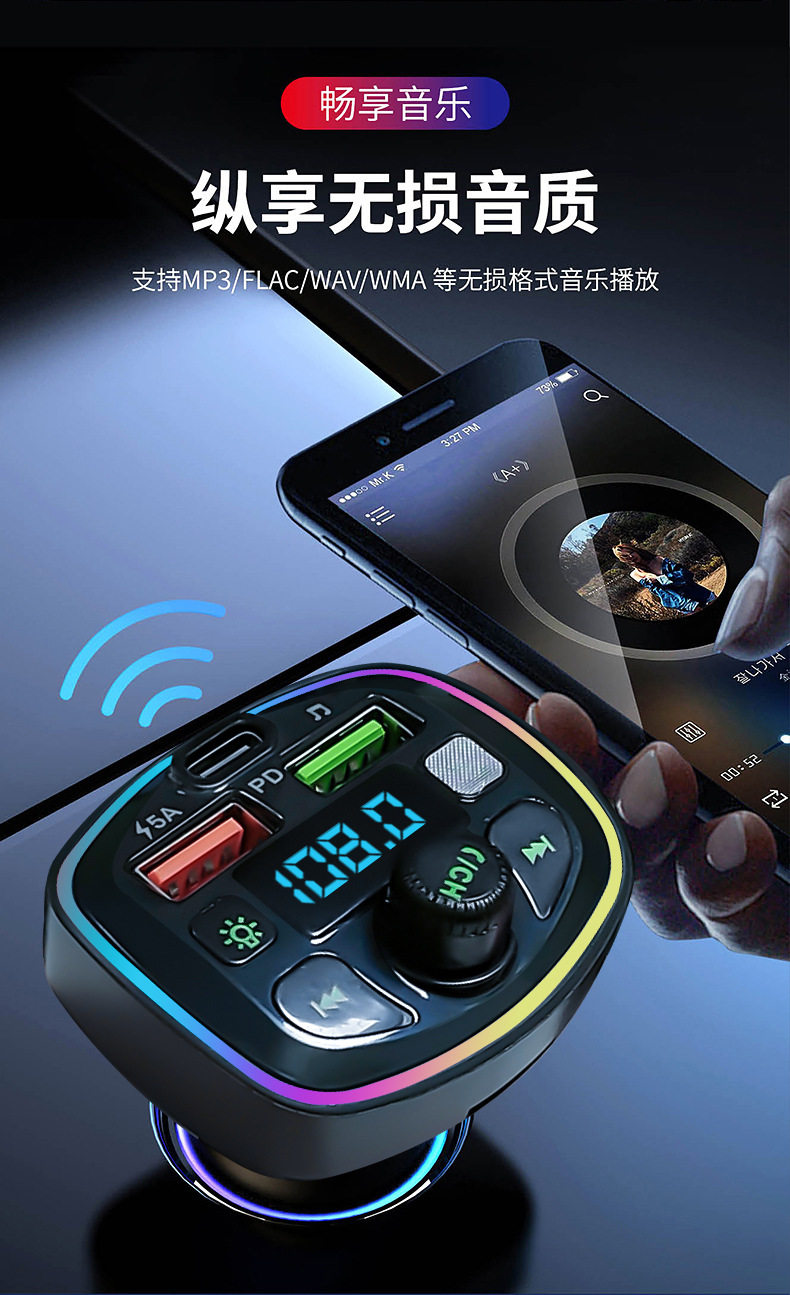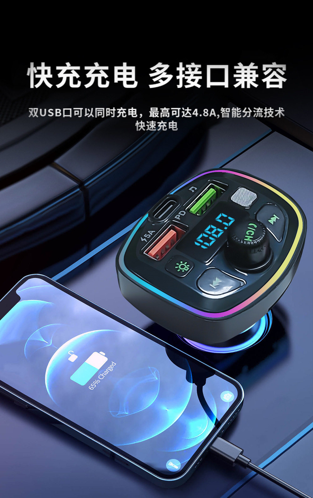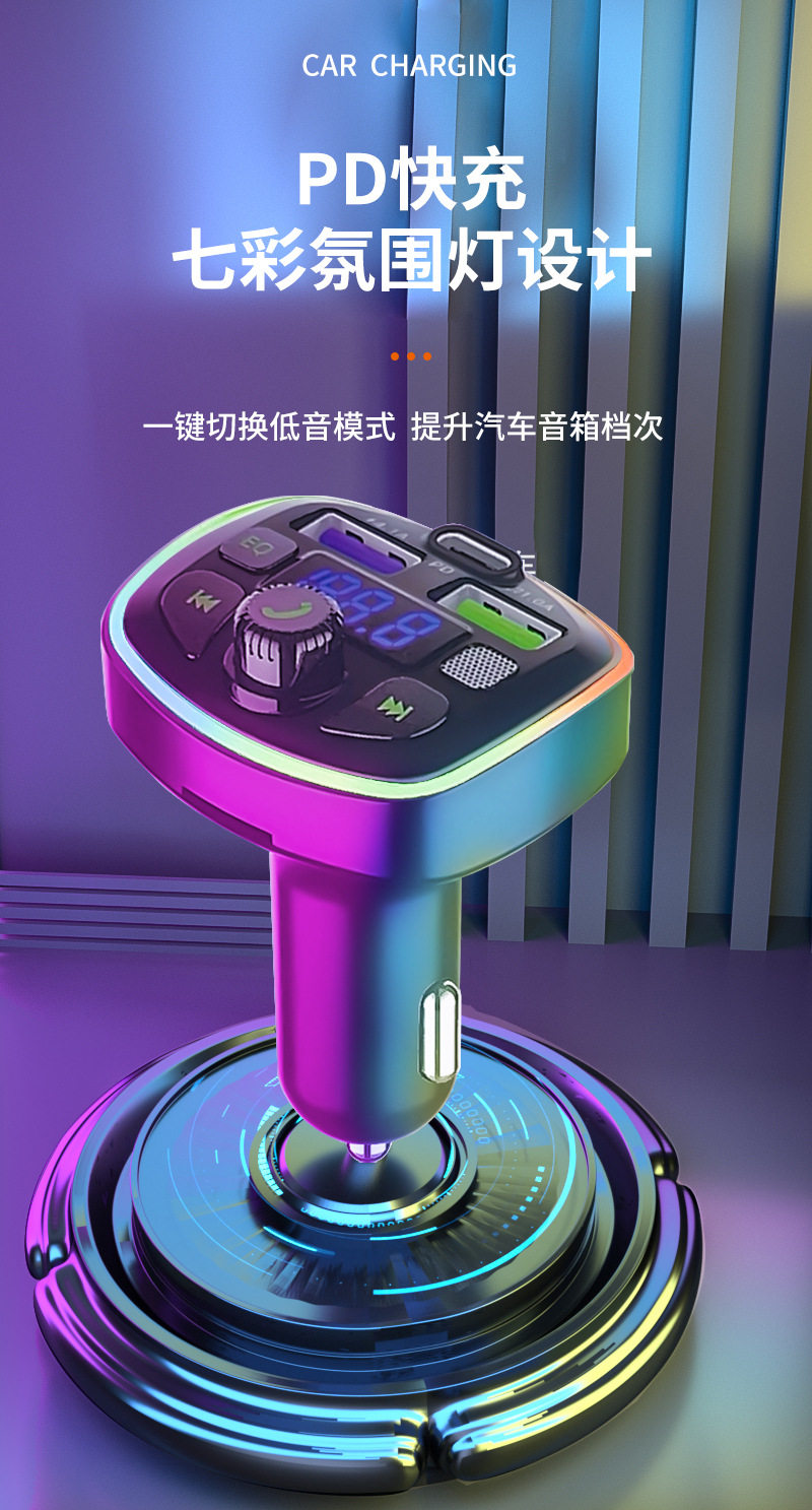 Q7 cross-border car charger bluetooth player dual-mouth color atmosphere light with card cigarette lighter fast charging mp3