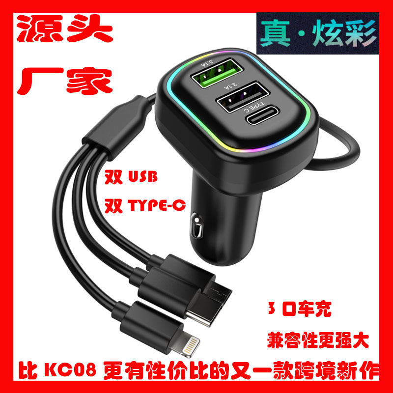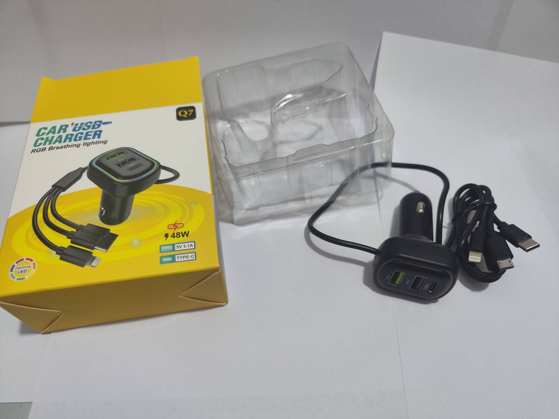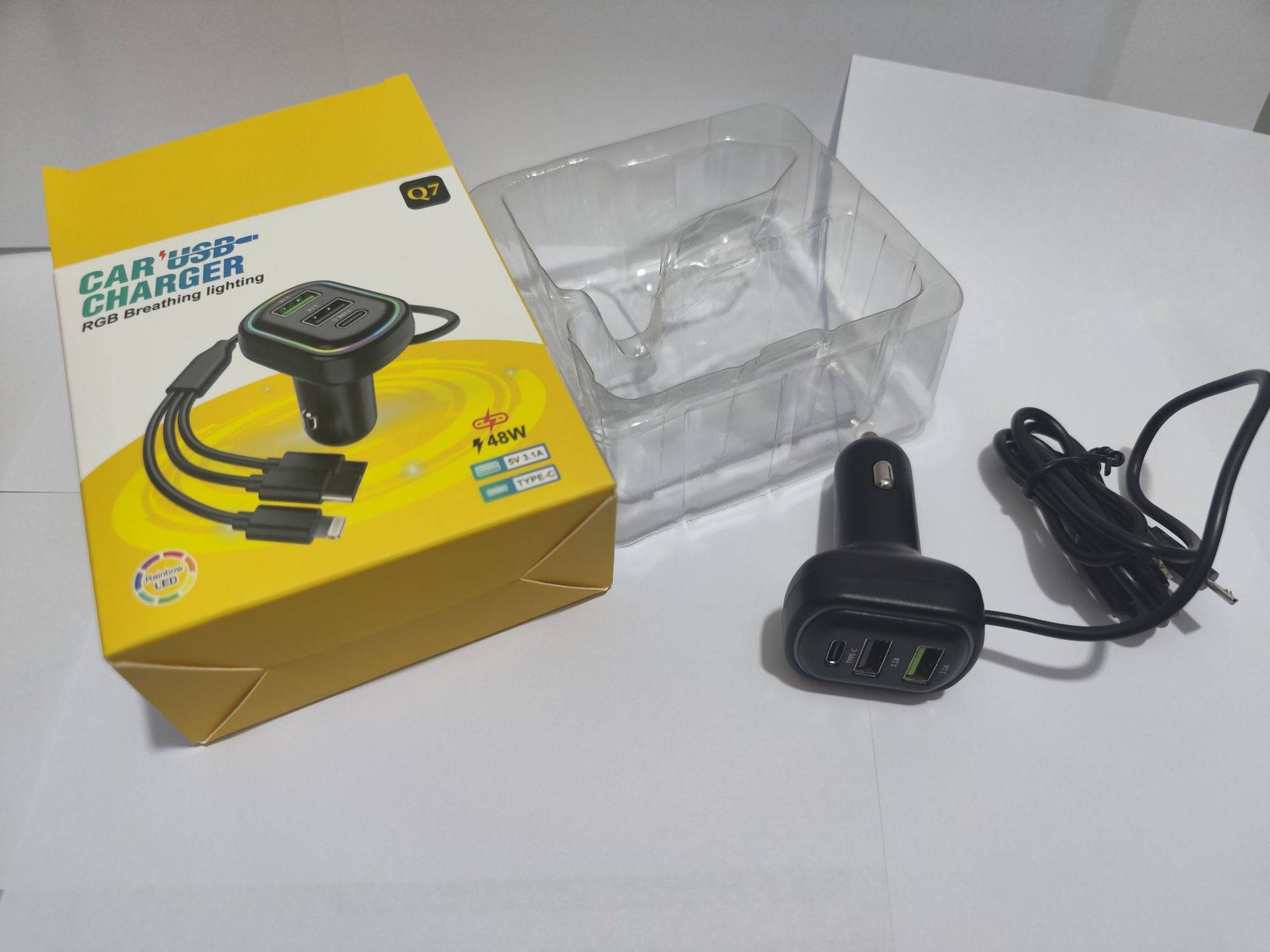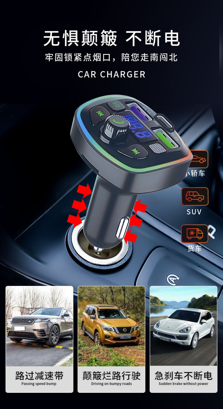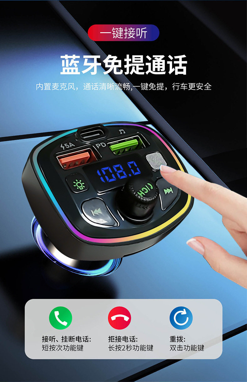 Q7 cross-border car charger bluetooth player dual-mouth color atmosphere light with card cigarette lighter fast charging mp3