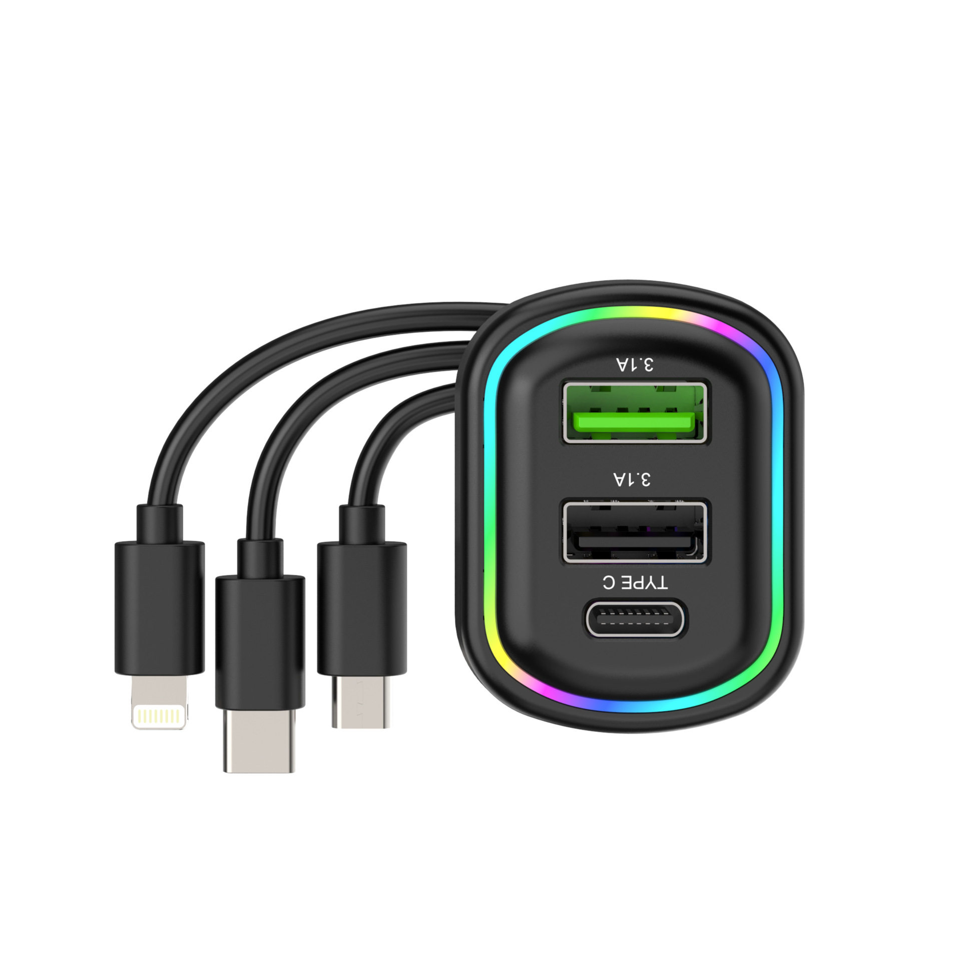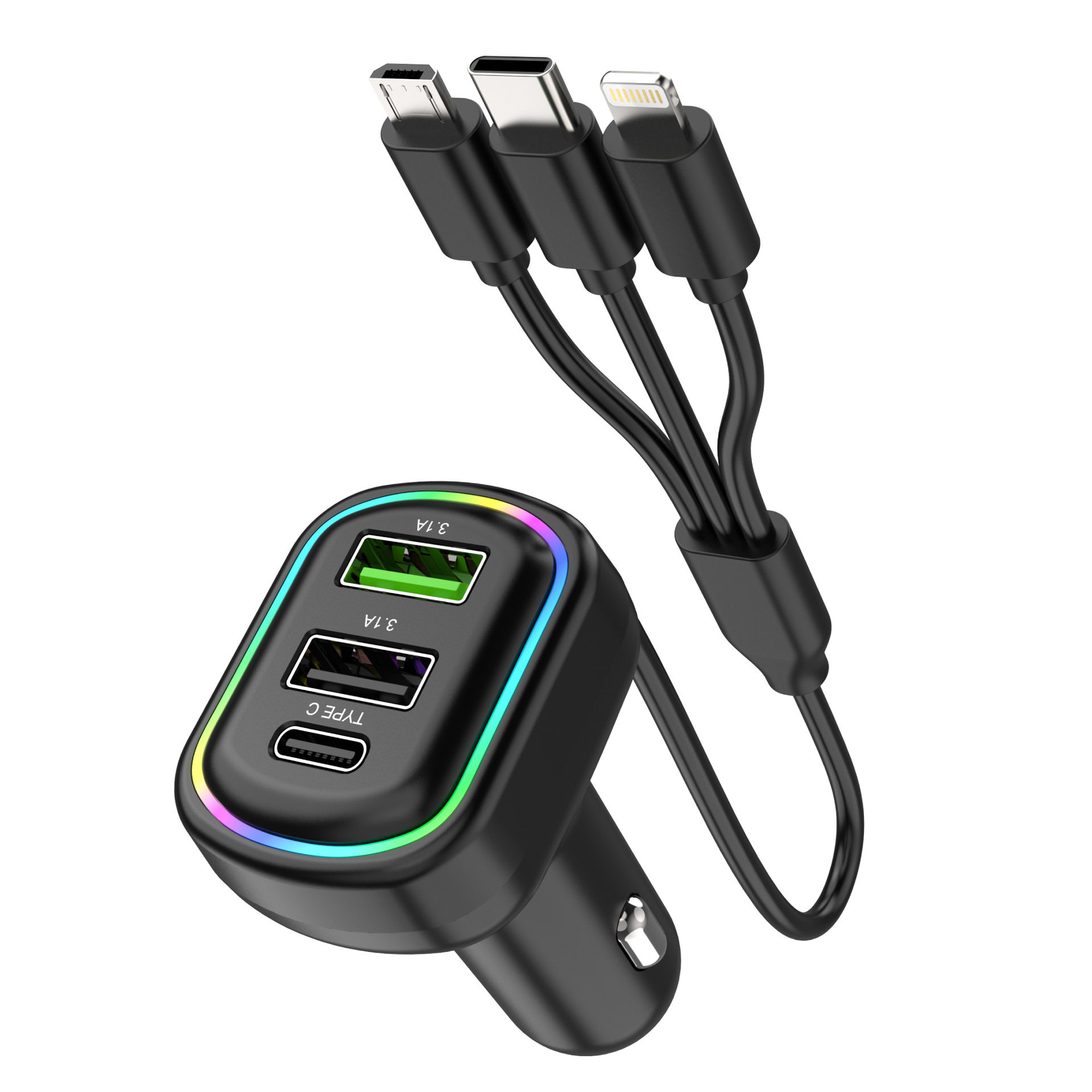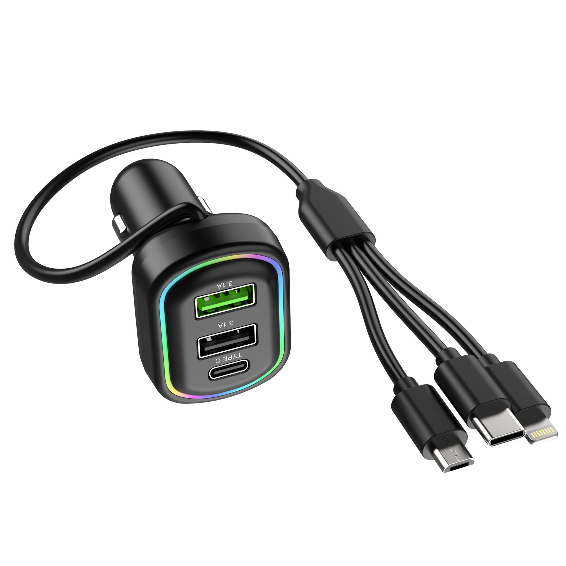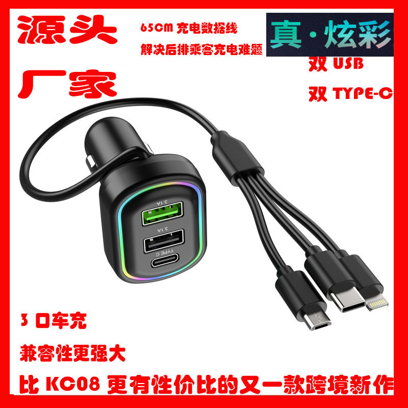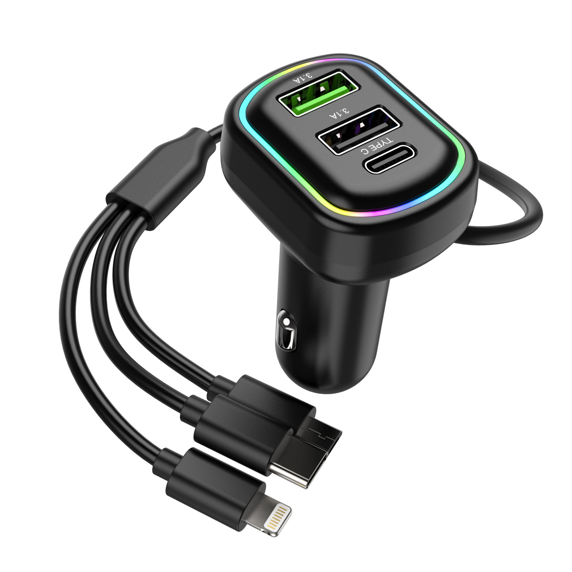 Q7 cross-border car charger bluetooth player dual-mouth color atmosphere light with card cigarette lighter fast charging mp3