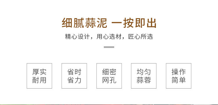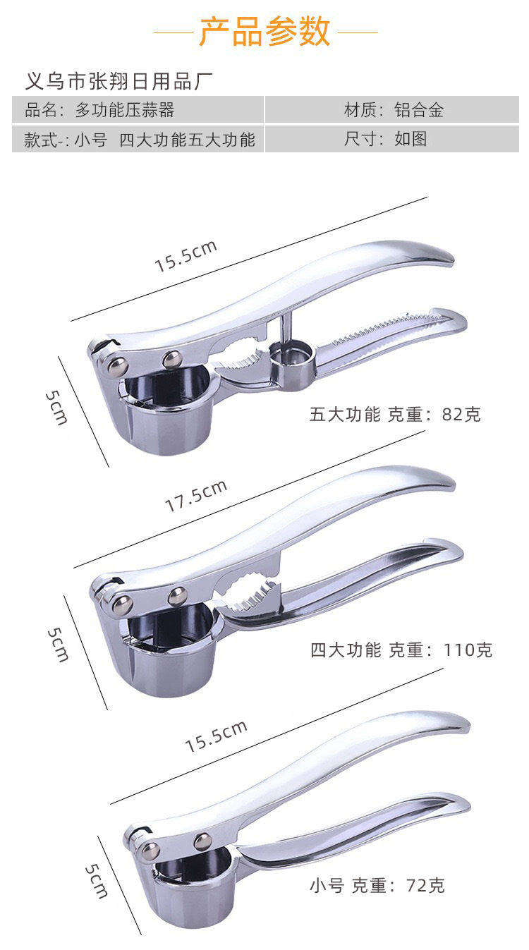| Specifications | Small size garlic press,New 2-in-1 [garlic press],Small size five-in-one garlic press,Large four-in-one garlic press,Large five-in-one garlic press |