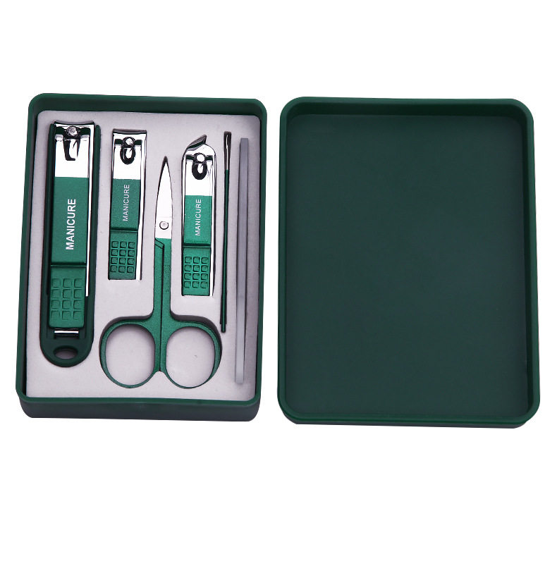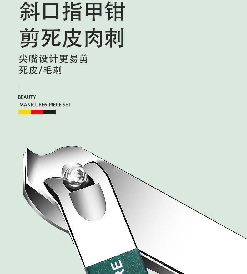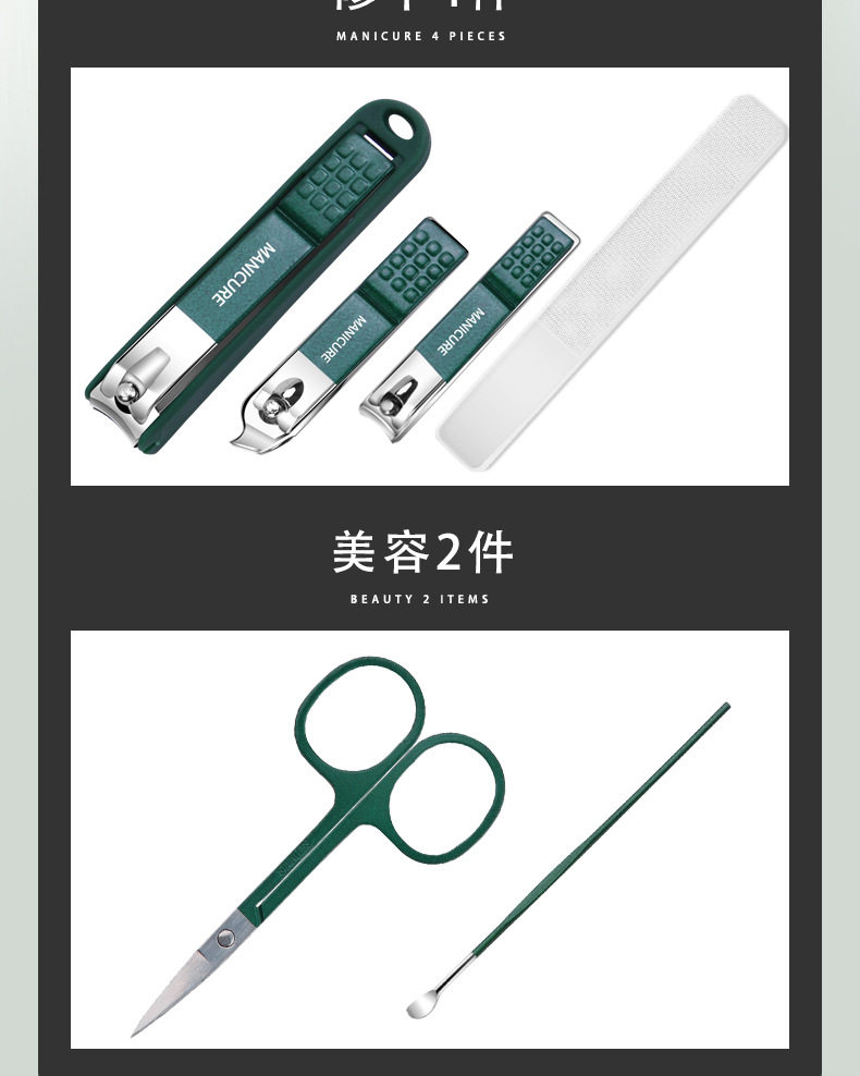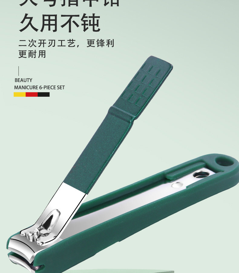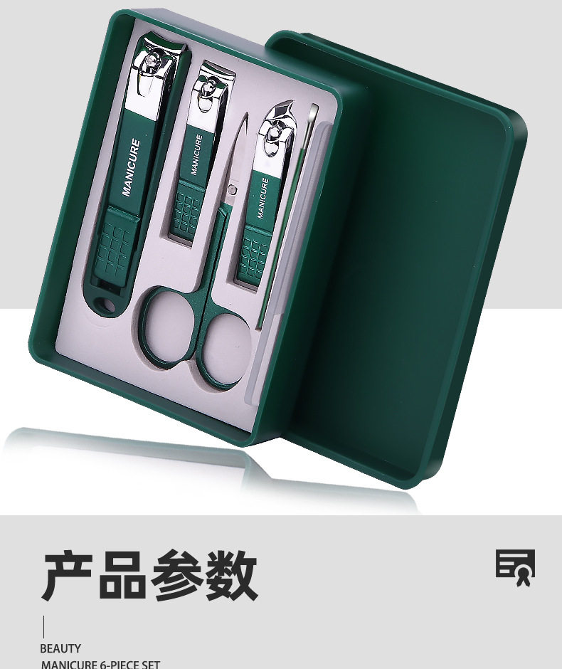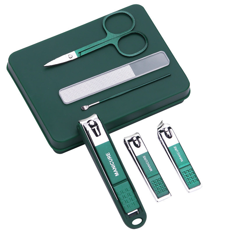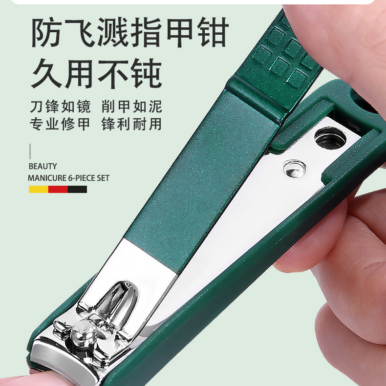 New carbon steel dark green 6-piece nail clippers suit nail tools portable large anti-splash nail clippers suit